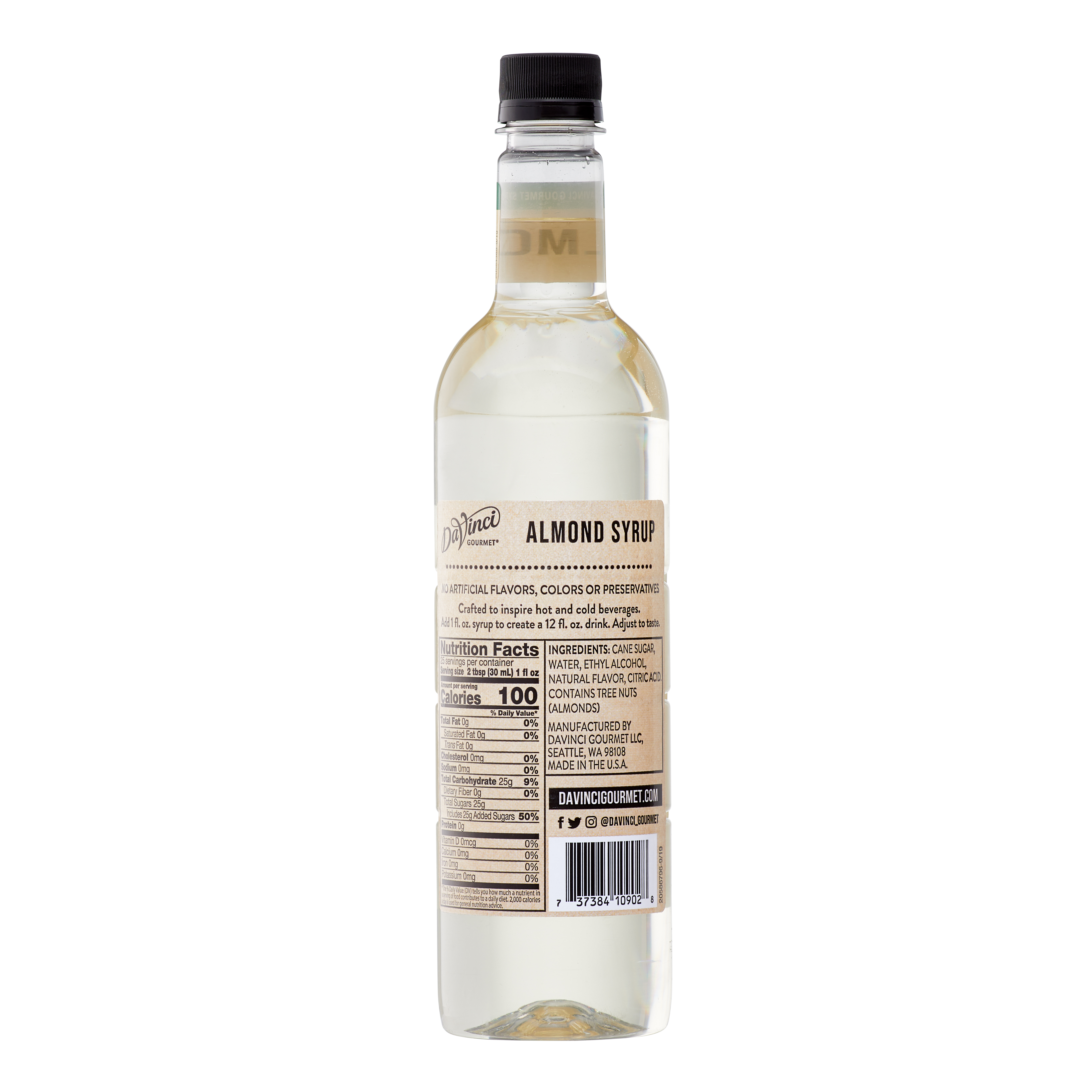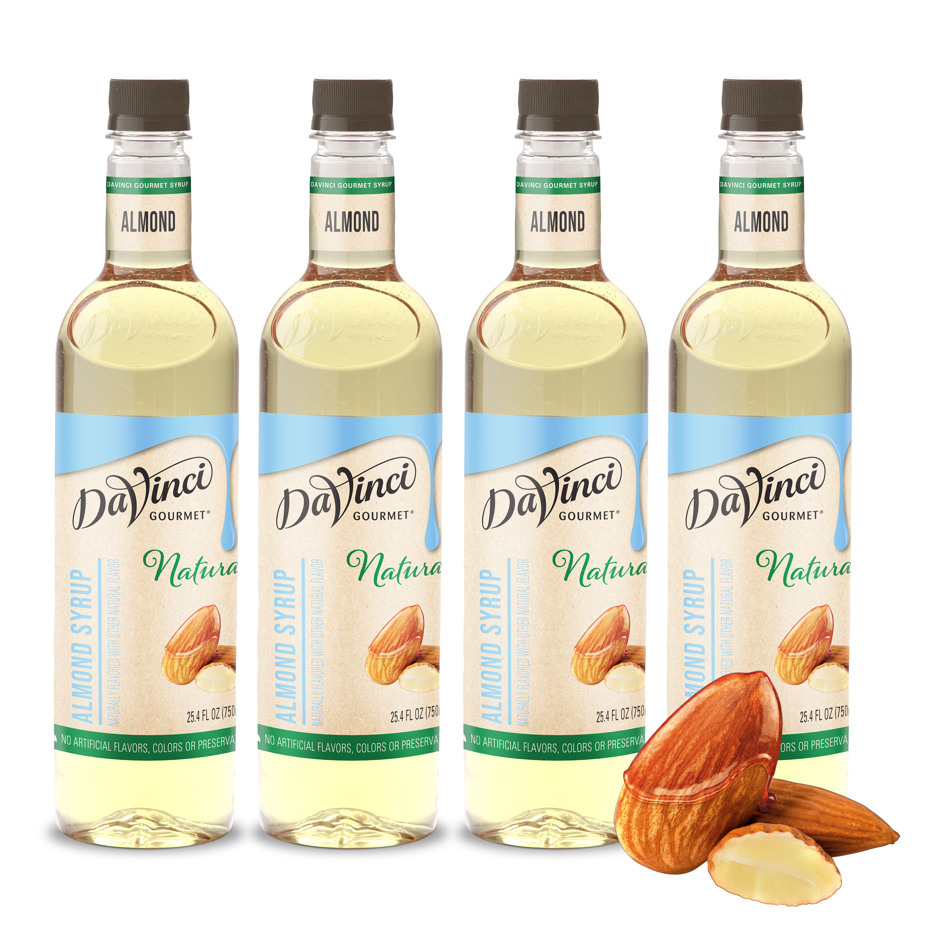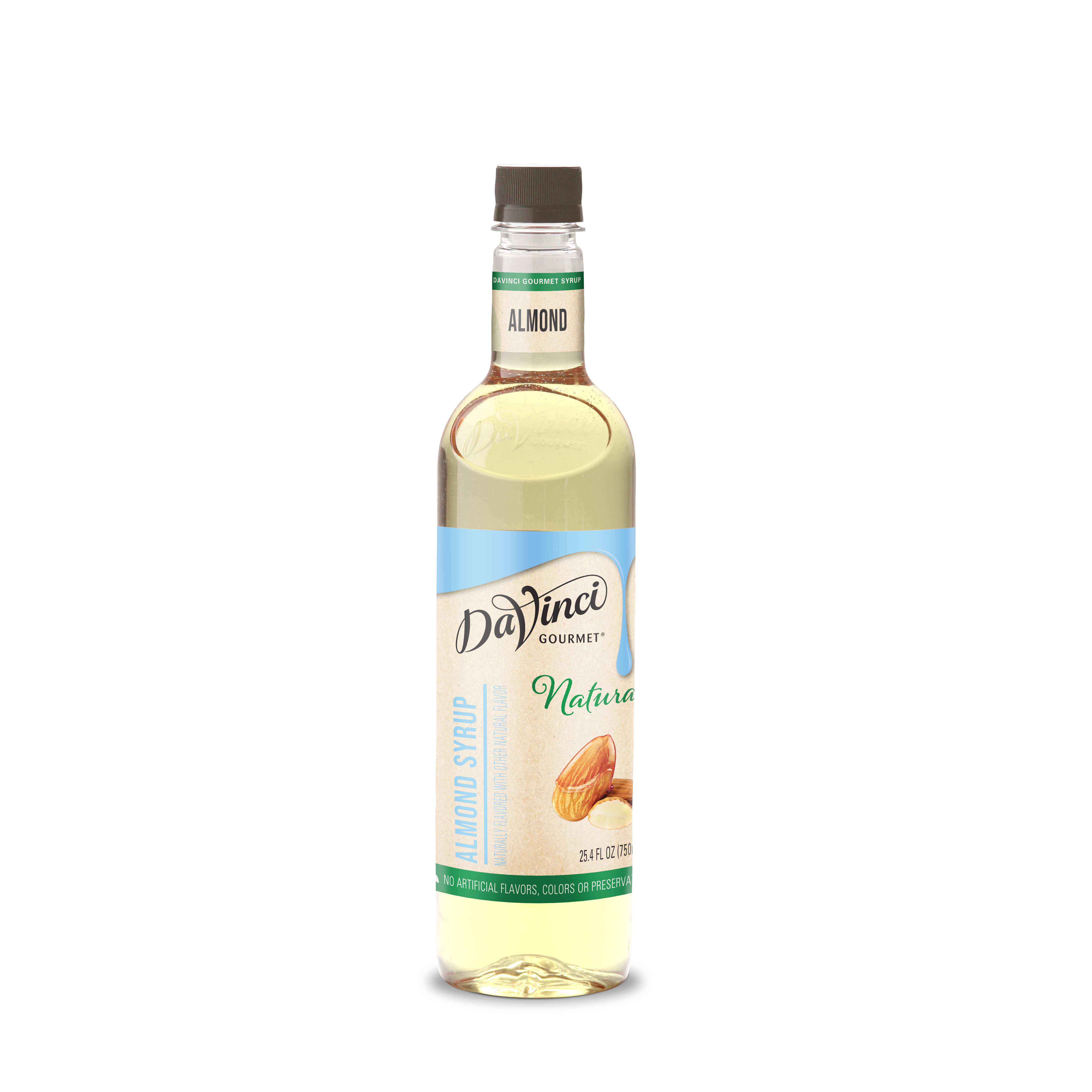 - DaVinci Gourmet Naturals almond syrup will add smooth nutty taste and aroma to coffee, cocktails and mocktails, and desserts. At DaVinci Gourmet, we craft our Naturals line of syrups with the highest-quality ingredients. We blend natural almond flavor with pure cane syrup for authentic, intense flavor baristas and mixologists trust to make premium beverages, every time. This delicious almond syrup is an essential component of a well-stocked bar, perfect for making classic cocktails such as Mai Tais and Fog Cutters. Invent signature cocktails or add a sweet almond twist to desserts. Our Naturals Almond syrup contains no artificial colors, flavors or preservatives. Contains tree nuts. This DaVinci Gourmet Naturals Almond syrup is available in a 750mL plastic bottle.