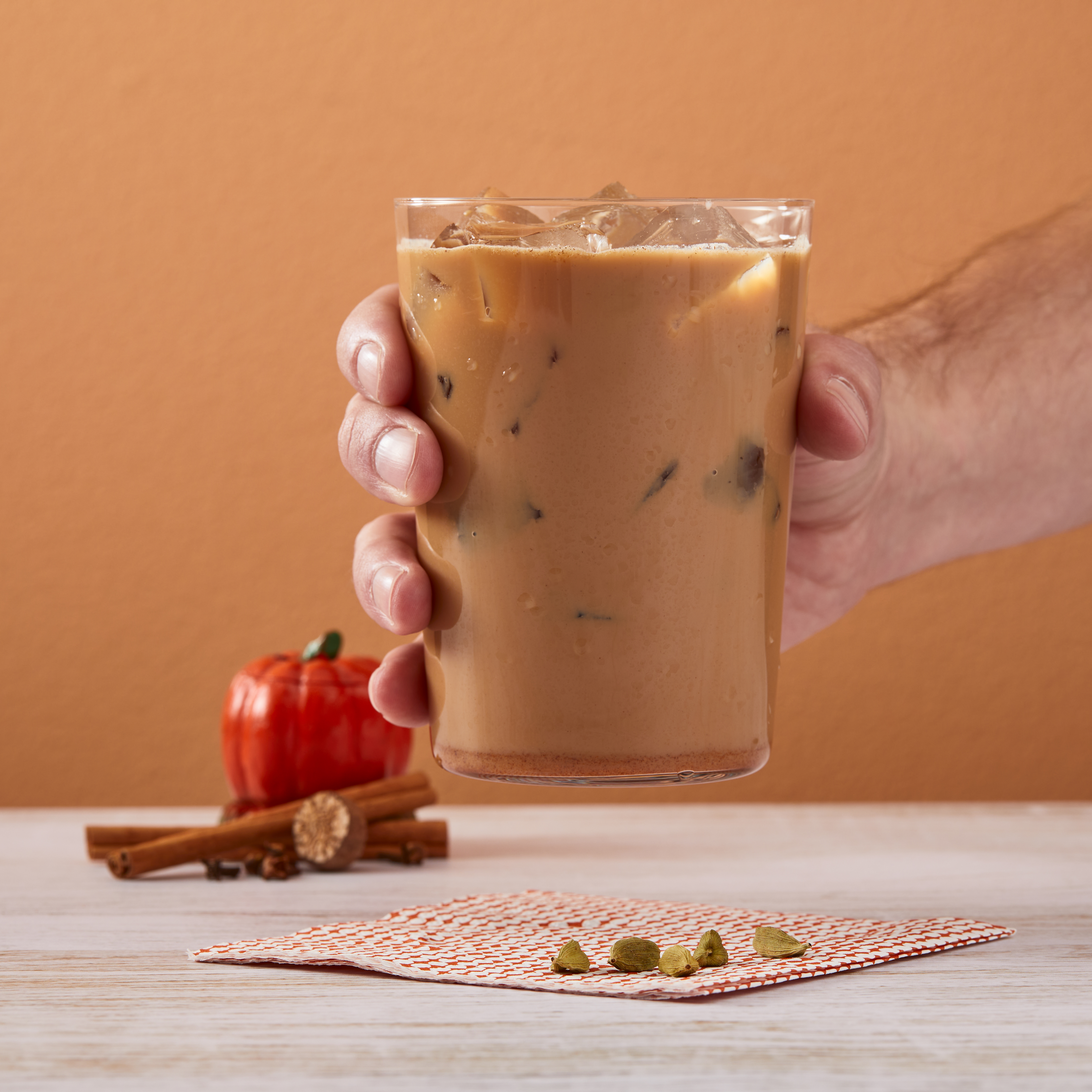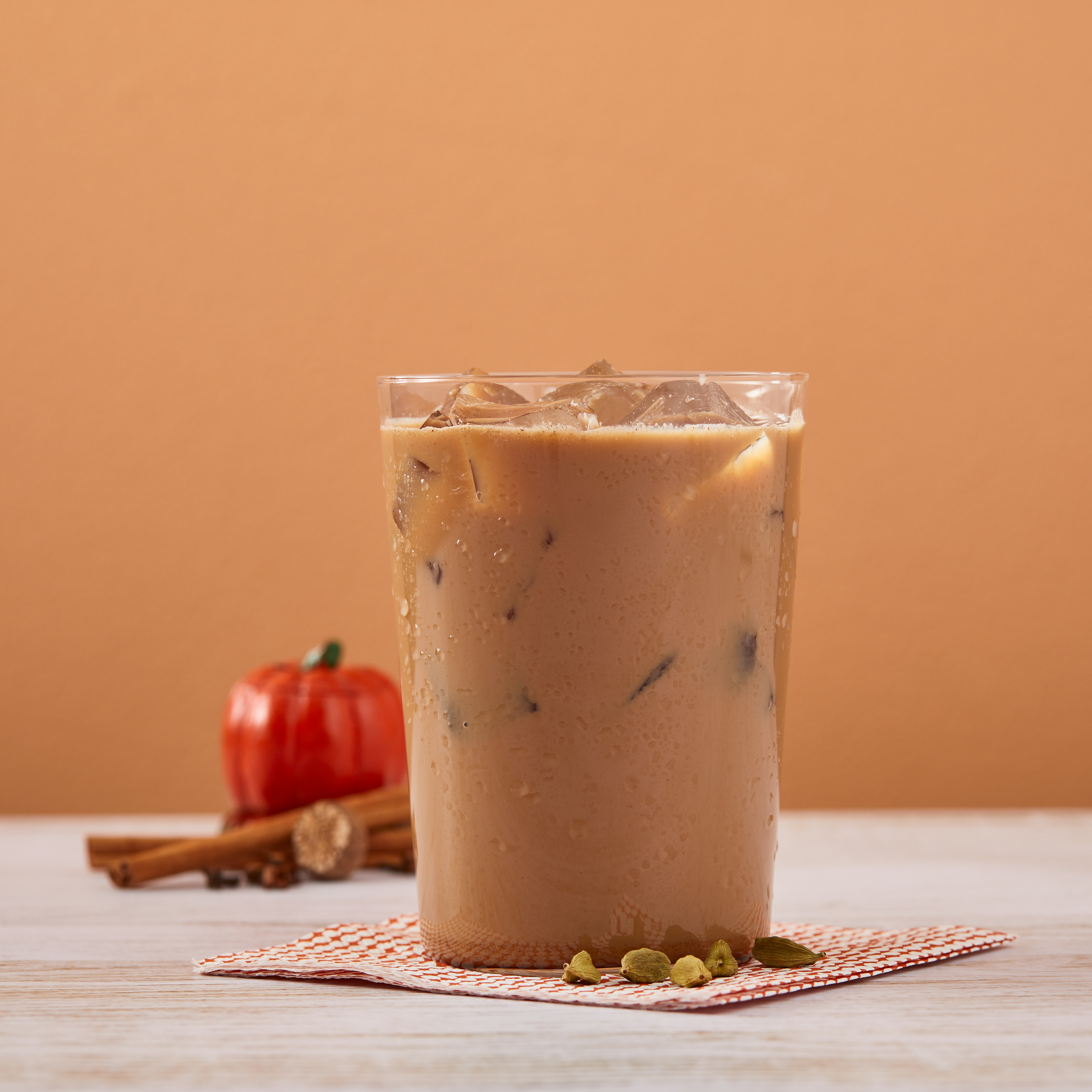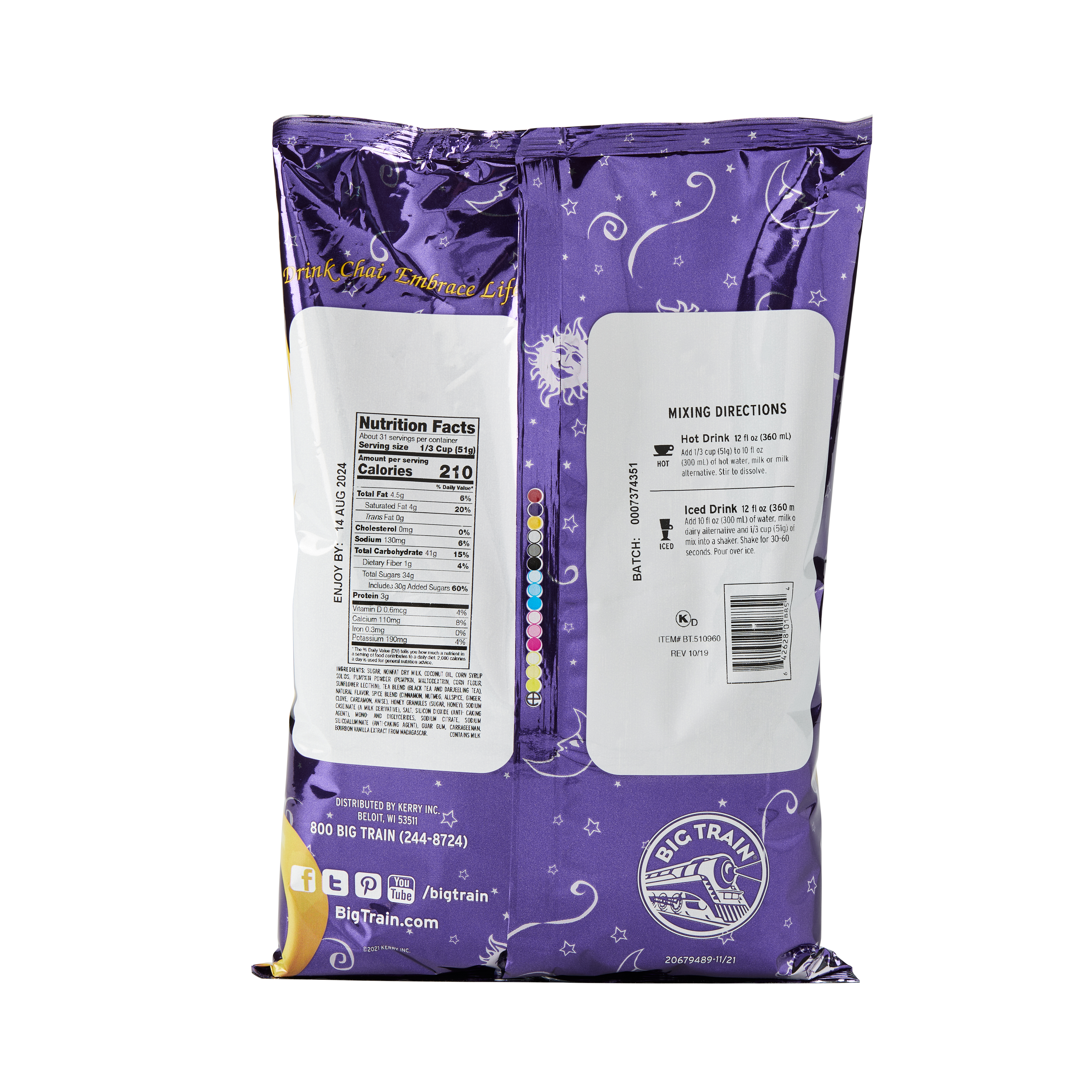 - Pumpkin pie and chai spices pair up deliciously in Big Train's Pumpkin Pie Chai Tea Latte Mix! Taste a holiday favorite with our East meets West fusion of a seasonal treat and exotic taste from India. Real pumpkin stars in our delicious mix for authentic autumn experience. We craft our invigorating signature chai with black and Darjeeling teas to revive the senses, then we add allspice and nutmeg to our authentic Masala blend for true pumpkin pie flavor. Serve hot, iced, or blended.