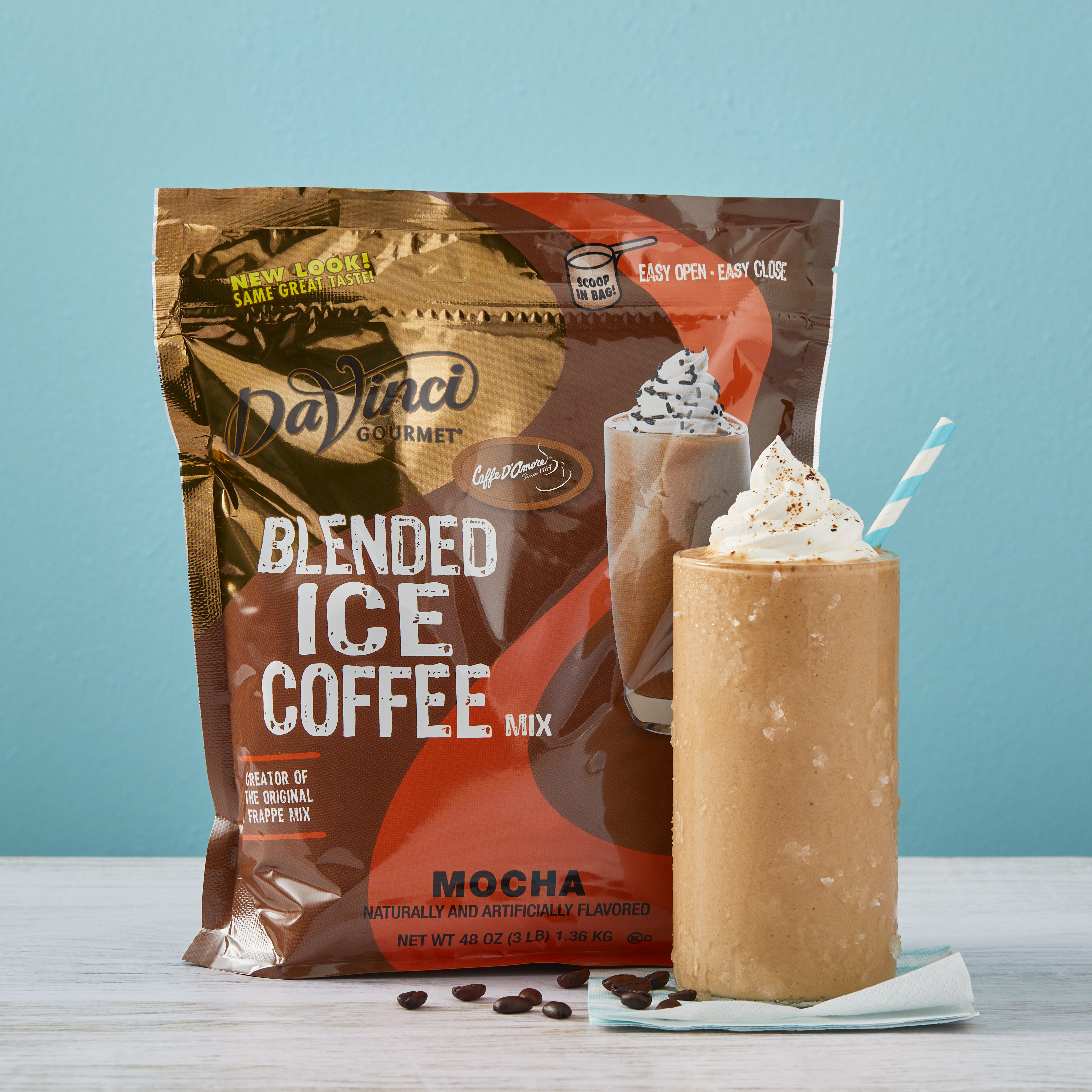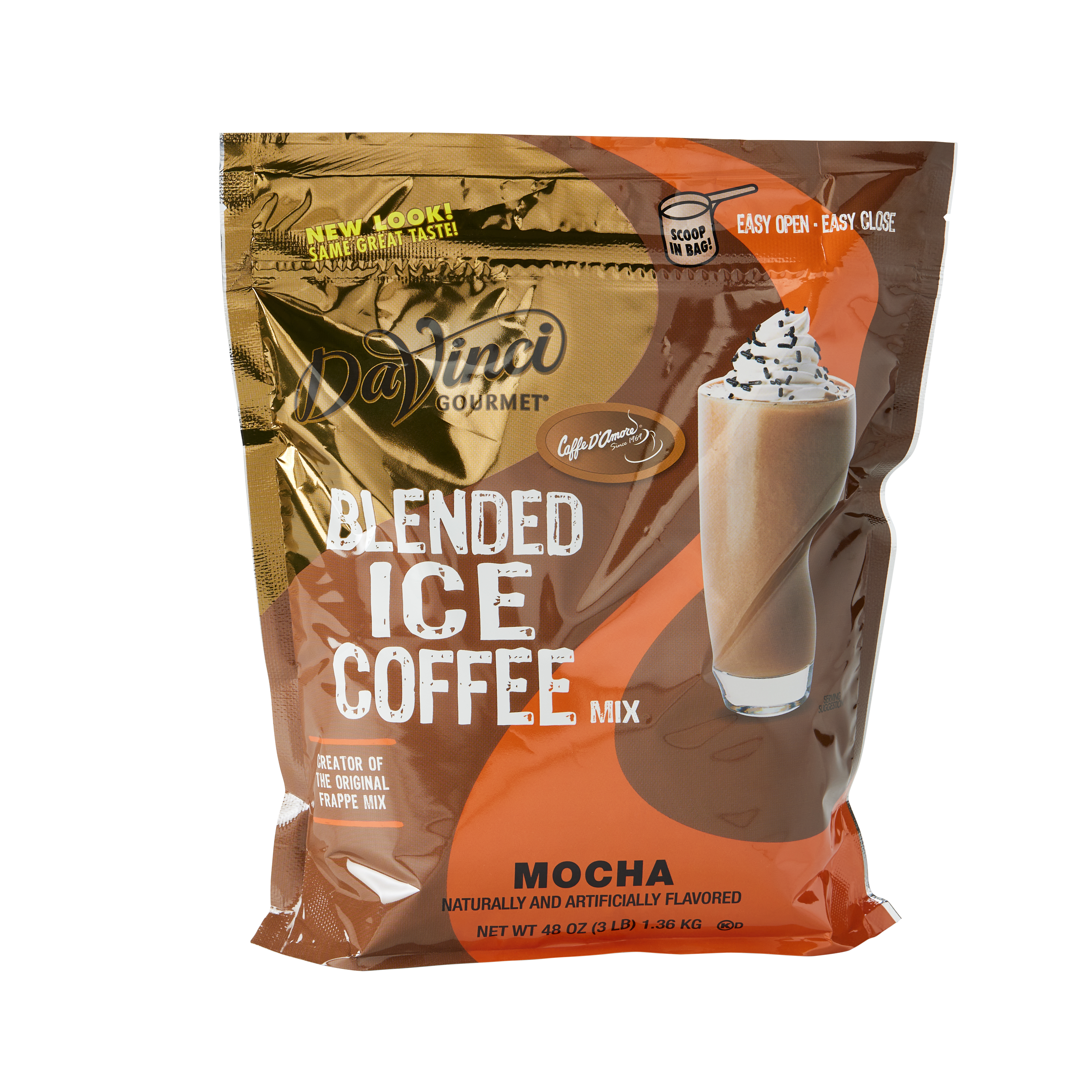 - Rich dark chocolate flavor complements subtle coffee flavor in our Mocha Frappe Mix. Mocha fans who prefer their chocolate with a little coffee will love the subtle taste of our classic Mocha Frappe mix. We source the highest-quality ingredients and carefully blend them for incredible flavor and an unforgettable taste experience. Our decadent mocha frappe mix combines a heavenly dose of dark Dutched cocoa with a lighter touch of premium coffee for a caffeinated drink focused on chocolaty taste. For bigger coffee flavor with subtler chocolate, try our Big Bean Mocha Mix. Create signature drinks with a drizzle of one of our DaVinci Gourmet flavored syrups, or top with whipped cream for an indulgent finish.Mocha Frappe Mix is made with sunflower oil, so it's free of trans fats and hydrogenated or tropical oils.