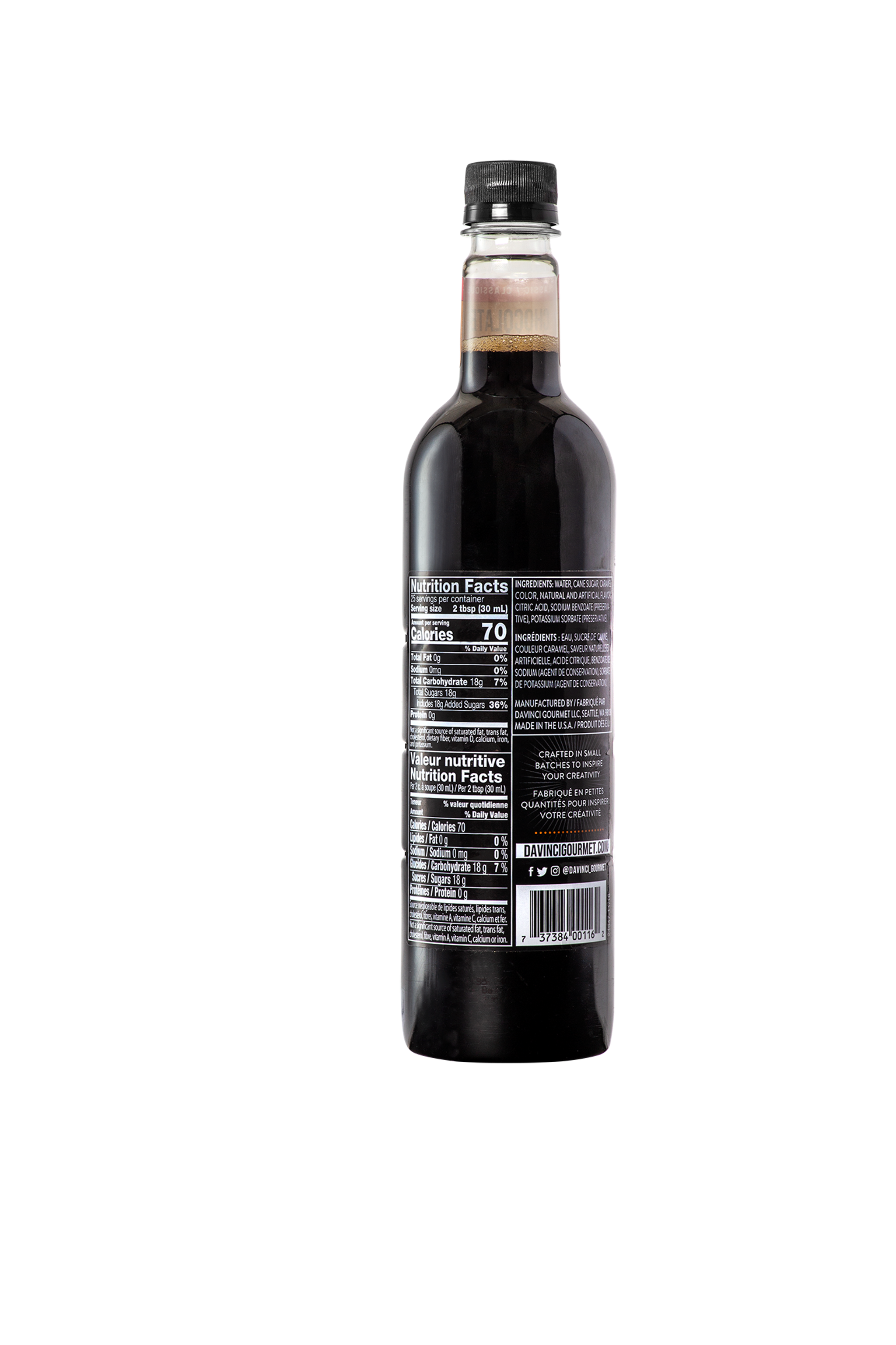 - Indulge taste buds with rich, semisweet chocolate flavor in every drop of this rich-tasting fat-free syrup from DaVinci Gourmet. We craft our Classic syrups from the finest ingredients to ensure premium quality. Professional baristas and mixologists across the globe rely on our products to help them create delicious beverages. We make our syrup with pure cane sugar and rich chocolate taste. Our Classic Chocolate syrup is specially formulated to mix quickly and easily in hot or cold beverages and resists curdling for smooth results.Sweet and rich-tasting, this DaVinci Gourmet Classic Chocolate syrup makes a delicious addition to a variety of beverage and culinary applications. Try in hot cocoa for a decadent twist. Invent signature dessert cocktails or mocktails with a splash of this chocolate syrup. Or combine with flavors from our wide selection of Classic, Naturals and Fruit Innovations products to customize beverages to suit any taste. Our Classic Chocolate syrup is Kosher-Pareve certified.