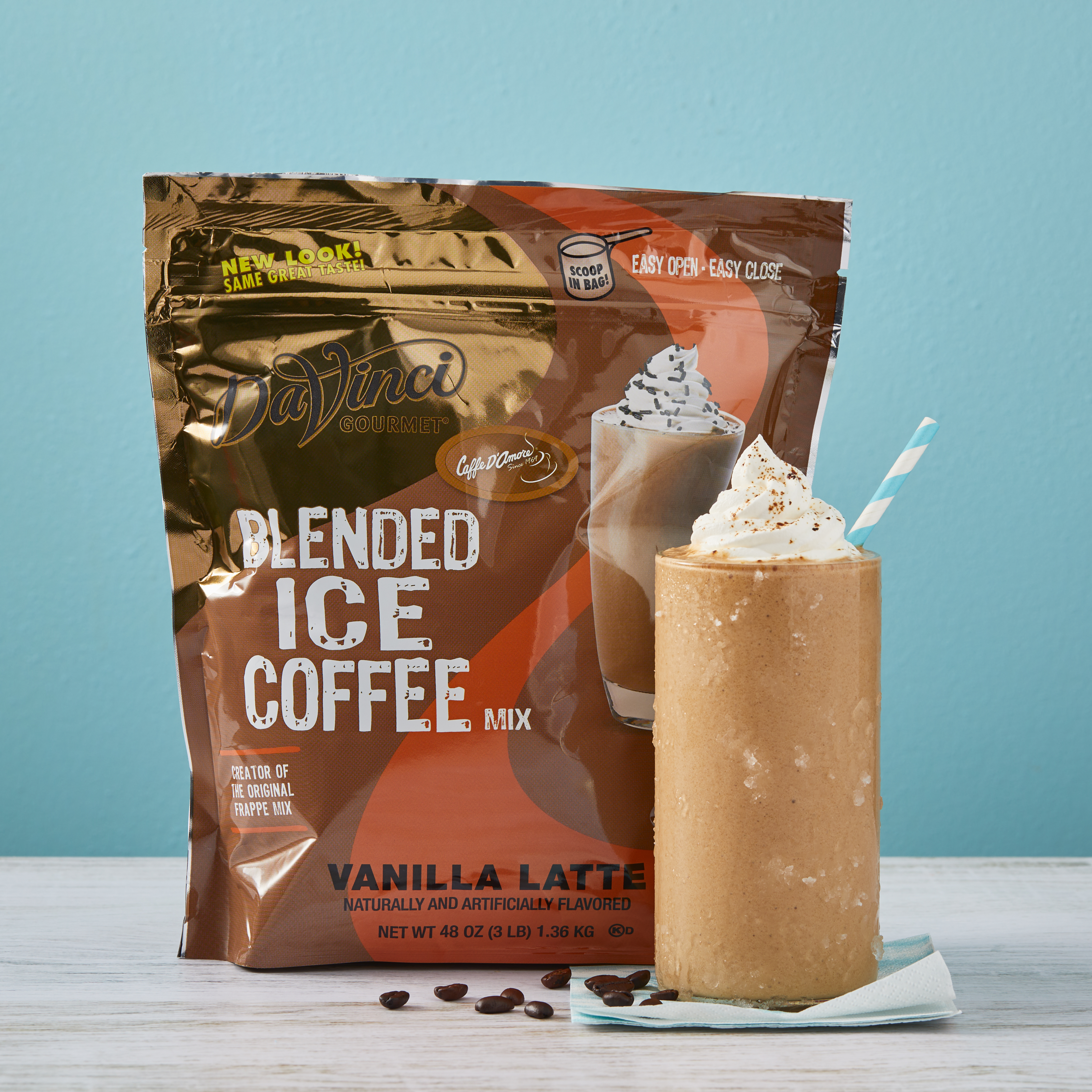 - You'll savor every rich-tasting, aromatic sip of this delicious Vanilla Latte Blended Ice Coffee Mix from DaVinci Gourmet. Our perfect blend of premium coffee laced with mellow vanilla will satisfy sweet cravings anytime. At DaVinci Gourmet, we source the finest ingredients and carefully blend them for incredible flavor and an unforgettable taste experience. We make our Vanilla Latte mix with full-bodied Arabic coffee and a blend of high-quality ingredients for a smooth consistency and velvety texture. Hot, iced or blended, our Vanilla Latte Mix tastes delicious on its own or paired with a variety of flavors. Customize and get creative with one of our many flavored syrups, or top with whipped cream for an indulgent dessert-like drink.We make our Vanilla Latte Blended Ice Coffee Mix with sunflower oil, so it's free of trans fats and hydrogenated or tropical oils.