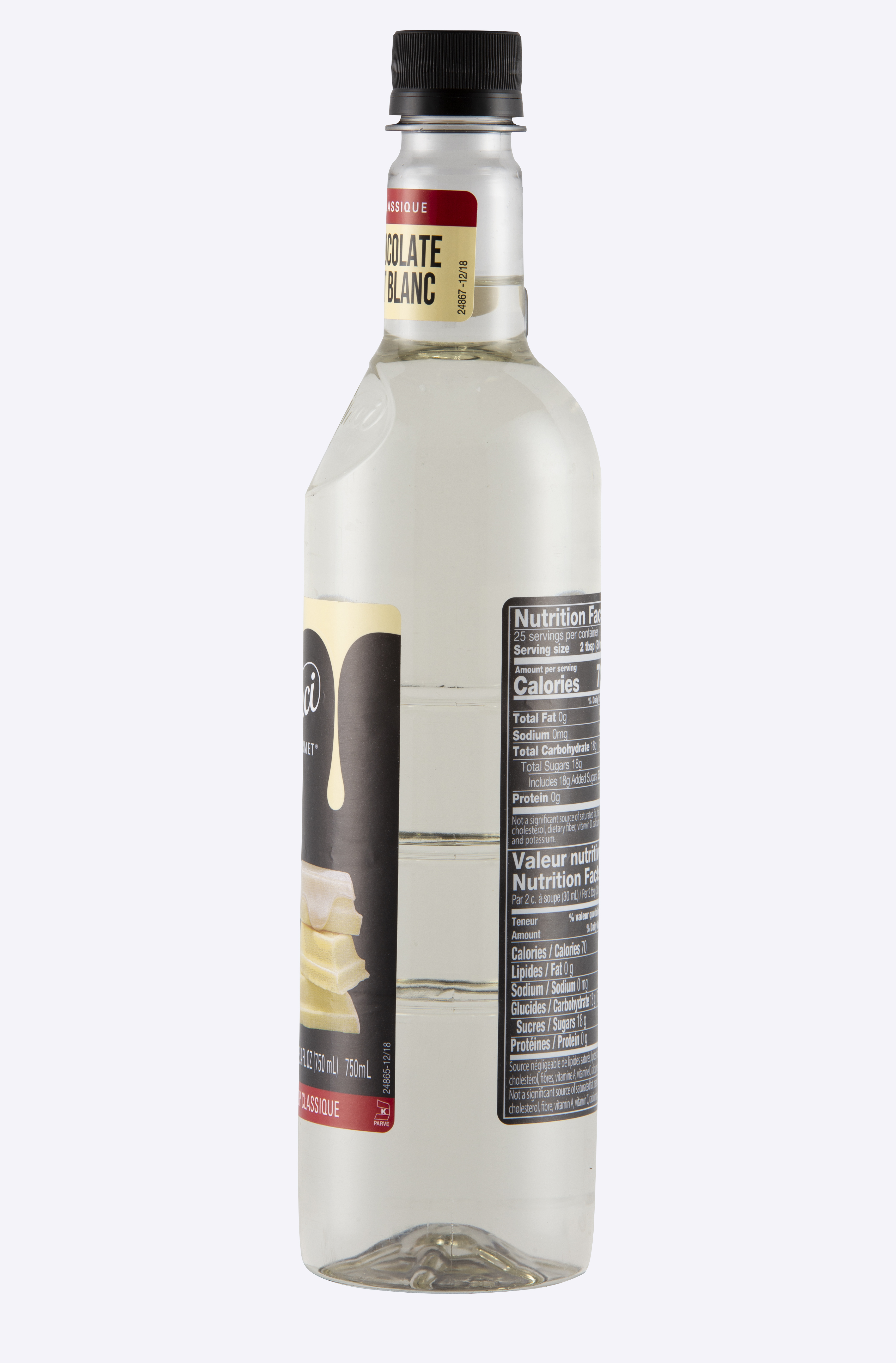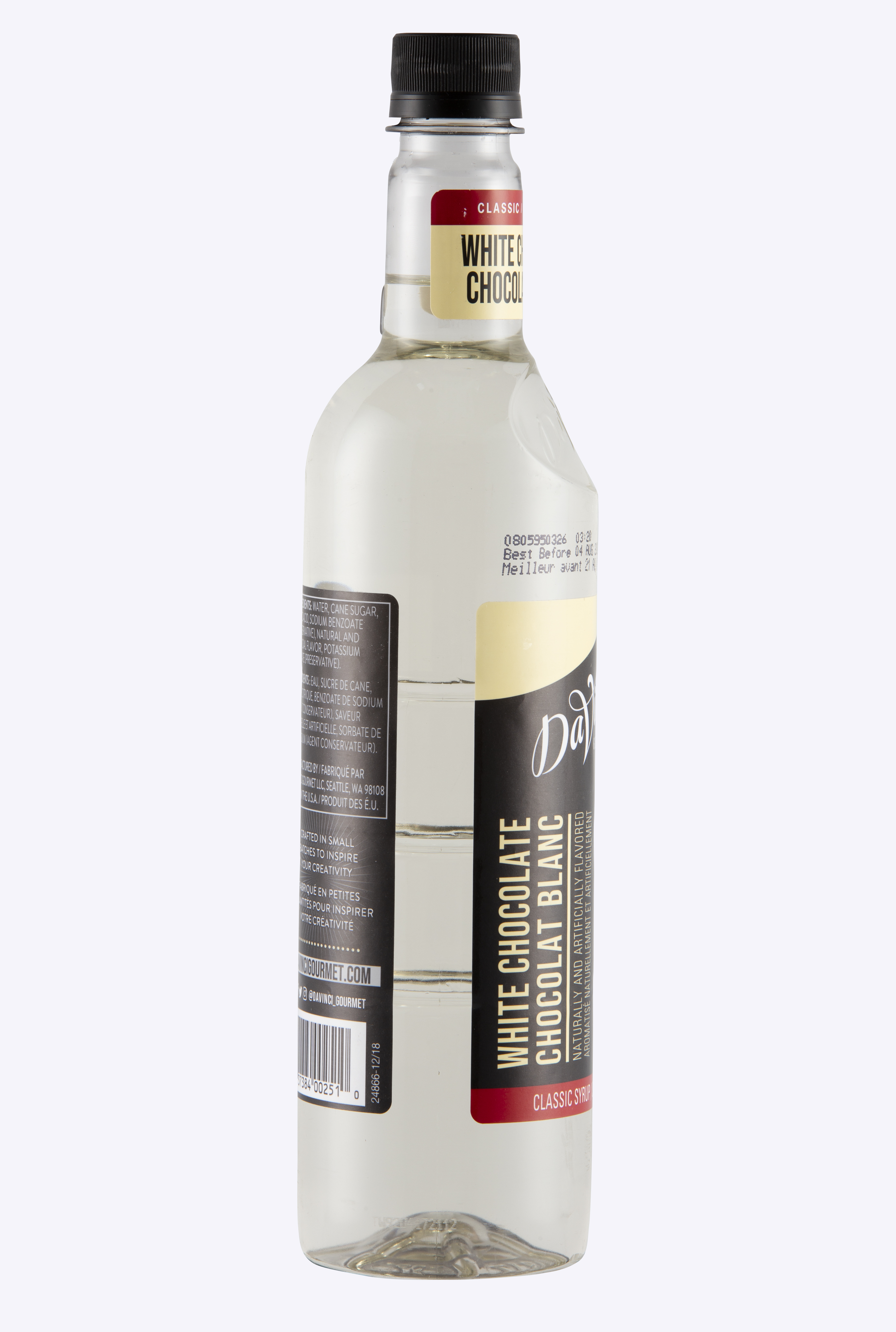 - Satisfy sweet cravings with the rich taste of our Classic White Chocolate flavored syrup. . We make our White Chocolate syrup from the highest-quality ingredients to ensure incomparable taste. Professional baristas and mixologists around the world trust our products to help them create consistently delicious premium beverages, cup after cup. Made with pure cane sugar, our syrup contains the perfect balance of sweetness and flavor. For smooth results, we specially formulate our syrup to mix quickly and easily in hot and cold beverages and resist curdling dairy products.Try our Classic White Chocolate syrup as a delicious addition to a variety of beverage and culinary applications. Add sweet white chocolate flavor to cocktails and mocktails to create signature beverages. Or combine with syrups from our wide selection of Classic, Naturals and Fruit Innovations products for unique custom flavors. Our Classic White Chocolate syrup is Kosher-Pareve certified.