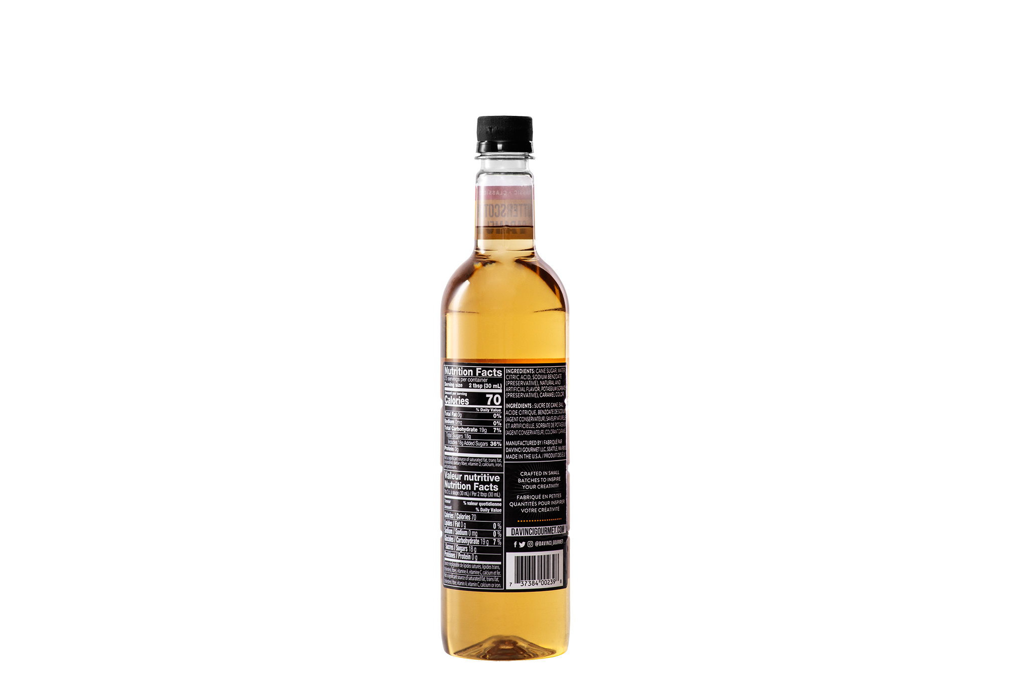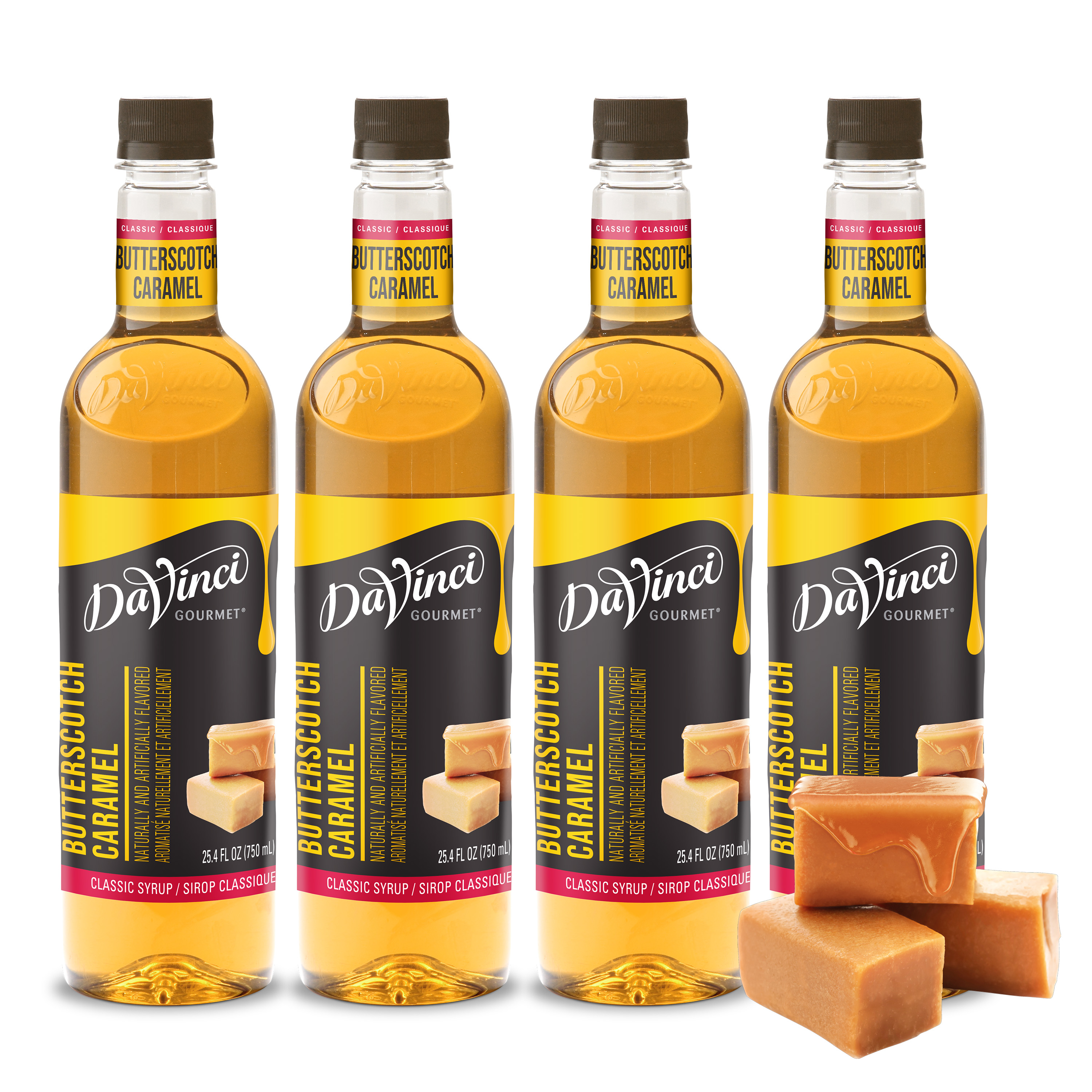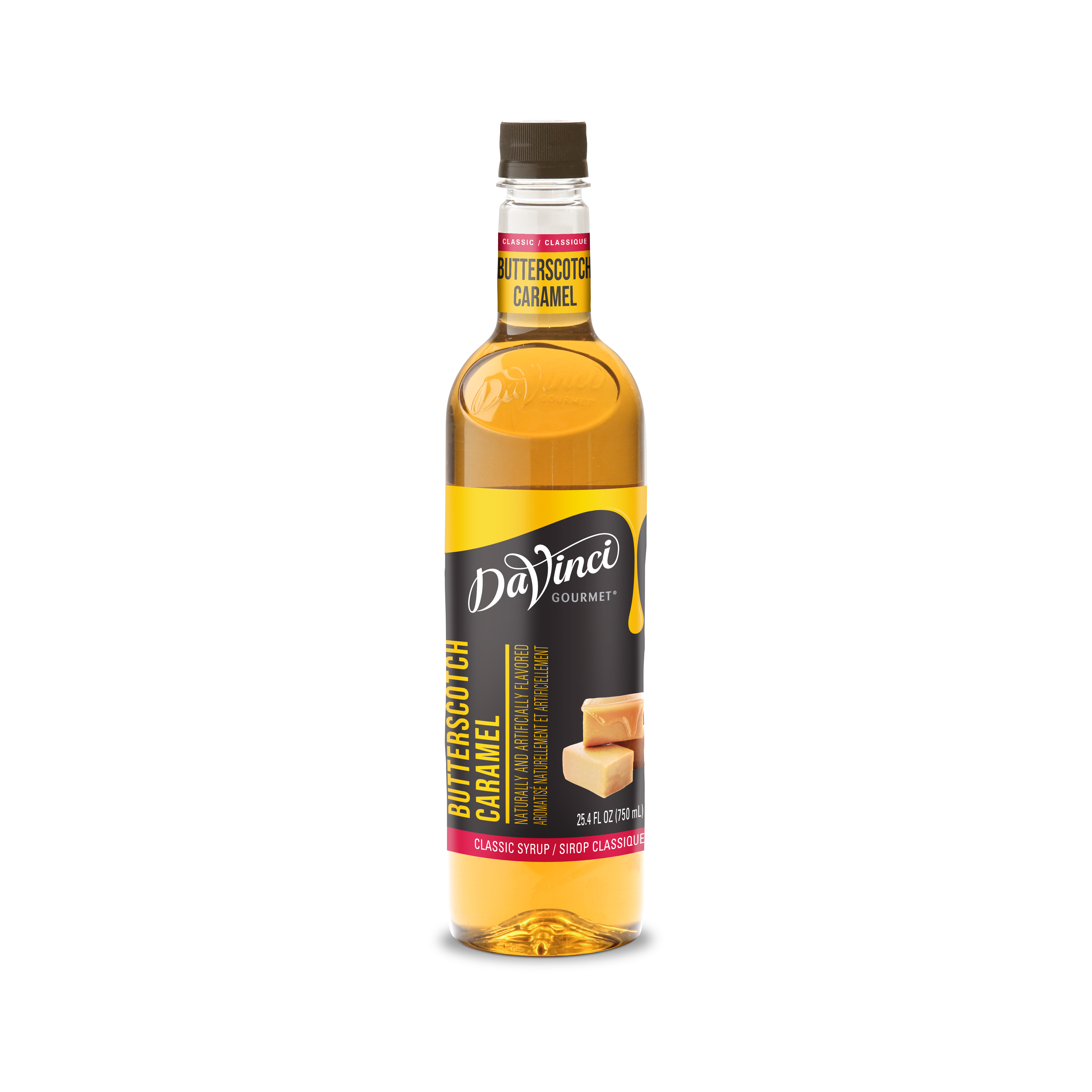 - Rich and decadent, this delicious butterscotch-flavored syrup from DaVinci Gourmet takes its inspiration from the beloved hard candy. We make this fat-free syrup with pure cane sugar for authentic flavor in every drop. At DaVinci Gourmet, we craft our Classic line of syrups from the highest-quality ingredients for incomparable taste. Professionals and home gourmands trust our products to help them create delicious beverages. For smooth results, we specially formulate our Classic syrups to mix easily in both hot and cold beverages and resist curdling. This Classic Butterscotch Caramel syrup is an excellent complement to a variety of beverage and culinary applications. Create classic pairings with chocolate, vanilla or nut flavors when you add our butterscotch syrup to coffee, cocktails or desserts. Or combine with syrups from our Classic, Naturals and Fruit Innovations lines to create unique custom flavors for all your signature drinks. Our Classic Butterscotch Caramel flavored syrup is fat-free and Kosher-Pareve certified.