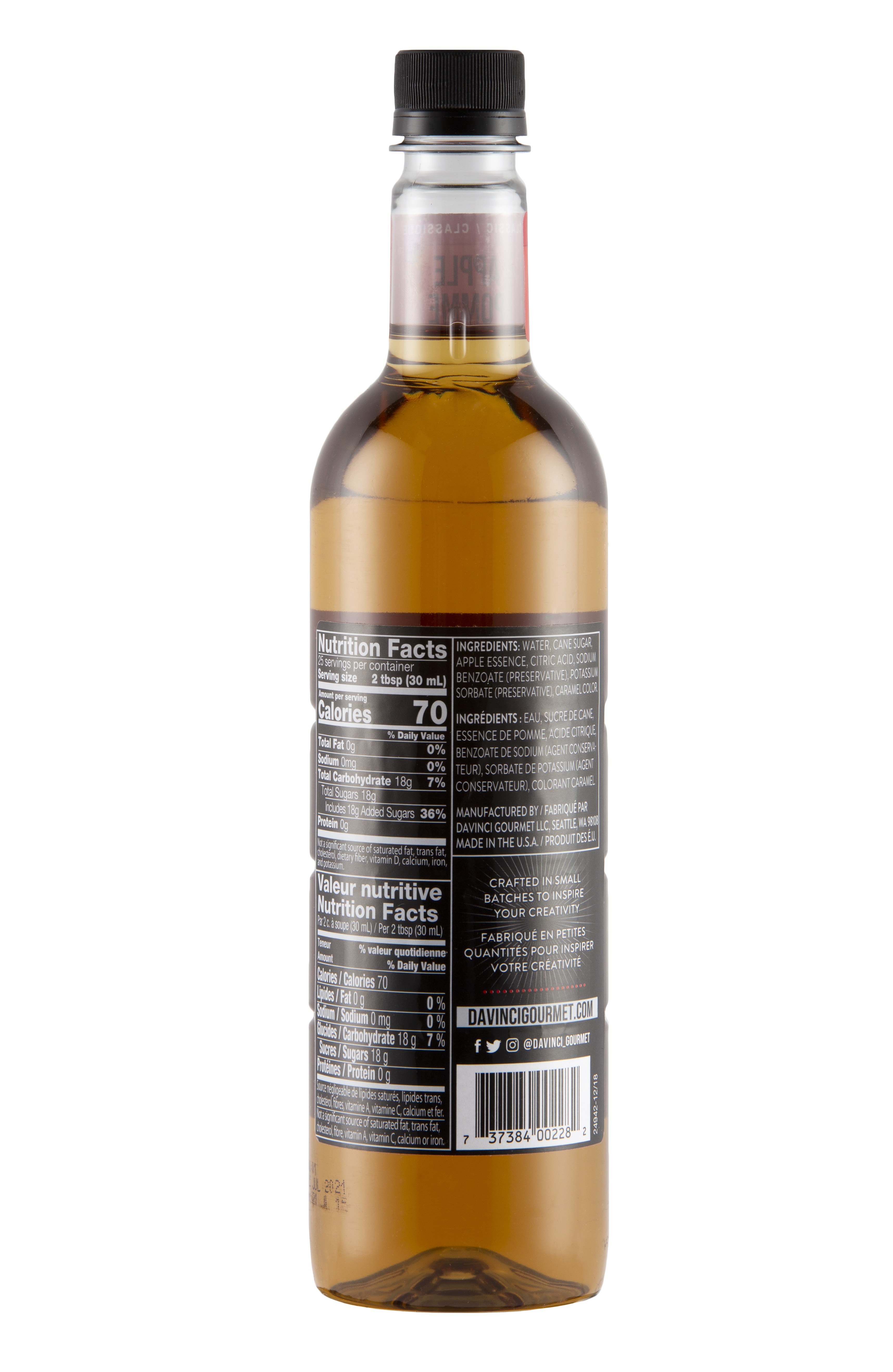 DaVinci Gourmet Apple Syrup, Plastic Bottle, 4 x 750 mL