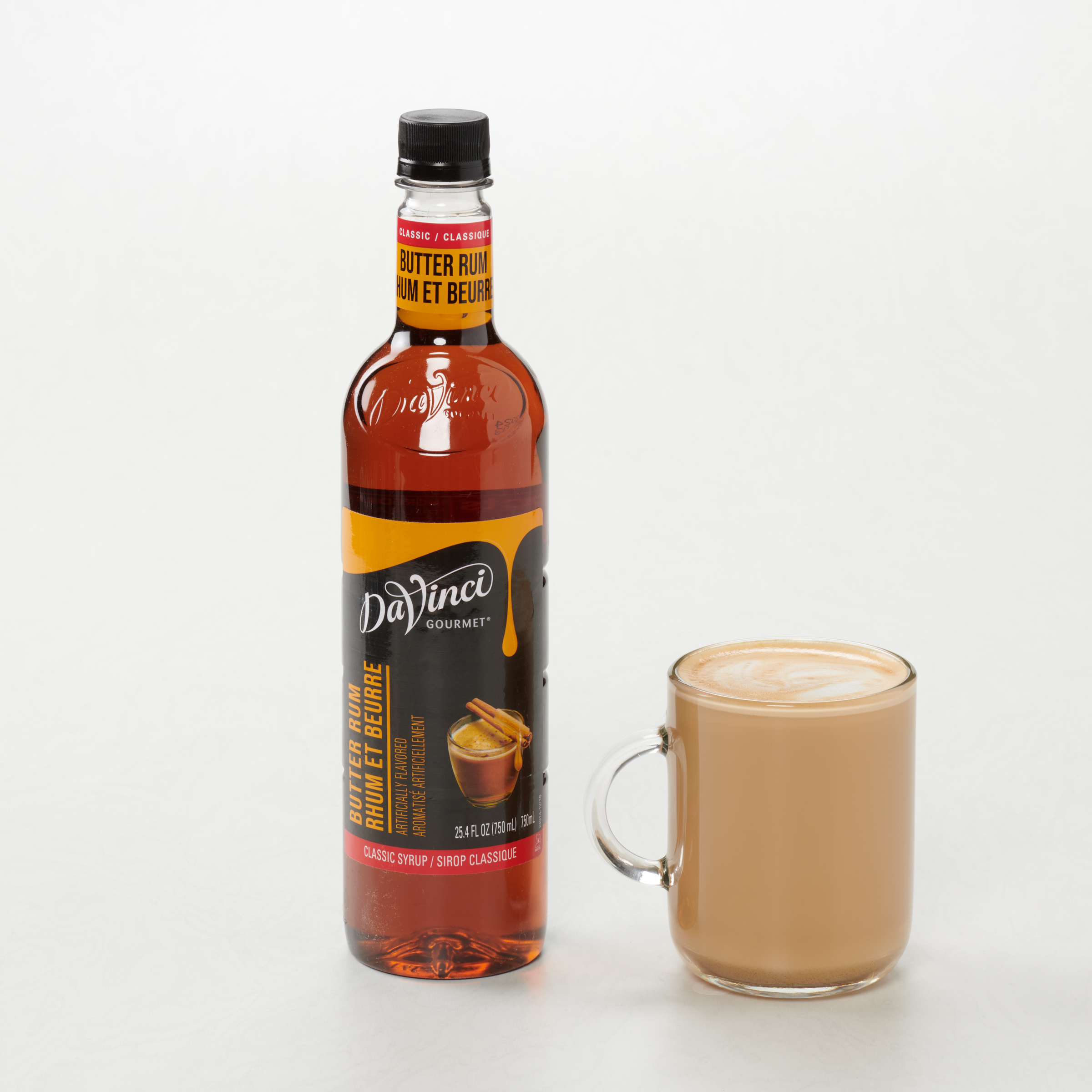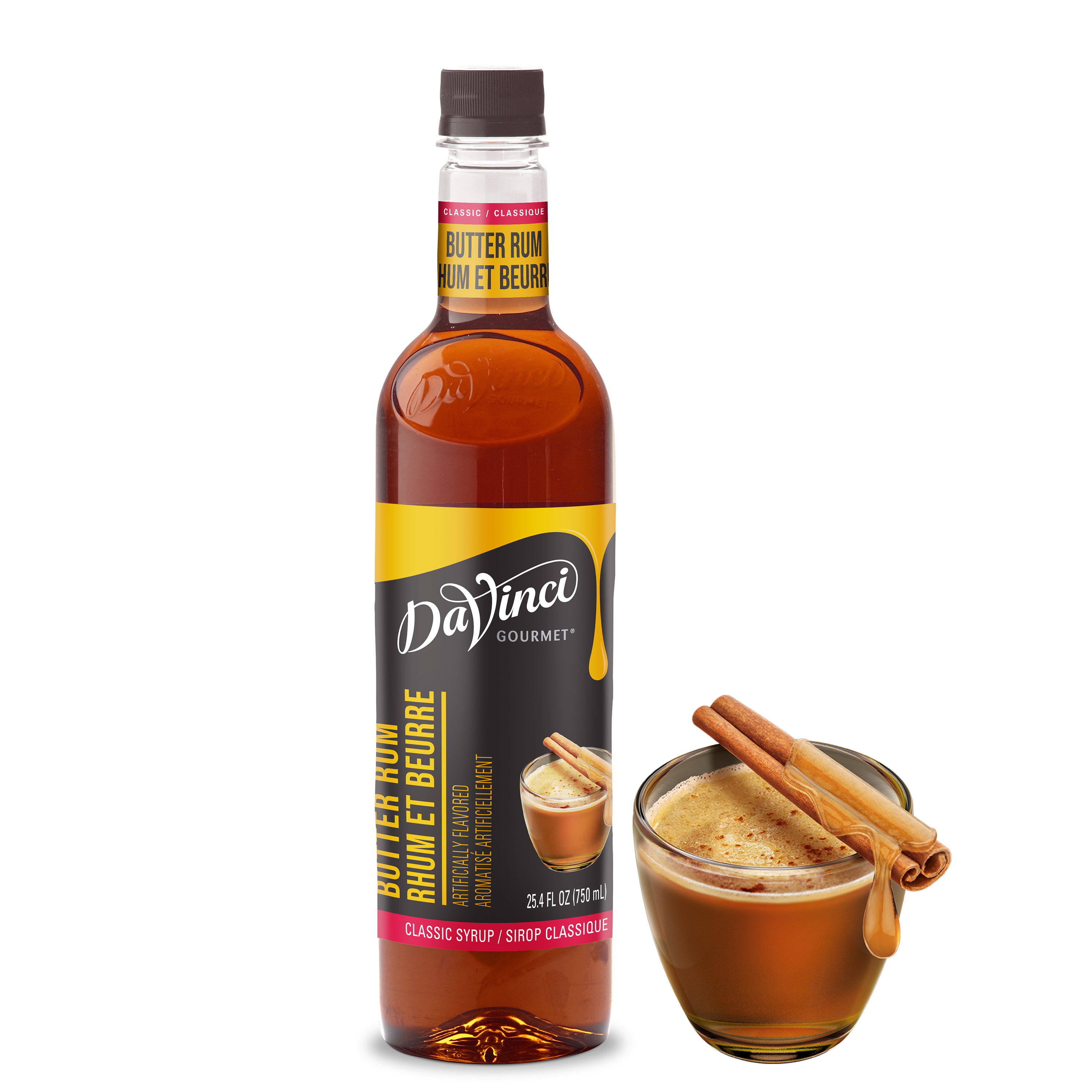 - Creamy butter and sweet light rum inspired this nonalcoholic Classic Butter Rum Syrup from DaVinci Gourmet. Substitute our fat-free butter rum flavored syrup to create delicious mocktails everyone can enjoy. At DaVinci Gourmet, we source the highest-quality ingredients to ensure incomparable flavor. Sweetened with pure cane sugar, our butter rum syrup features authentic, intense flavor baristas and mixologists trust for creating premium beverages. Hot or cold, DaVinci Gourmet Classic Butter Rum flavored syrup pairs perfectly with a variety of beverage and culinary applications. Try this sweet alcohol-free syrup in cocktails, mocktails, or Italian soda. Drizzle in hot cocoa, or add to cider for a nonalcoholic twist on the seasonal favorite Hot Buttered Rum. Or combine with syrups from our wide selection of Classic, Naturals and Fruit Innovations products to create unique custom flavors for all your signature drinks. Our Classic Butter Rum syrup is fat-free and nonalcoholic.
