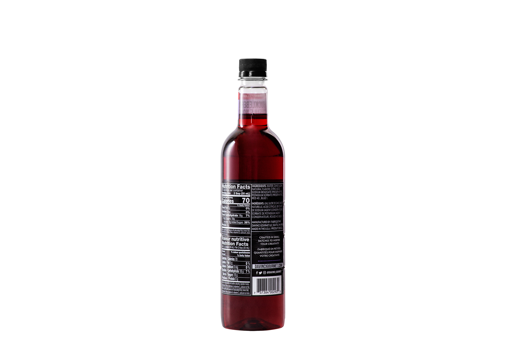 - Add a bushelful of berry flavor to beverage creations with this sweet, slightly tart huckleberry syrup from DaVinci Gourmet. At DaVinci Gourmet, we use only the highest-quality ingredients for incomparable flavor. This light red syrup contains pure cane sugar, berry flavor and juice for authentic taste. For smooth results, we specially formulate our syrup to mix easily into cold beverages and to resist curdling dairy products.Try our Classic Huckleberry syrup in a variety of beverage and culinary applications. Drizzle our huckleberry syrup on ice cream for a mouthwateringly tart contrast to sweet vanilla, chocolate, coconut or other fruit flavors. Or invent signature beverages and combine syrups from our wide selection of Classic, Naturals and Fruit Innovations products to create unique custom flavors. Our Classic Huckleberry syrup is Kosher-Pareve certified.