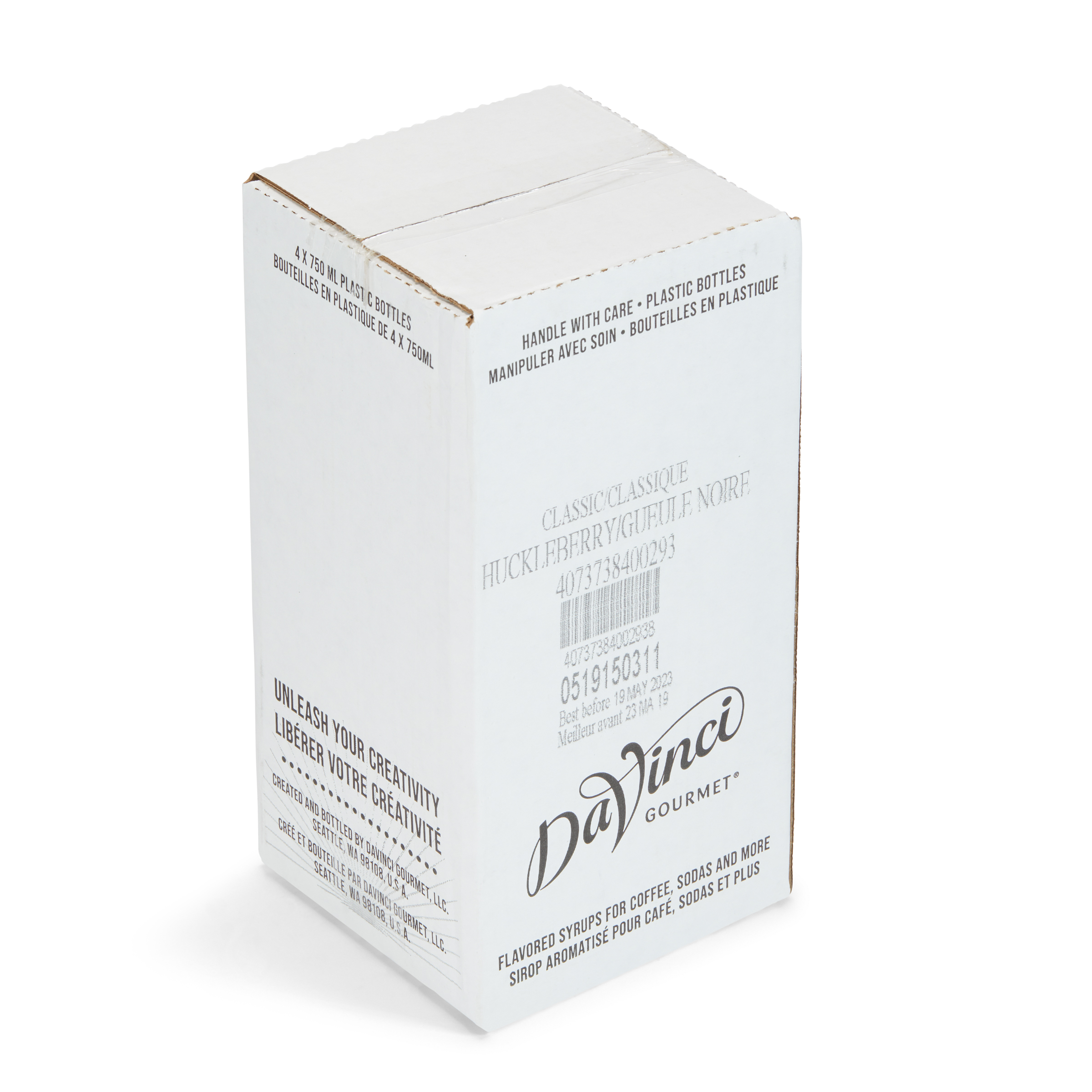 DaVinci Gourmet Huckleberry Syrup, Plastic Bottle, 4 x 750 mL
