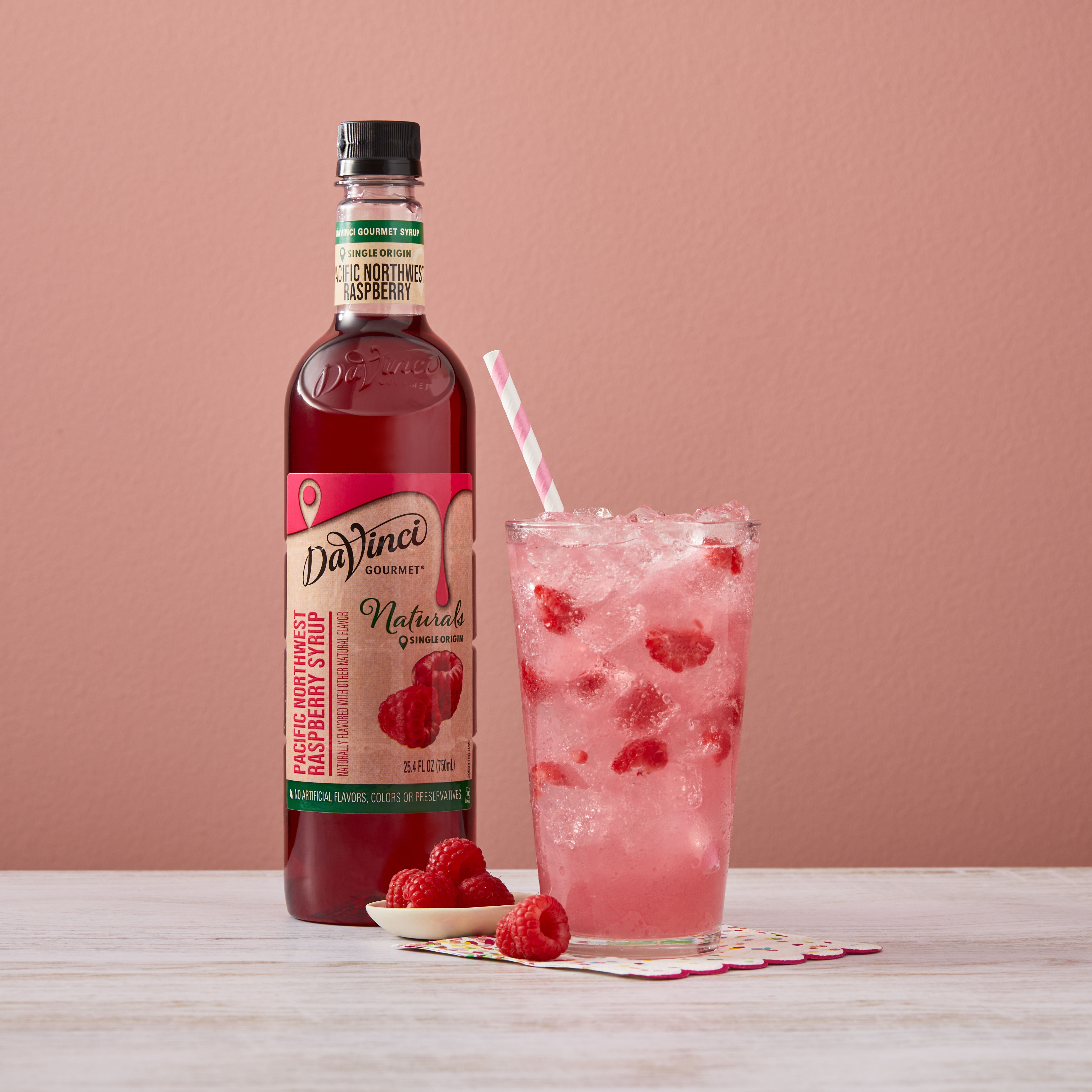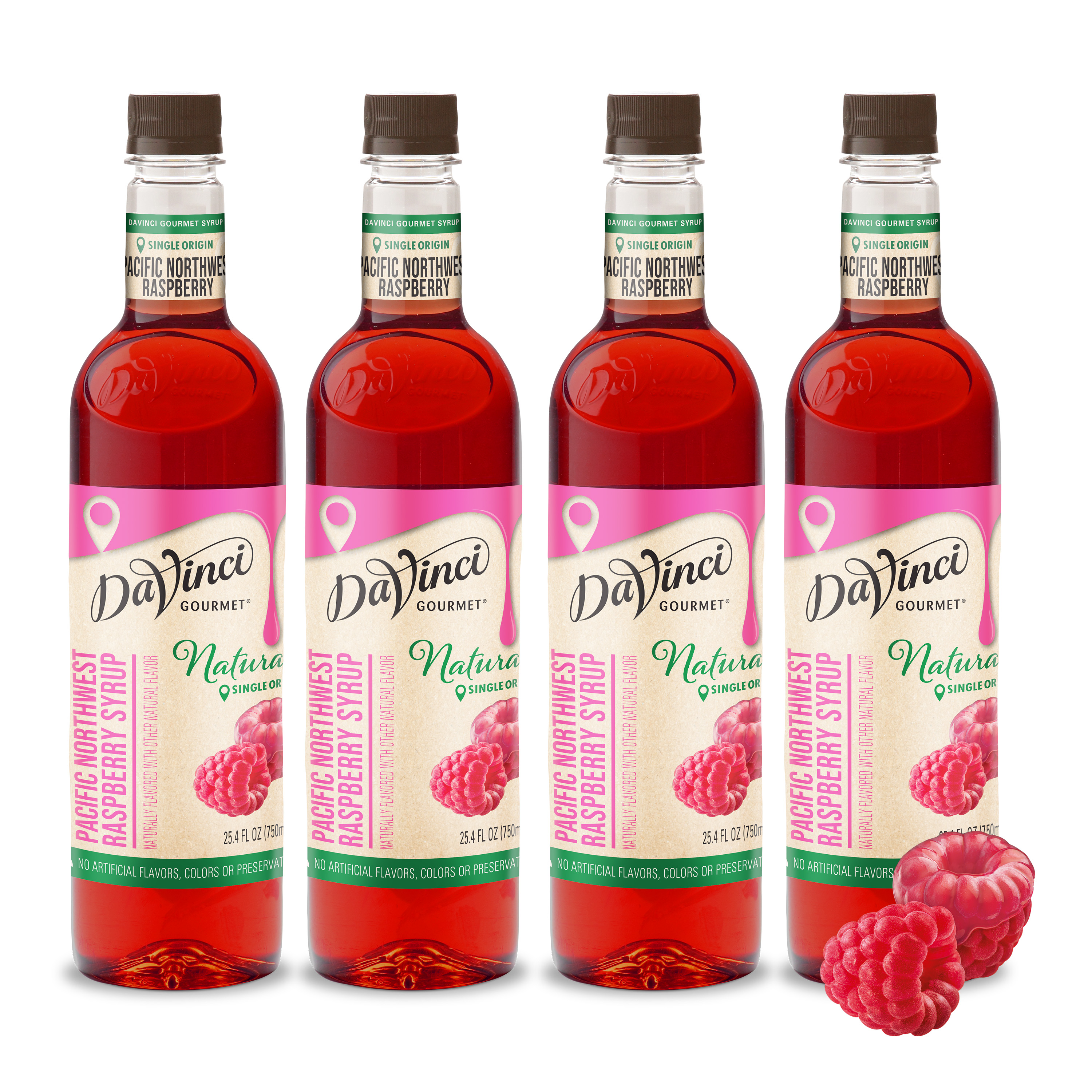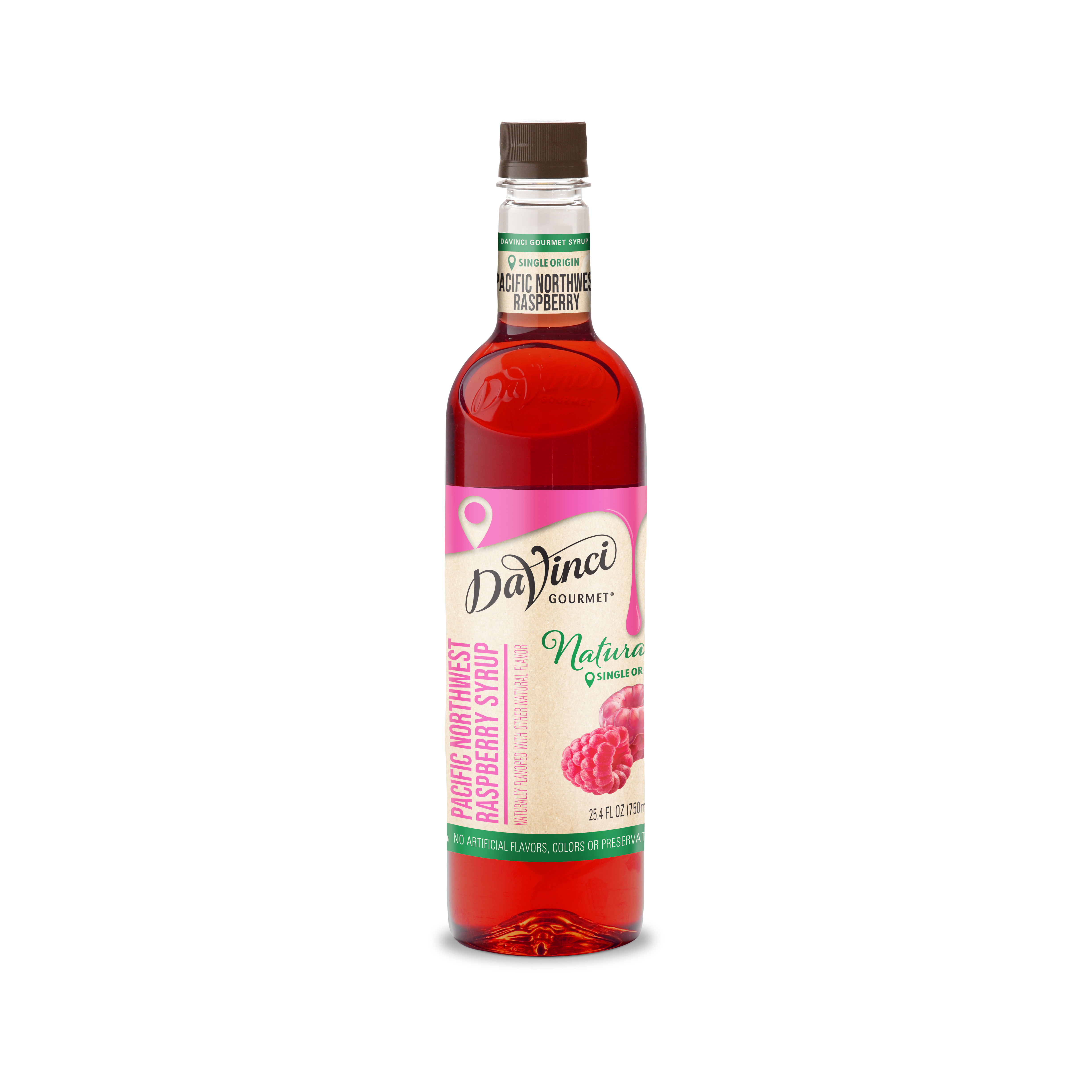 - Fresh-picked berry flavor infuses every delicious drop of our Single Origin Pacific Northwest Raspberry syrup. The home of DaVinci Gourmet produces the finest raspberries in the world, and we’ve captured the fresh taste of these sweet-tart berries for optimum flavor. At DaVinci Gourmet, we make every syrup in our Naturals line with the highest-quality ingredients, and sweeten them with pure cane sugar for balanced flavor. Hot or cold, DaVinci Gourmet’s versatile single origin raspberry flavored syrup makes a delicious addition to a wide range of culinary and beverage applications For a berry twist in hot beverages, add to coffee, tea or cocoa. In cocktail recipes, try in place of grenadine for natural berry flavor. Invent signature beverages, or add to desserts for incredible raspberry flavor. Or combine with syrups from our wide selection of Classic, Naturals and Fruit Innovations products to create unique custom flavors. Our Naturals Single Origin Raspberry syrup contains no artificial colors, flavors or preservatives. This DaVinci Gourmet Naturals flavored syrup is available in a 750mL plastic bottle.