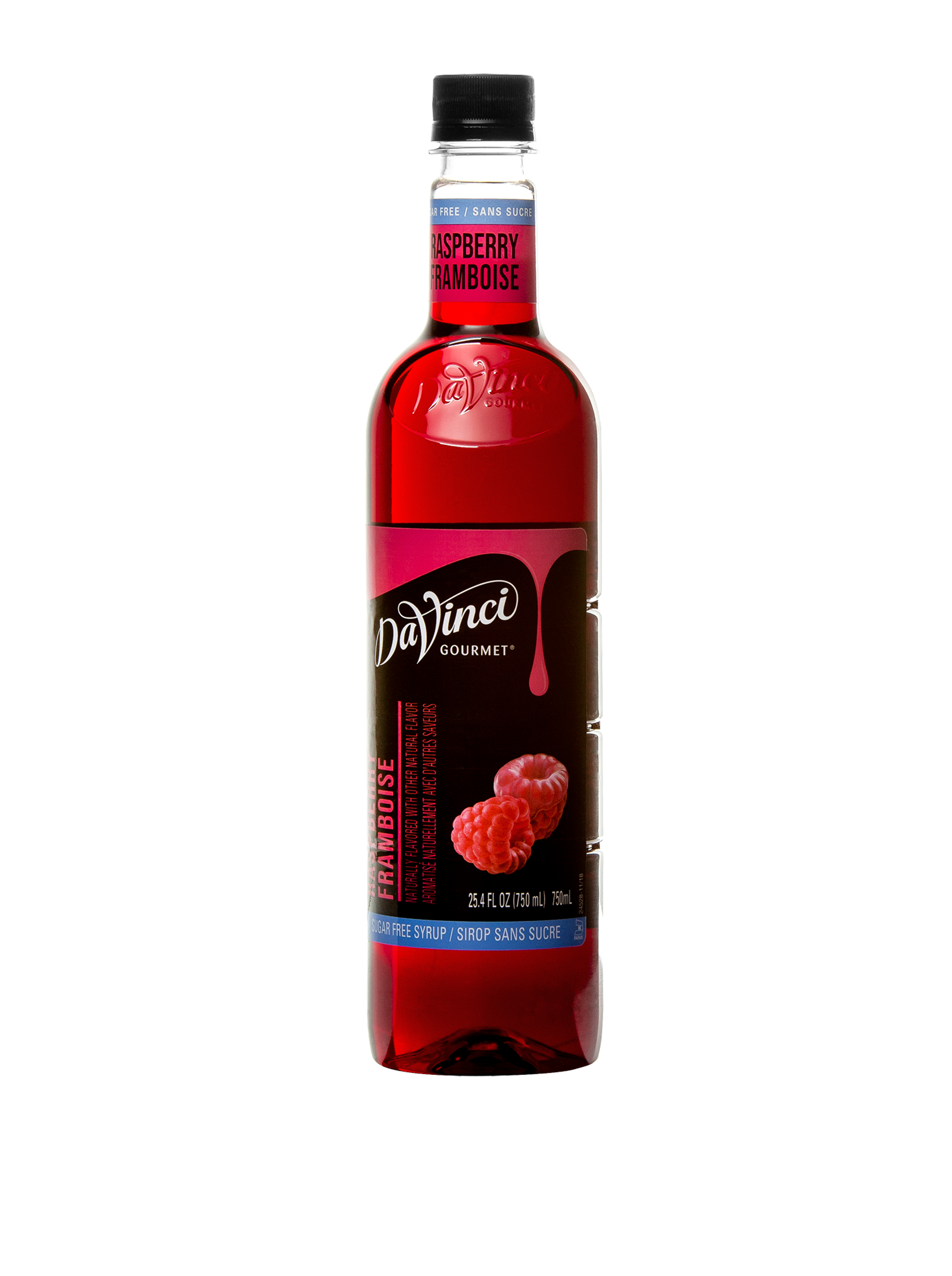 - Sweet, tart berry flavor infuses every delicious drop of this Sugar Free Raspberry syrup from DaVinci Gourmet. At DaVinci Gourmet, we craft all our products from the highest-quality ingredients to ensure incredible flavor. Our raspberry syrup contains the same fresh-picked berry flavor as our Classic syrup, minus the calories and sugar. Worldwide, professionals and connoisseurs trust our products to make superior beverages, cup after cup. With their needs in mind, we specially formulated our raspberry syrup to dissolve easily in hot and cold beverages. And for ultra-smooth texture, it resists curdling when mixed with dairy, making it a perfect addition to coffee drinks. Our Sugar Free Raspberry syrup contains 0 calories per serving. Kosher-Pareve certified.
