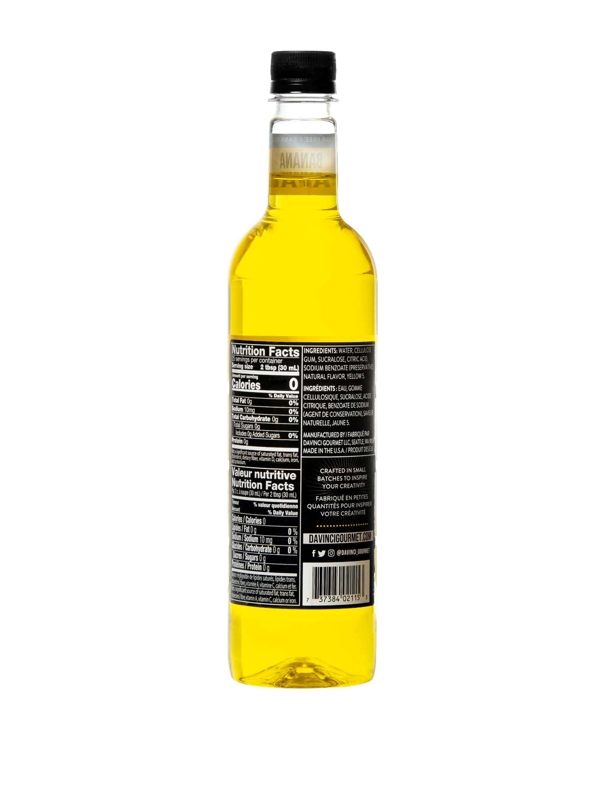 - Velvety banana flavor is infused in every drop of this deliciously fruity Sugar Free syrup from DaVinci Gourmet. Drizzle it into coffee, tea, cocktails, mocktails and desserts for sweet banana flavor and aroma without the sugar and calories. We craft our DaVinci Gourmet Sugar Free Syrups with delicious ingredients for incomparable taste. You can use our Sugar Free syrups in hot, cold and blended beverages, as well as your favorite culinary creations, whether you're at home or at the coffee shop.