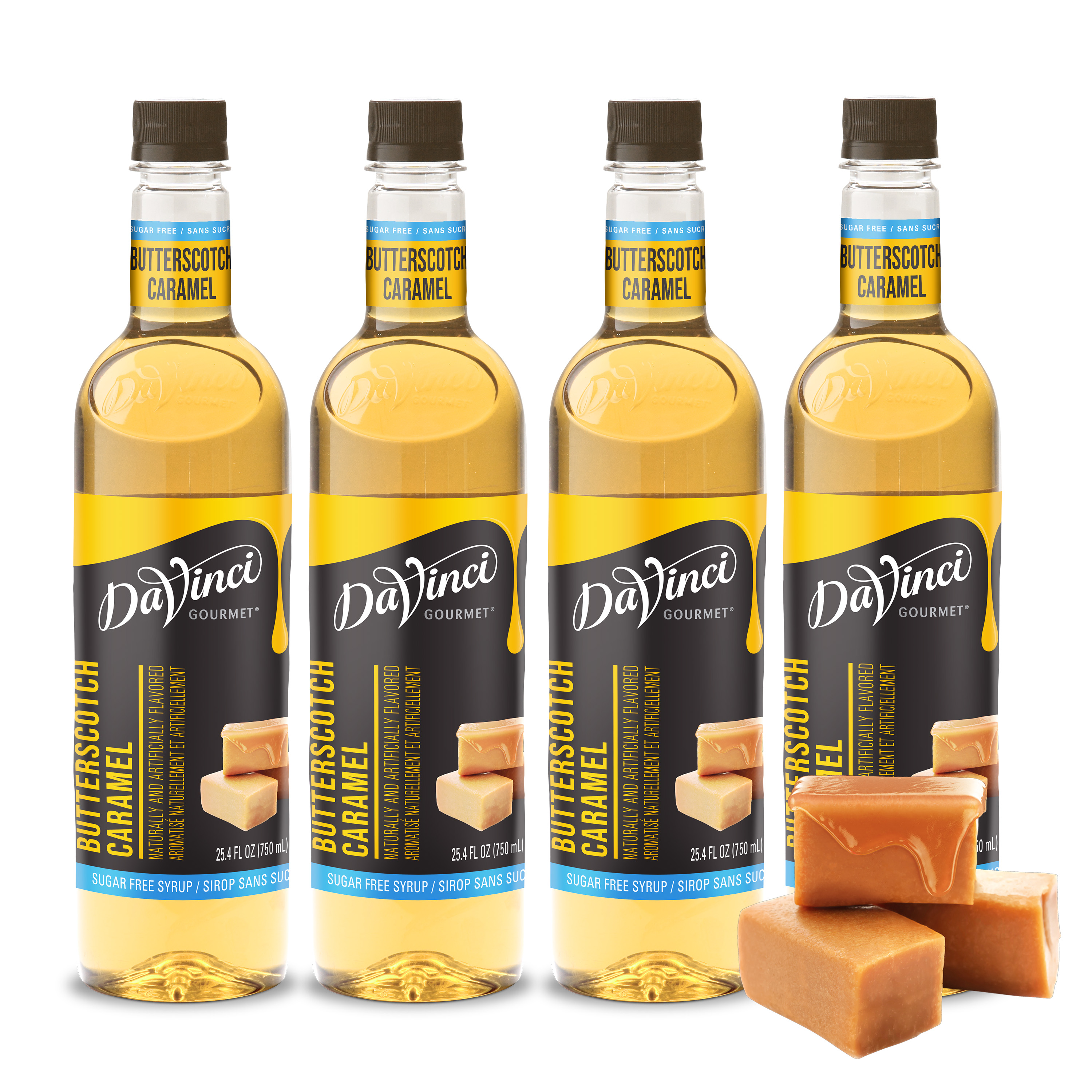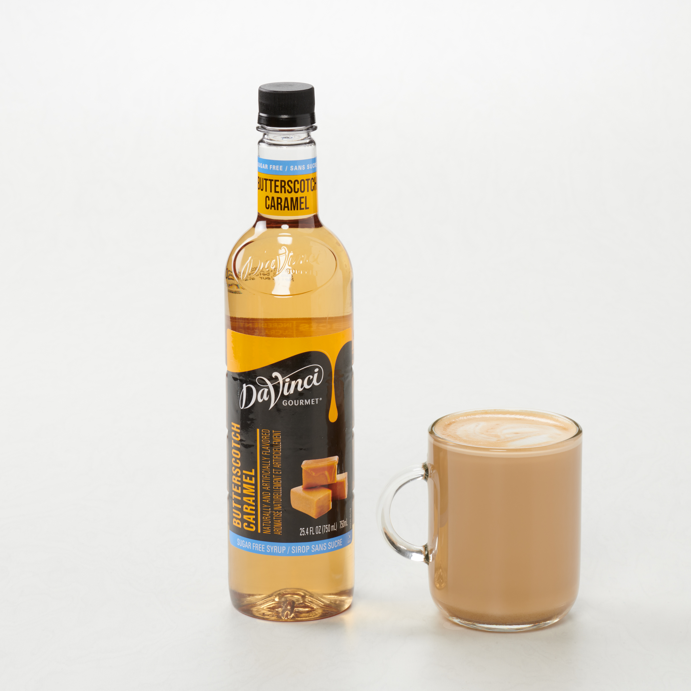 - Rich butterscotch caramel flavor is infused in every drop of this coffeehouse favorite Sugar Free syrup from DaVinci Gourmet. Drizzle it into coffee, tea, cocktails, mocktails and desserts for sweet butterscotch caramel flavor and aroma without the sugar and calories. We craft our DaVinci Gourmet Sugar Free Syrups with delicious ingredients for incomparable taste. You can use our Sugar Free syrups in hot, cold and blended beverages, as well as your favorite culinary creations, whether you're at home or at the coffee shop.