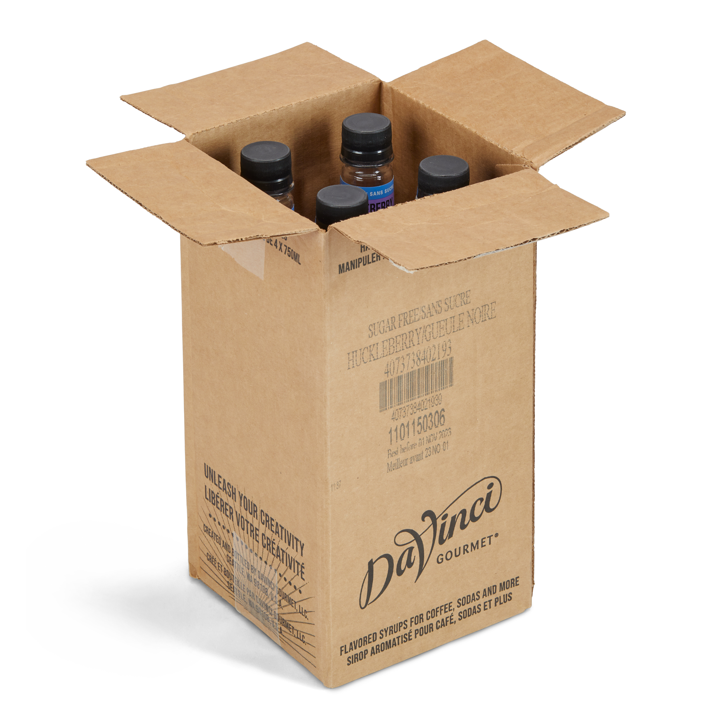 DaVinci Gourmet Sugar Free Huckleberry Syrup, Plastic Bottle, 4 x 750 mL