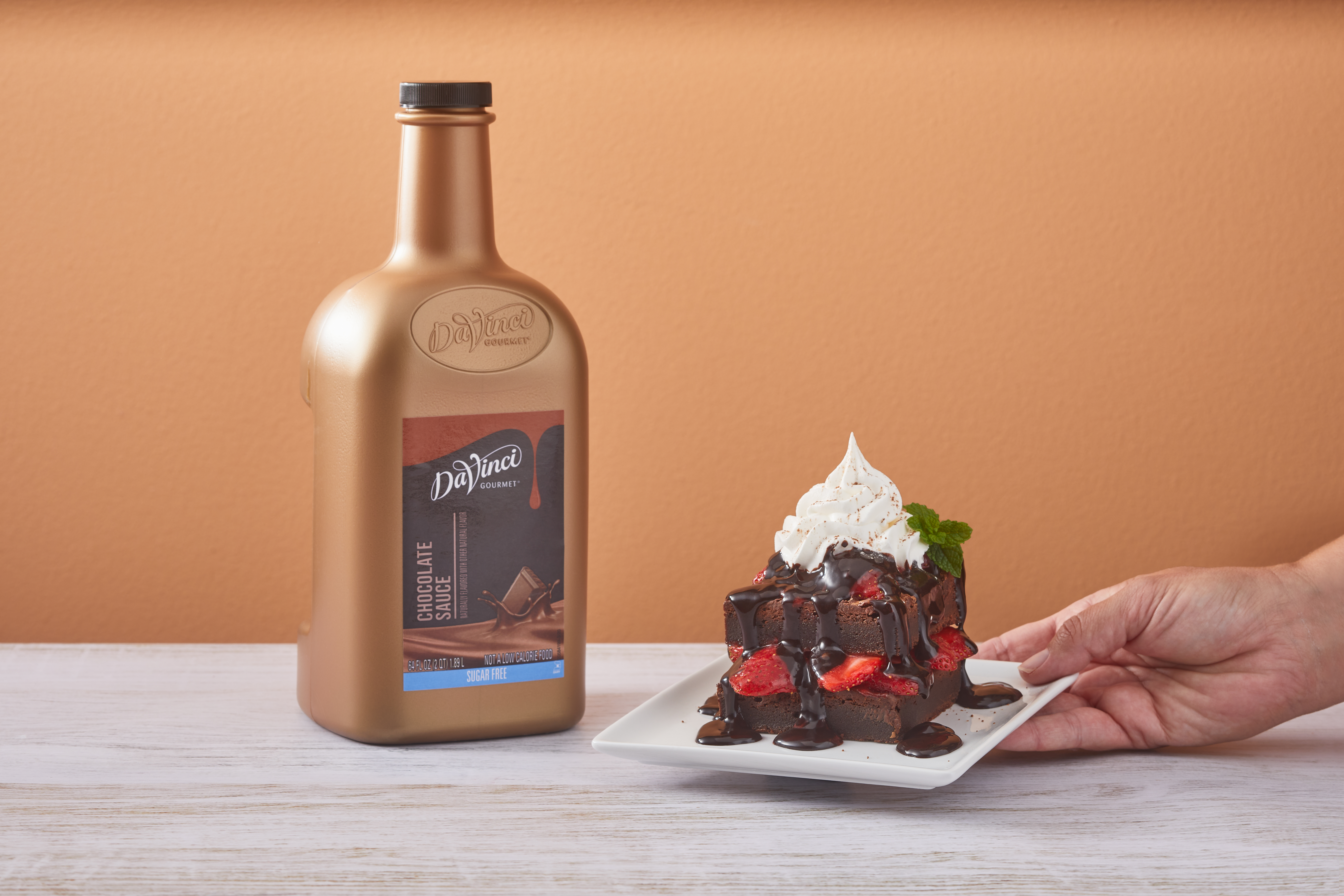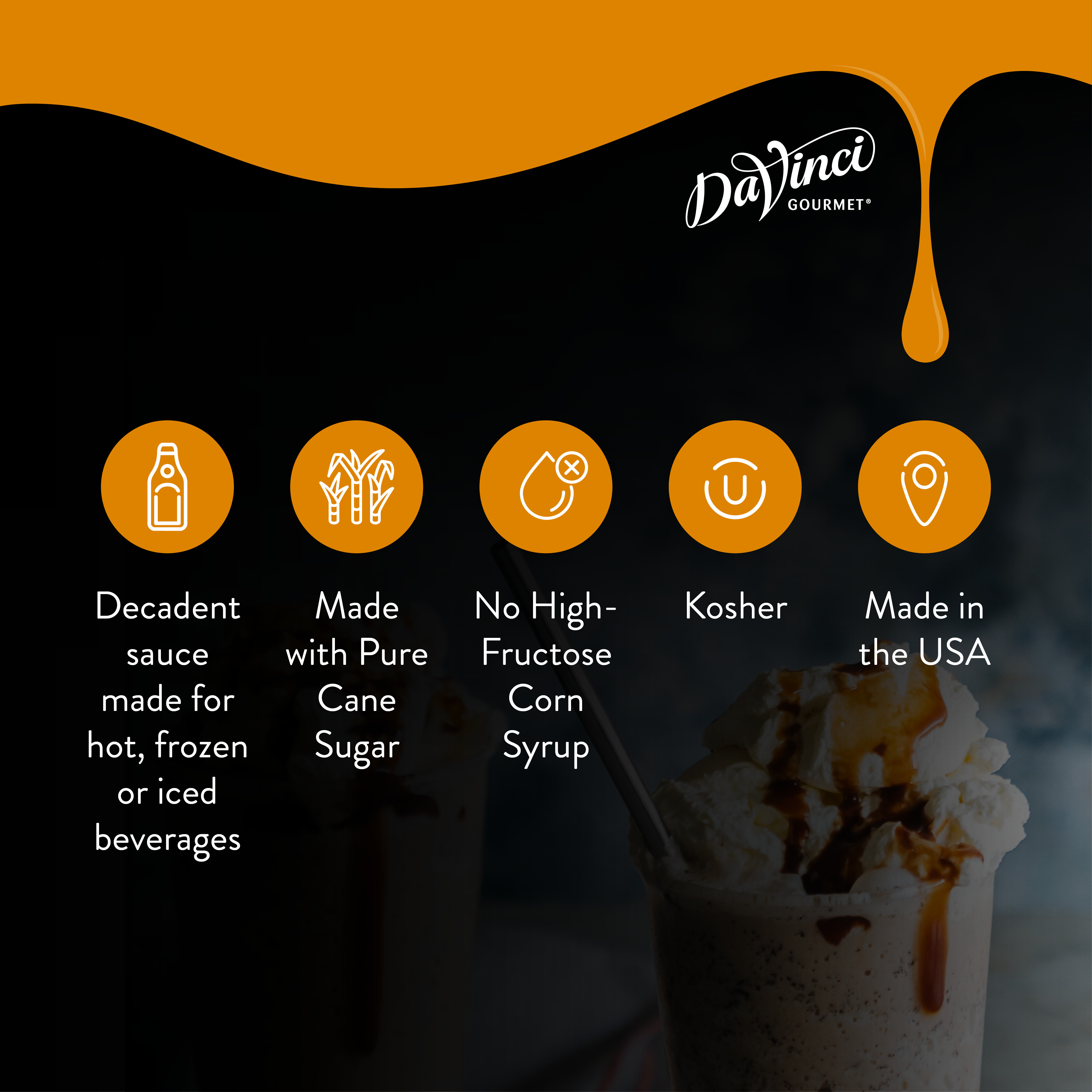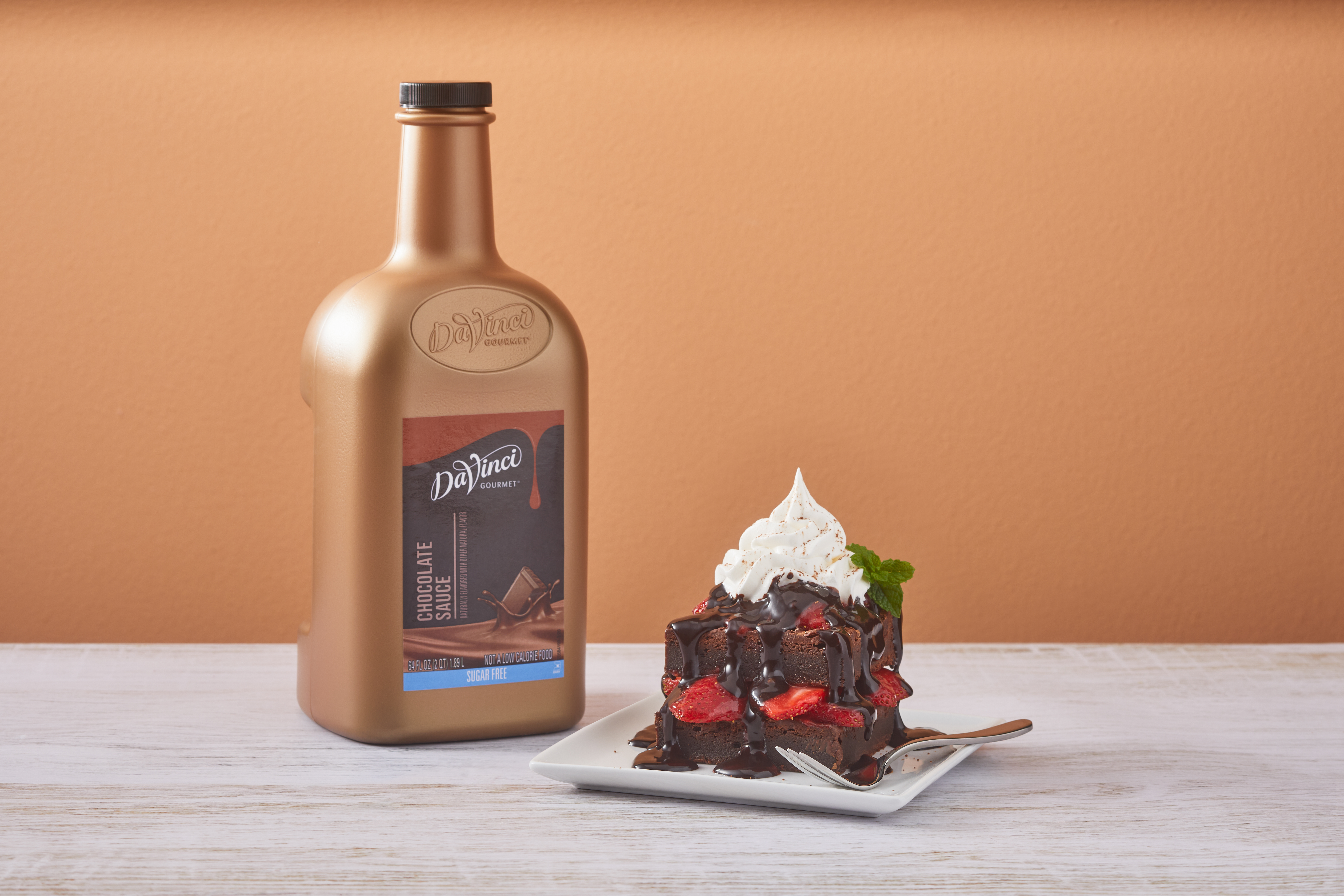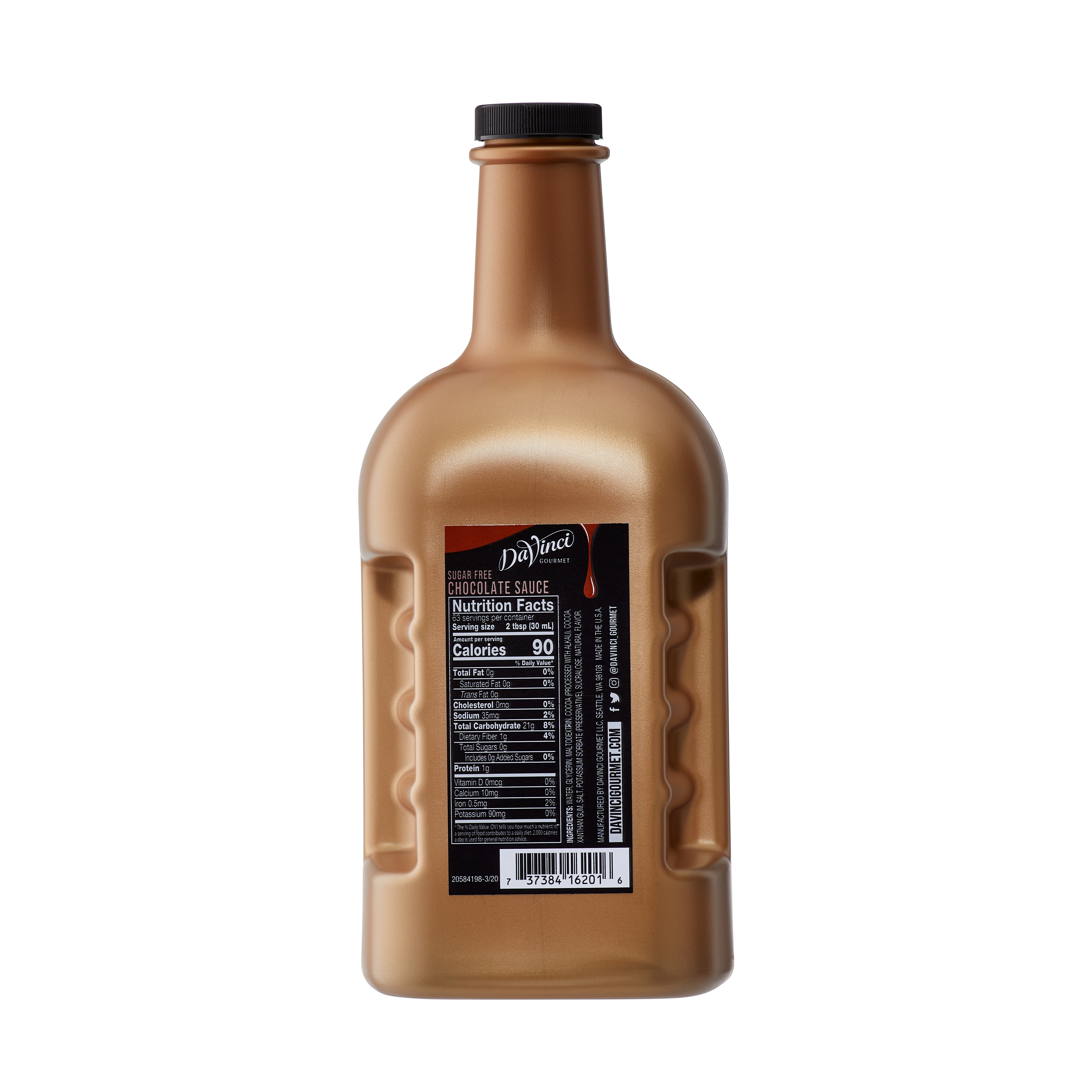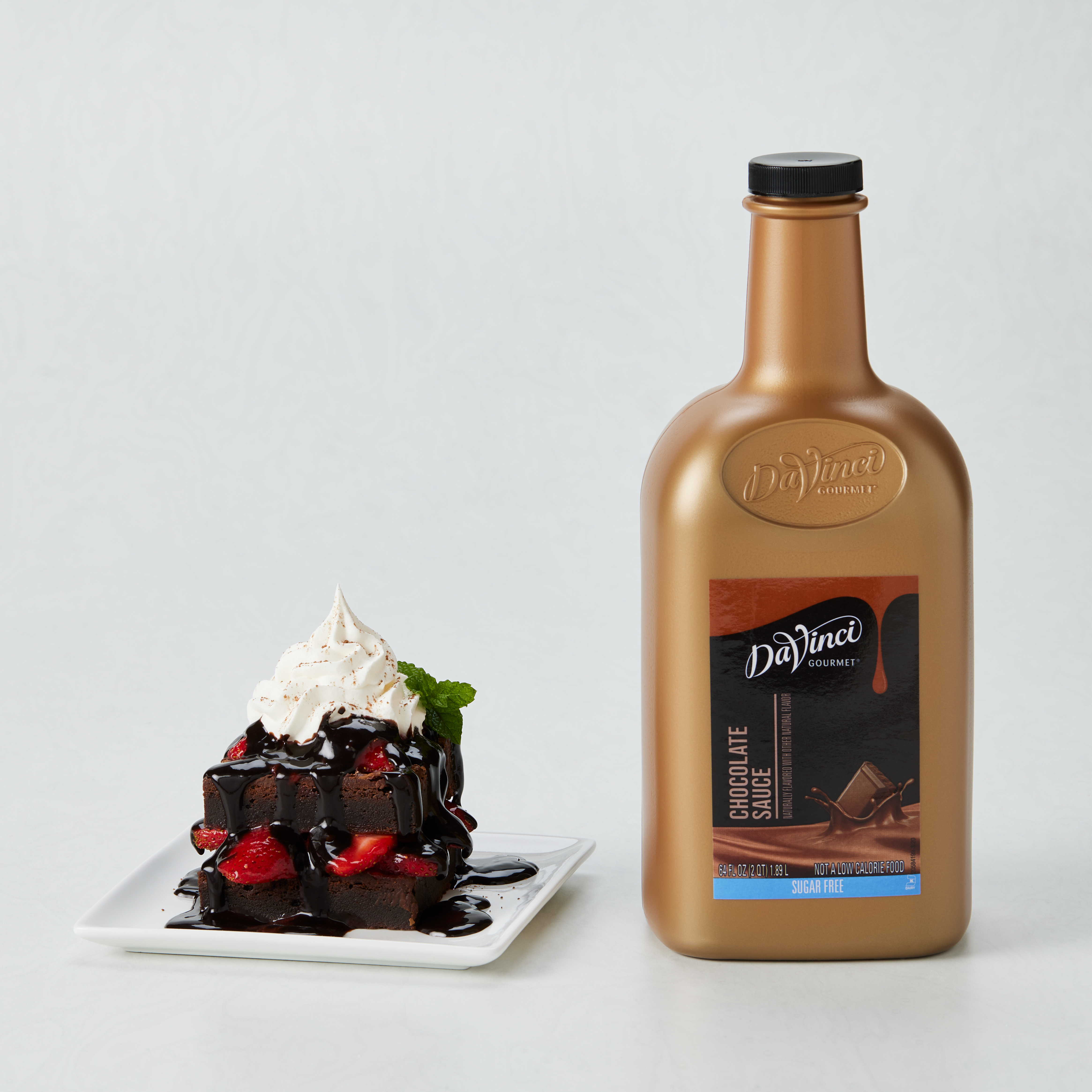 - Enjoy the rich flavor of our Classic Chocolate Sauce without sugar when you add this sugar-free version into drinks and desserts. This creamy sauce from DaVinci Gourmet will satisfy sweet cravings for chocolate lovers who are watching their sugar intake. Our Classic Sugar-Free Chocolate Sauce features the taste of deep chocolate flavor and the same attention to quality as our original offerings so everyone can indulge with a sweet treat. Our smooth, decadent sauce contains a blend of natural and Dutch cocoas for deep chocolate flavor. Across the globe, professional baristas trust DaVinci Gourmet products like this delicious chocolate sauce to help them create beverages and desserts that delight their discerning customers.Try our rich-tasting Classic Sugar-Free Chocolate Sauce in a wide range of beverage and culinary applications. Add to coffee, mochas, frappes or hot cocoa for enhanced chocolate flavor. Or drizzle our sauce over whipped topping on beverages for a ribbon of chocolate decadence.Our Classic Sugar-Free Chocolate Sauce is Kosher-Dairy certified.This DaVinci Gourmet Classic Sugar-Free Chocolate Sauce is available in a 1/2 gallon plastic jug. INGREDIENTS: Water, Glycerine, Maltodextrin, Cocoa (processed with alkali), Cocoa, Natural Flavor, Xanthan Gum, Salt, Potassium Sorbate (preservative), Sucralose.