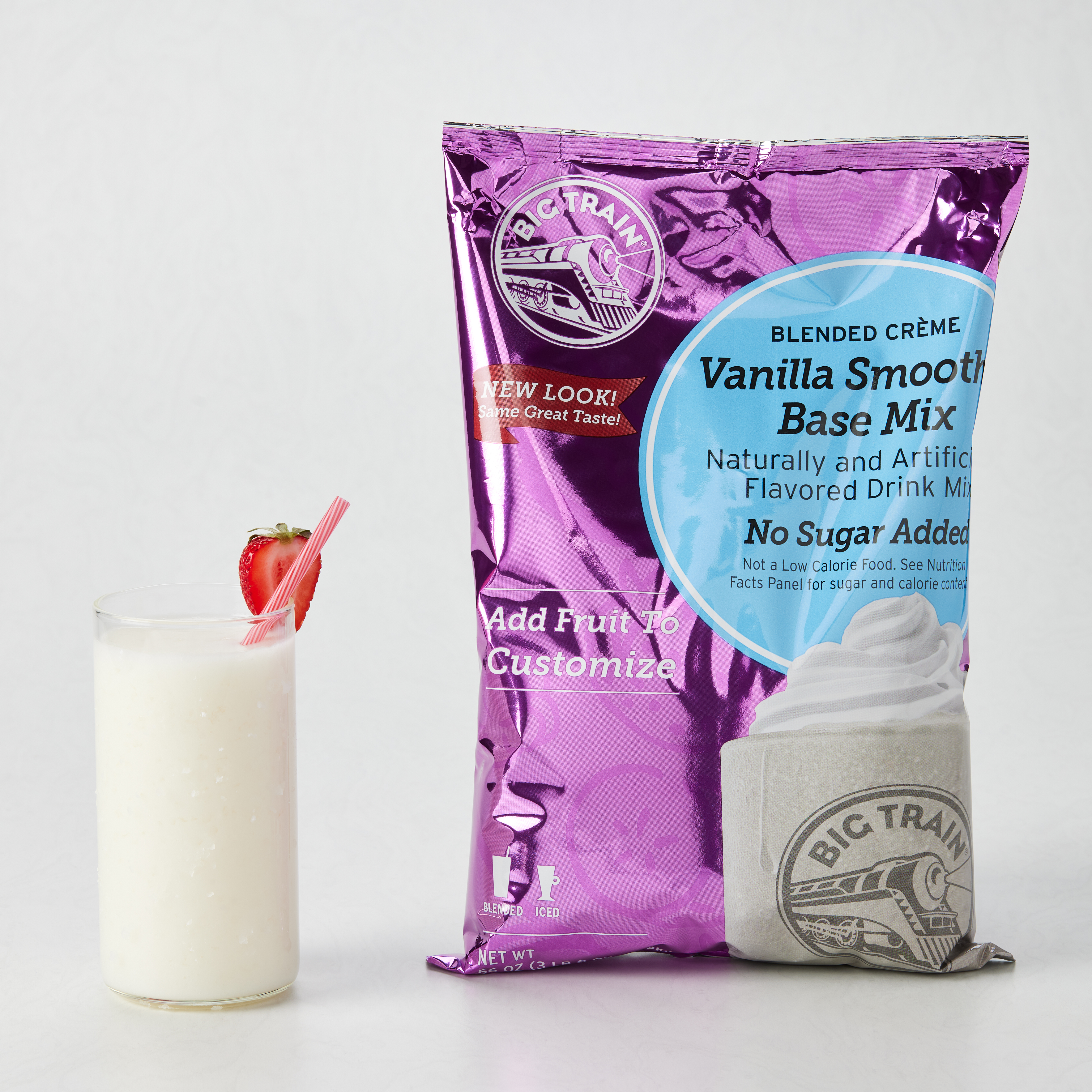 - Enjoy the sweet flavor of our classic Vanilla Smoothie Base Mix and take smoothies to the next level - without added sugar! Big Trains No Sugar Added (NSA) Vanilla Smoothie Mix is perfect for people who are watching their sugar intake. Versatile vanilla goes with everything, simply add real fruit, sugar-free syrup, or get creative and add your favorite cereal!