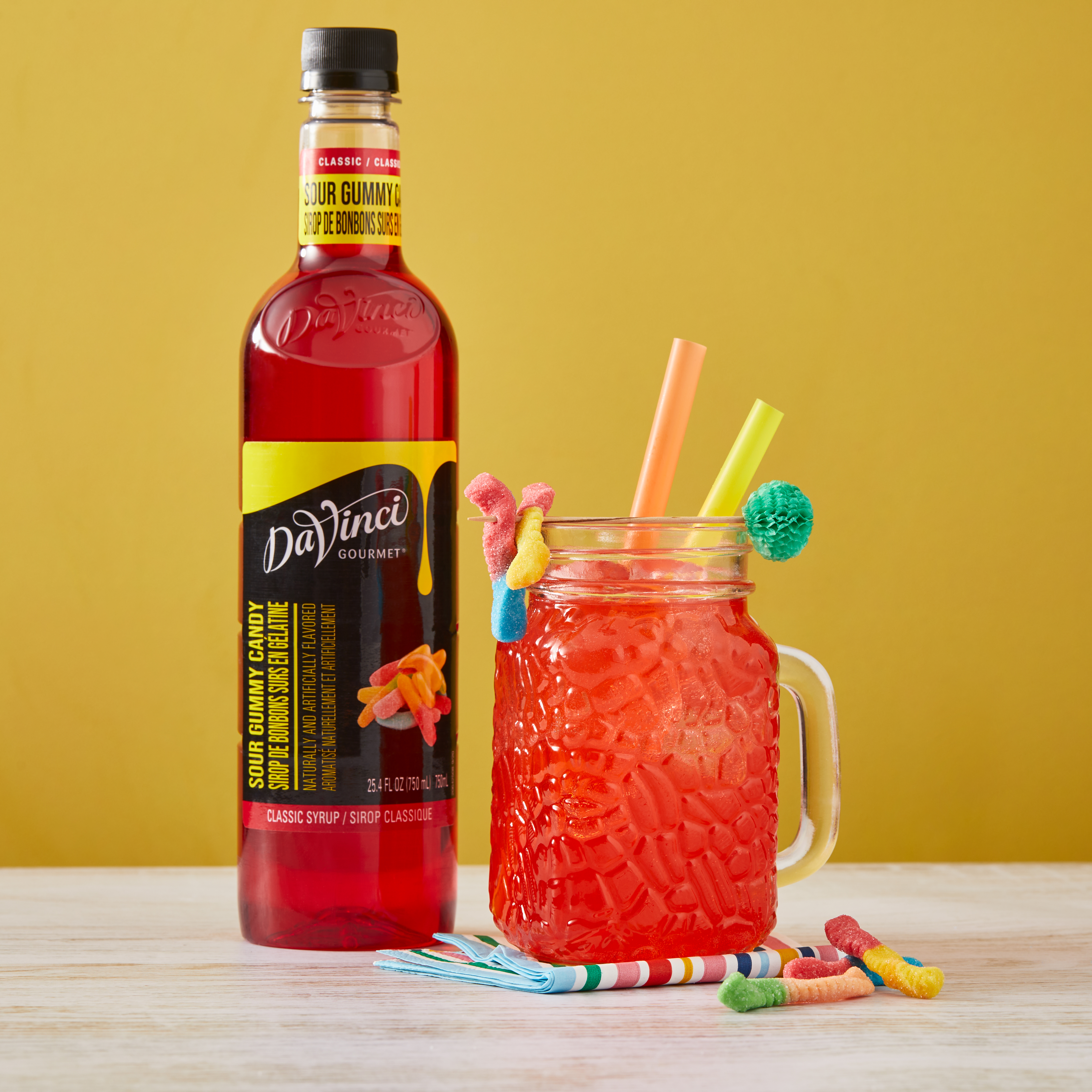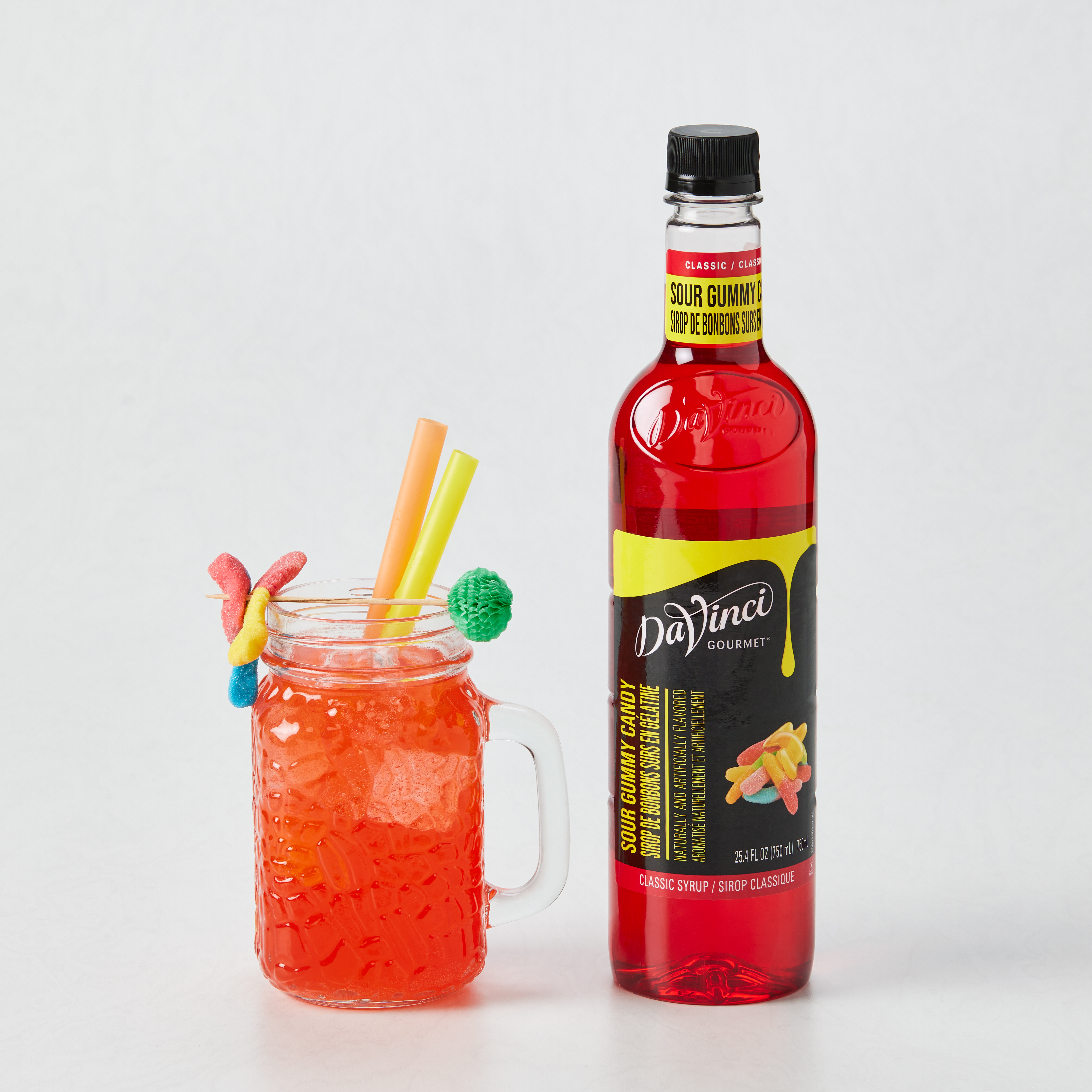 | Bullet 3 | DaVinci Gourmet Sour Gummy Candy Syrup is designed for fun and festive beverages; Add a splash to lemonades or iced teas for a fun twist or add to smoothies and milkshakes for a nostalgia-packed drink |
