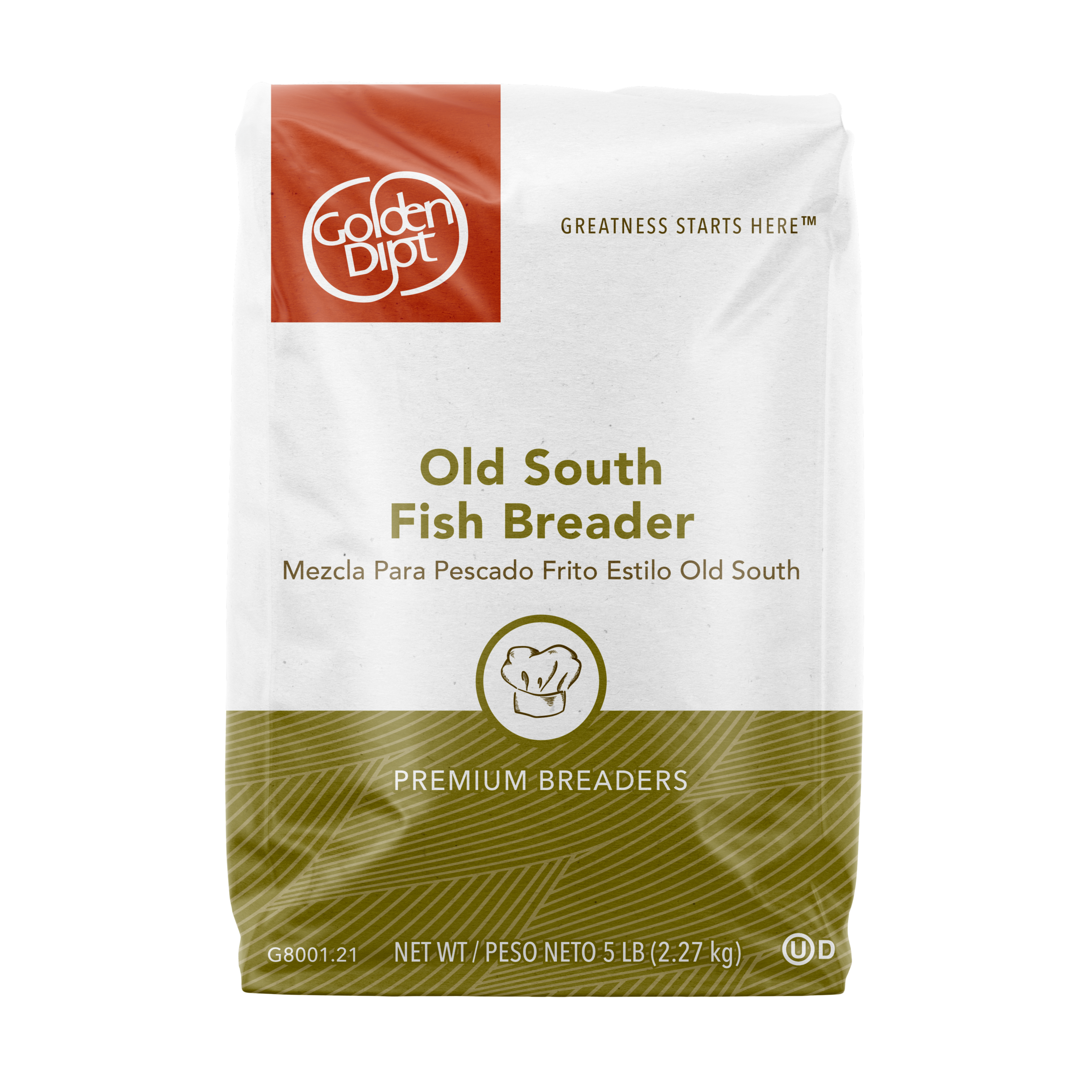 - Make authentic Southern-style fish fries the easy way with Old South Fish Fry Meal from Golden Dipt. Since 1938, Golden Dipt has designed premium, scratch-quality products for foodservice operators. Our coatings make foods easier to prepare than scratch, and are fresher than frozen. This Southern-style coating features corn flour for homemade taste and appearance. It fries to a light golden brown color with a crisp texture. From appetizers to entrees, our lightly seasoned breader is all you need for delicious, crisp seafood, the classic Southern way. Our Old South Fish Fry Meal is Kosher-Dairy certified . Contains milk and wheat. Golden Dipt Old South Fish Fry Meal comes in 5 lb. bags, 6 per case to coat 300 lbs.