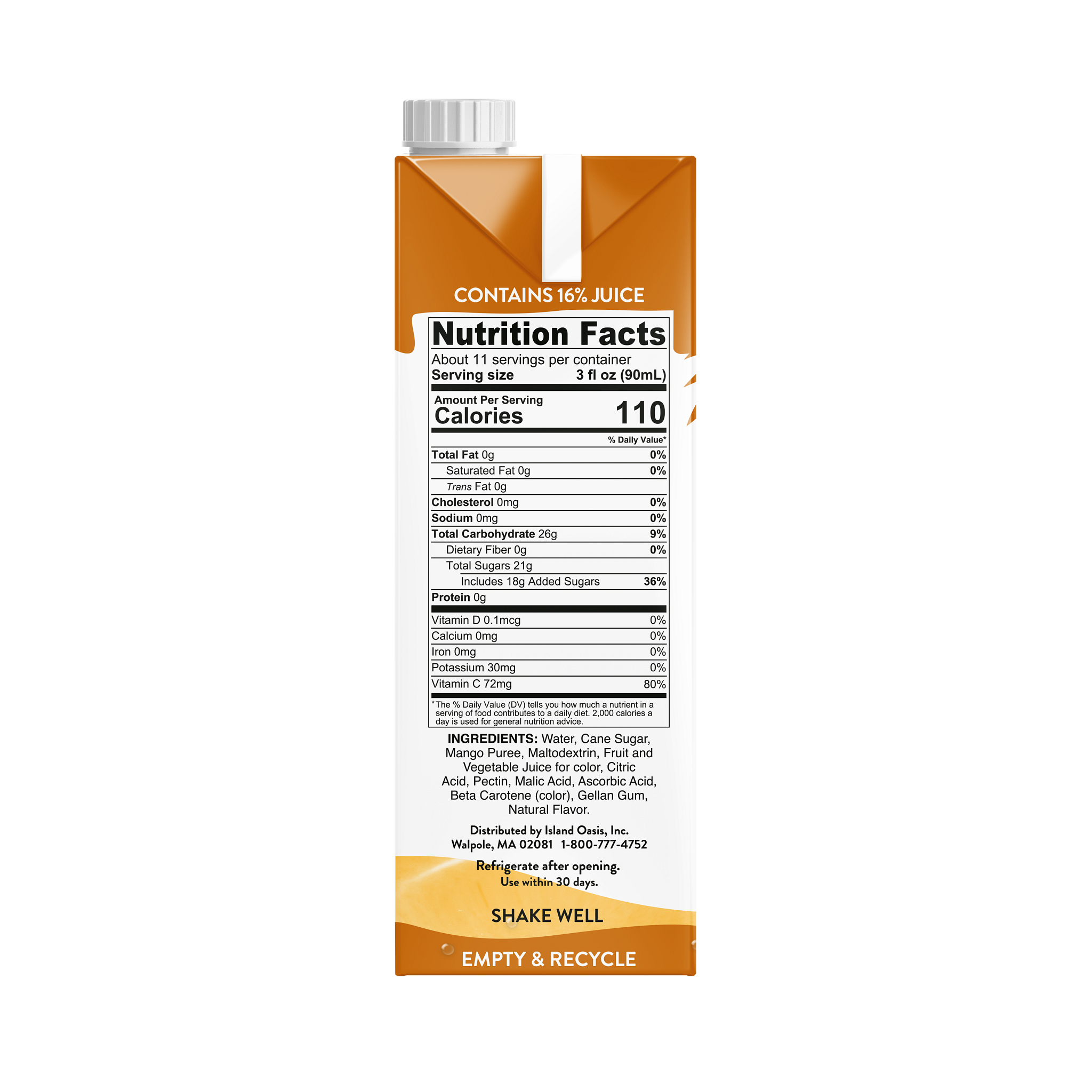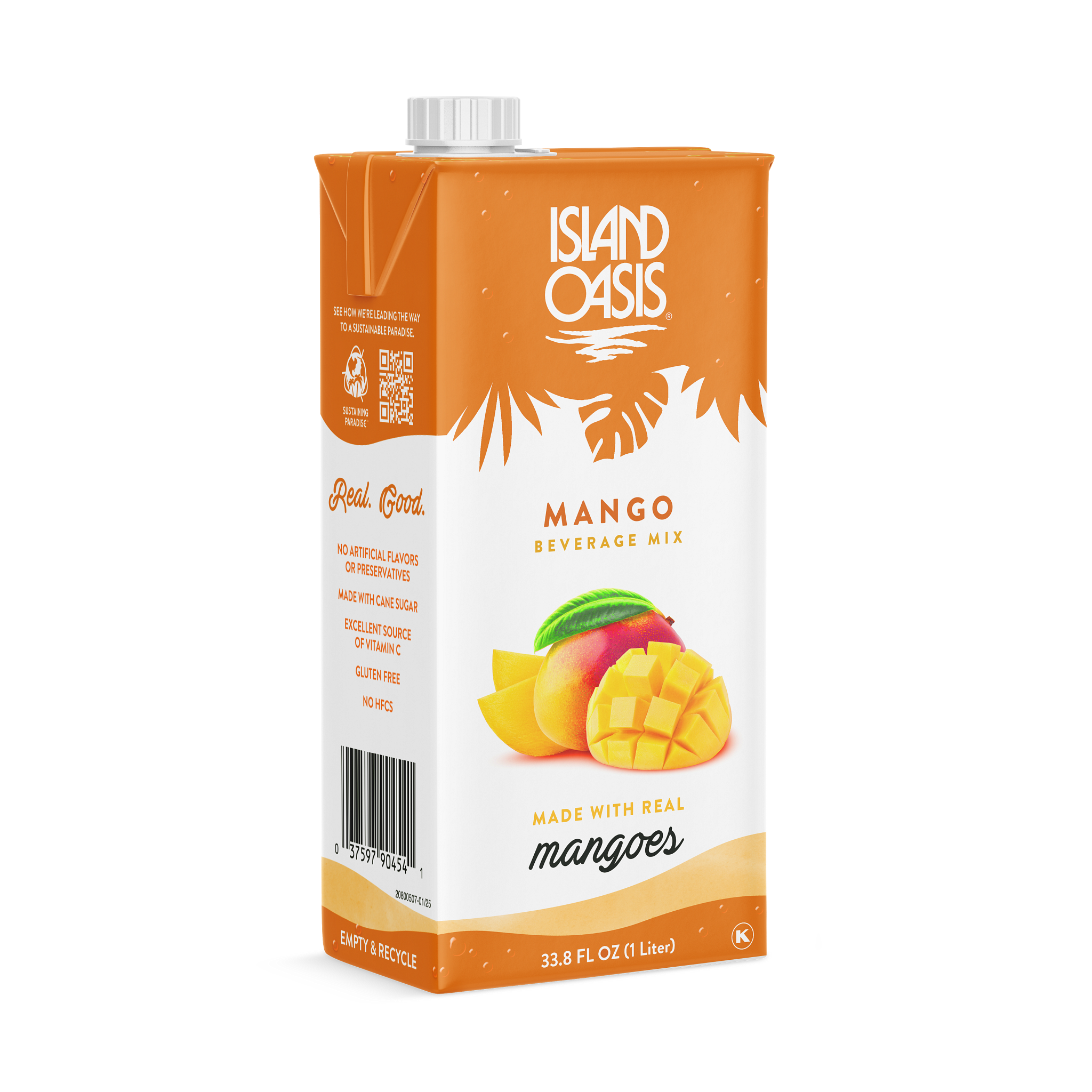 - Island Oasis Shelf-Stable Mango Beverage Mix is made with a premium mango puree that delivers a delightful and tropical taste bud experience. Simply pour and mix or blend for fresh-tasting smoothies, juices, signature cocktails, agua frescas and more. No artificial flavors or preservatives. Gluten free and Kosher. Crafted with premium, real Chato mangos.