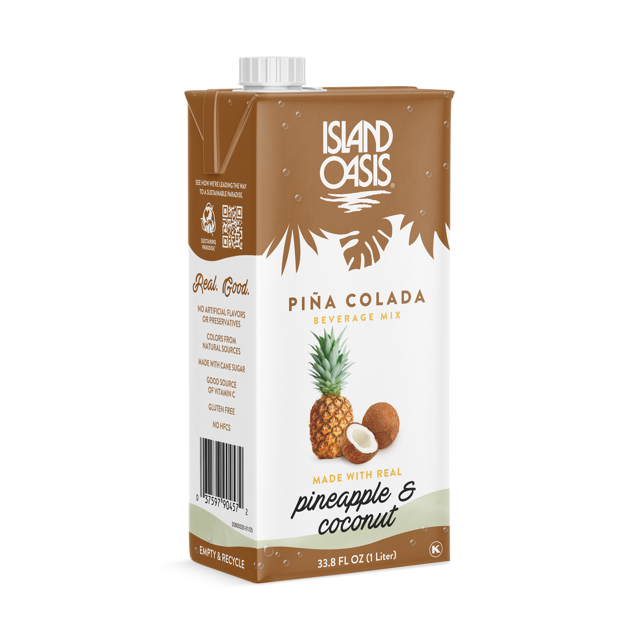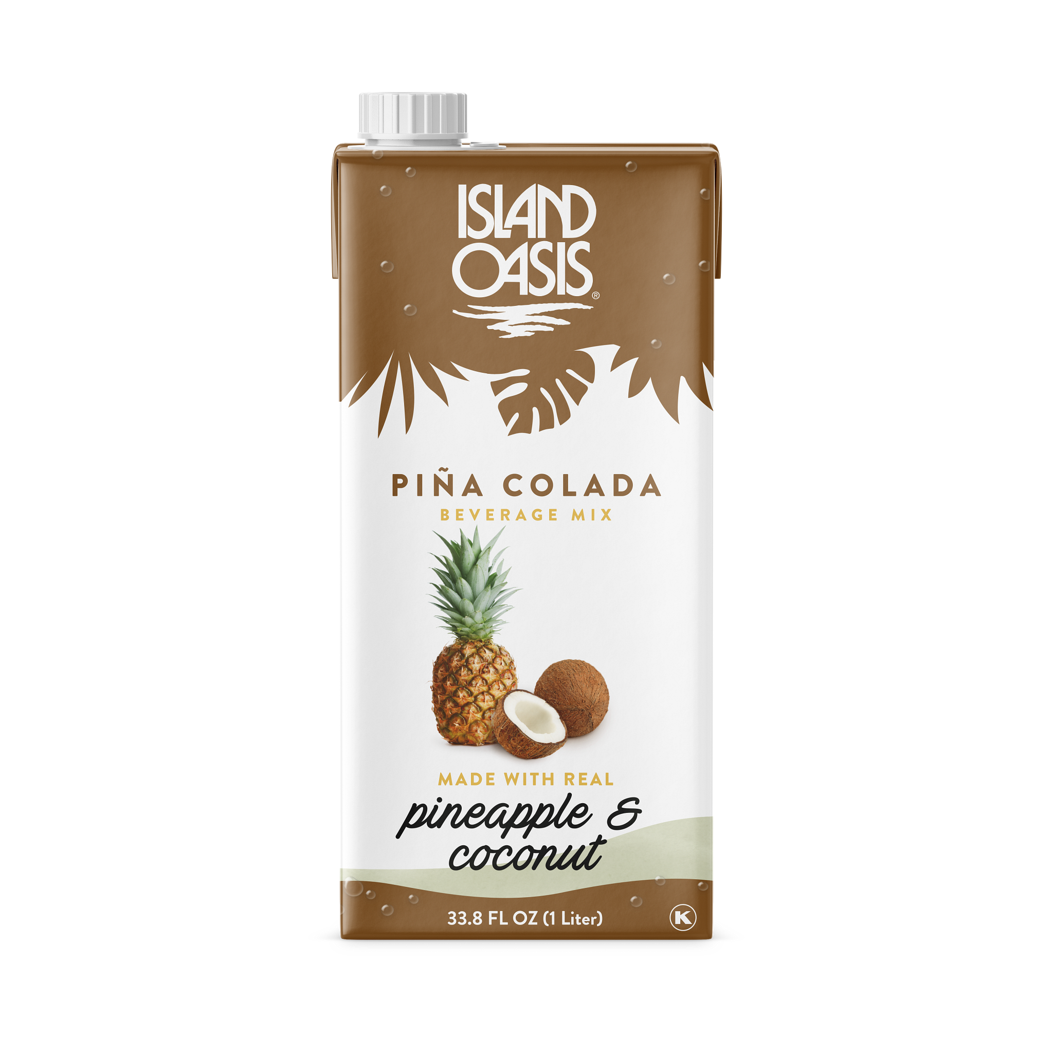 - Sip away to pure paradise with Island Oasis Shelf-Stable Piña Colada Beverage Mix. Our mix is bursting with real fruit flavor in every drop. It's specifically crafted to help you easily mix your magic with every drink and none of the prep. Simply blend with liquor and ice for a classic piña colada, or pour over ice. Use as a base or add a splash to create signature cocktails, frozen drinks, mocktails, smoothies and more! Made with real pineapple and coconut, is dairy and gluten free and Kosher. Contains no high fructose corn syrup and no artificial preservatives or colors. Contains 64% juice.