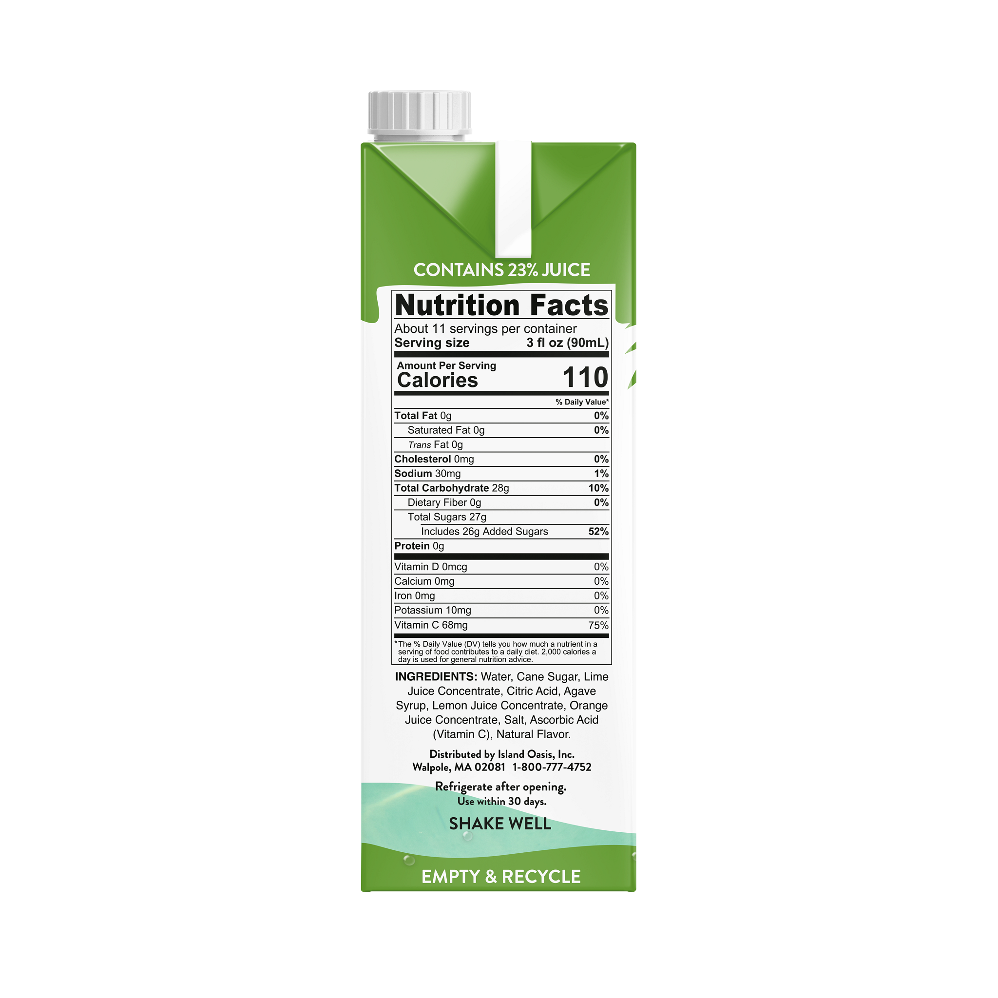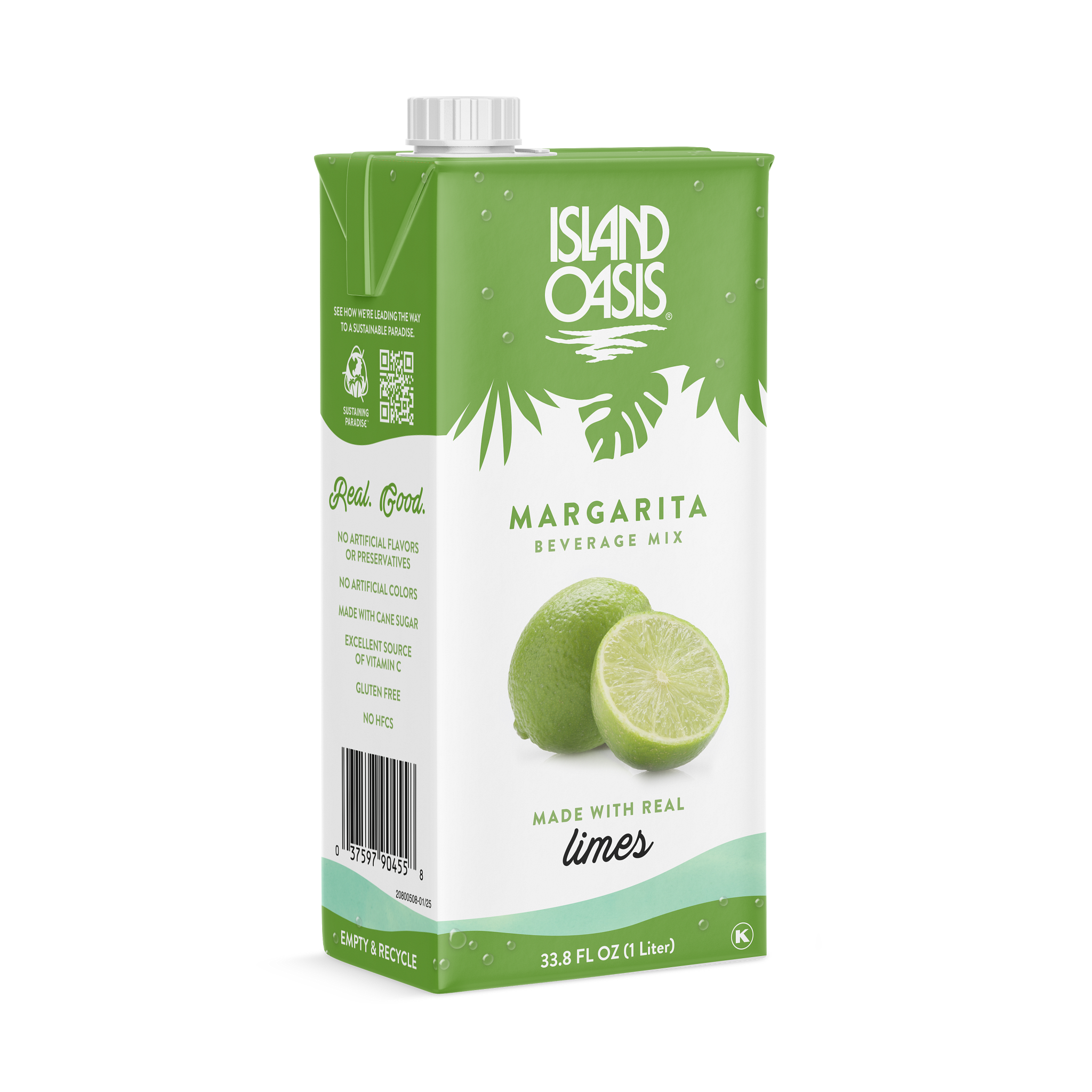 - Sip away to pure paradise with Island Oasis Shelf-Stable Margaita Beverage Mix. Our mix is bursting with real fruit flavor in every drop. It's specifically crafted to help you easily mix your magic with every drink and none of the prep. Simply blend with liquor and ice for a frozen margarita, or pour over ice for a signature on-the-rocks margarita. Made with real limes, is gluten free and Kosher, and contains no high fructose corn syrup. Contains 72% juice.