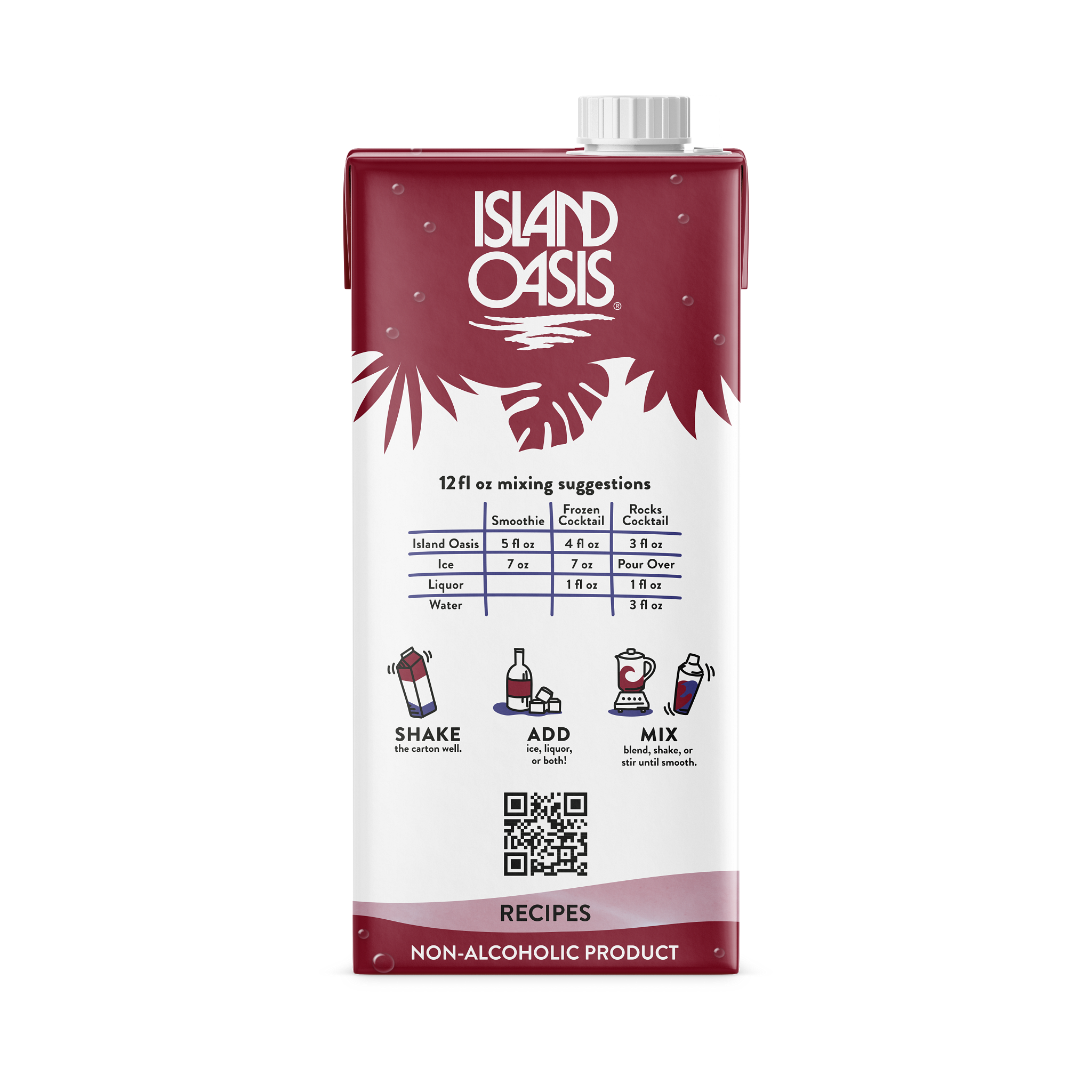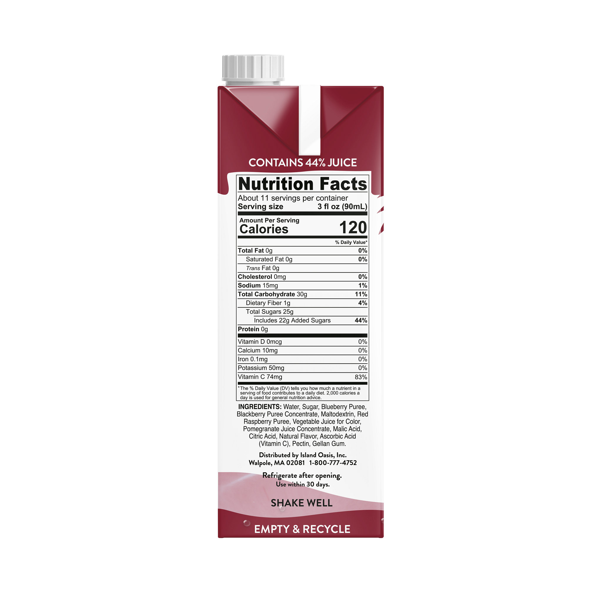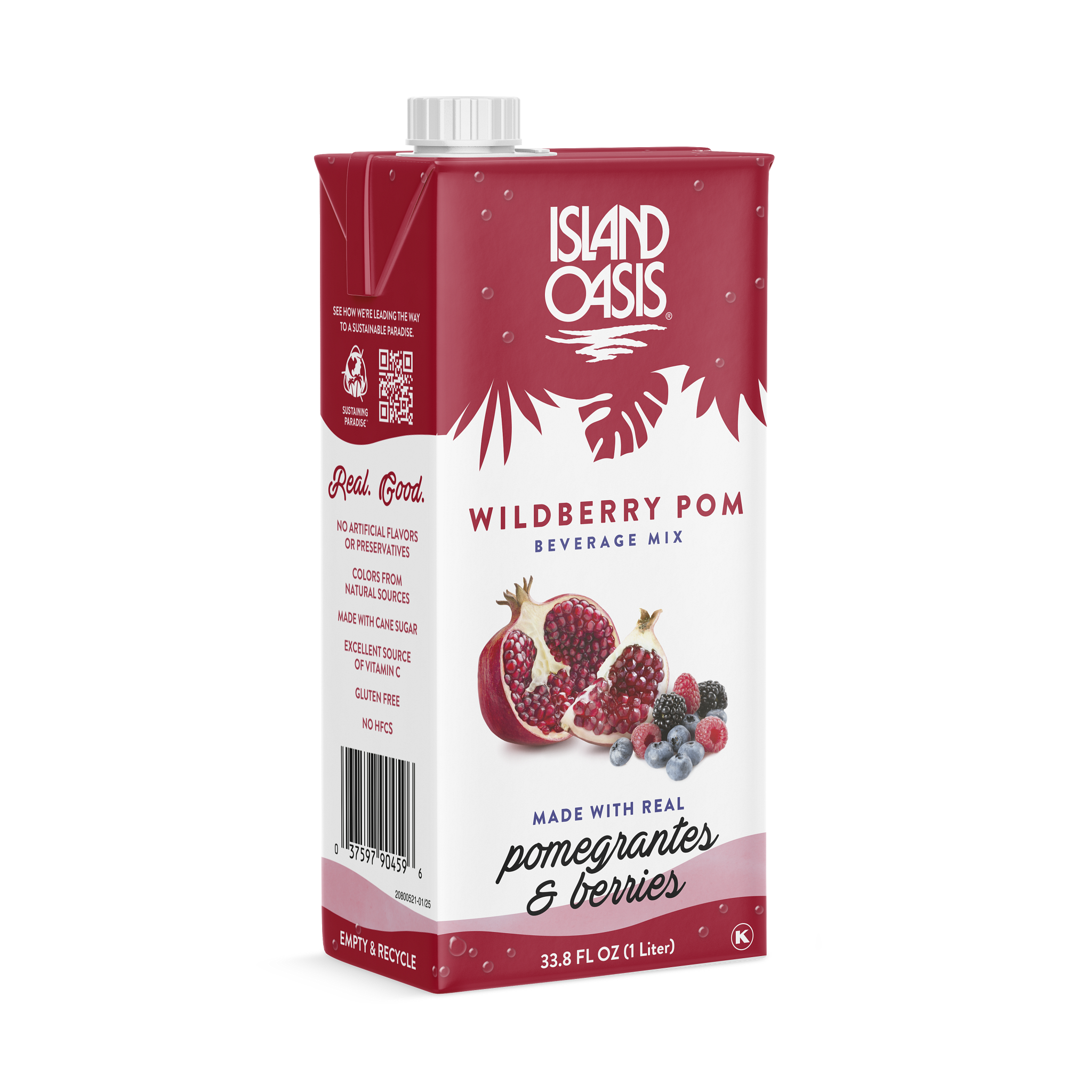 | Bullet 2 | Island Oasis Wildberry Pomegranate Fruit Puree is shelf stable, making it easy to store and pour smoothies, cocktails and more. |