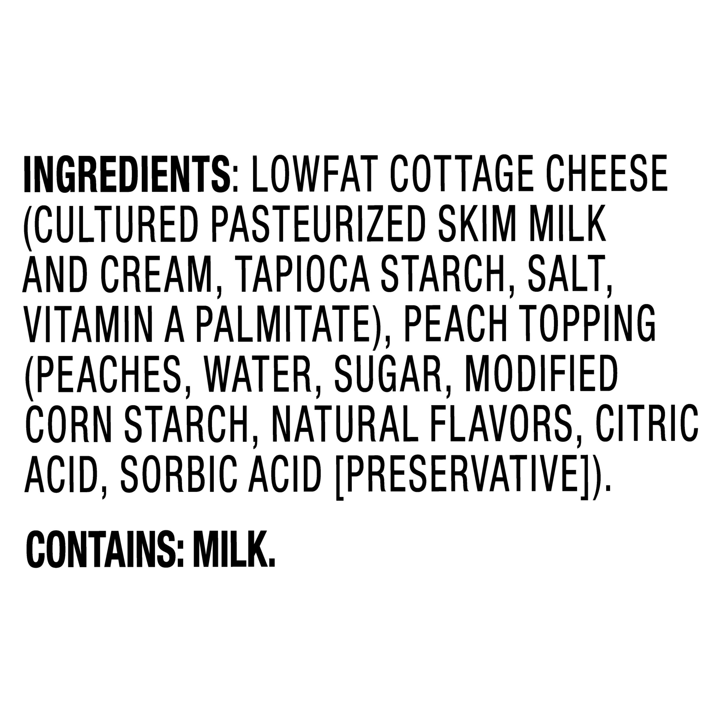| Keywords | real milk, cottage cheese dessert, sweet cottage cheese, 2% milkfat, cottage cheese, single serve, peach cottage cheese, cottage cheese cups, easy snack, on the go, peach topping |