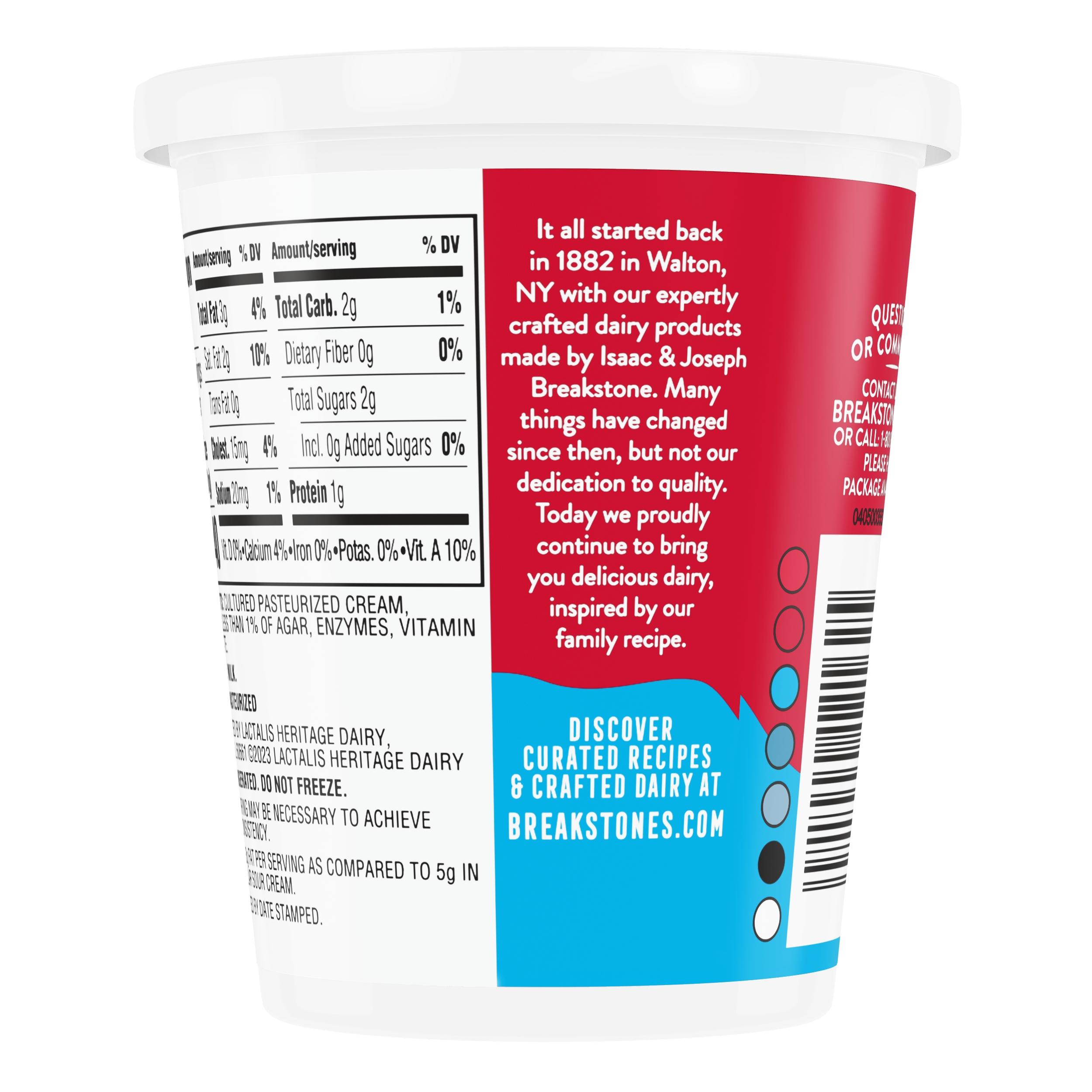 | Feature Bullet 5 | Breakstone’s is a heritage brand established in 1882 in Walton NY known for delicious dairy products |
