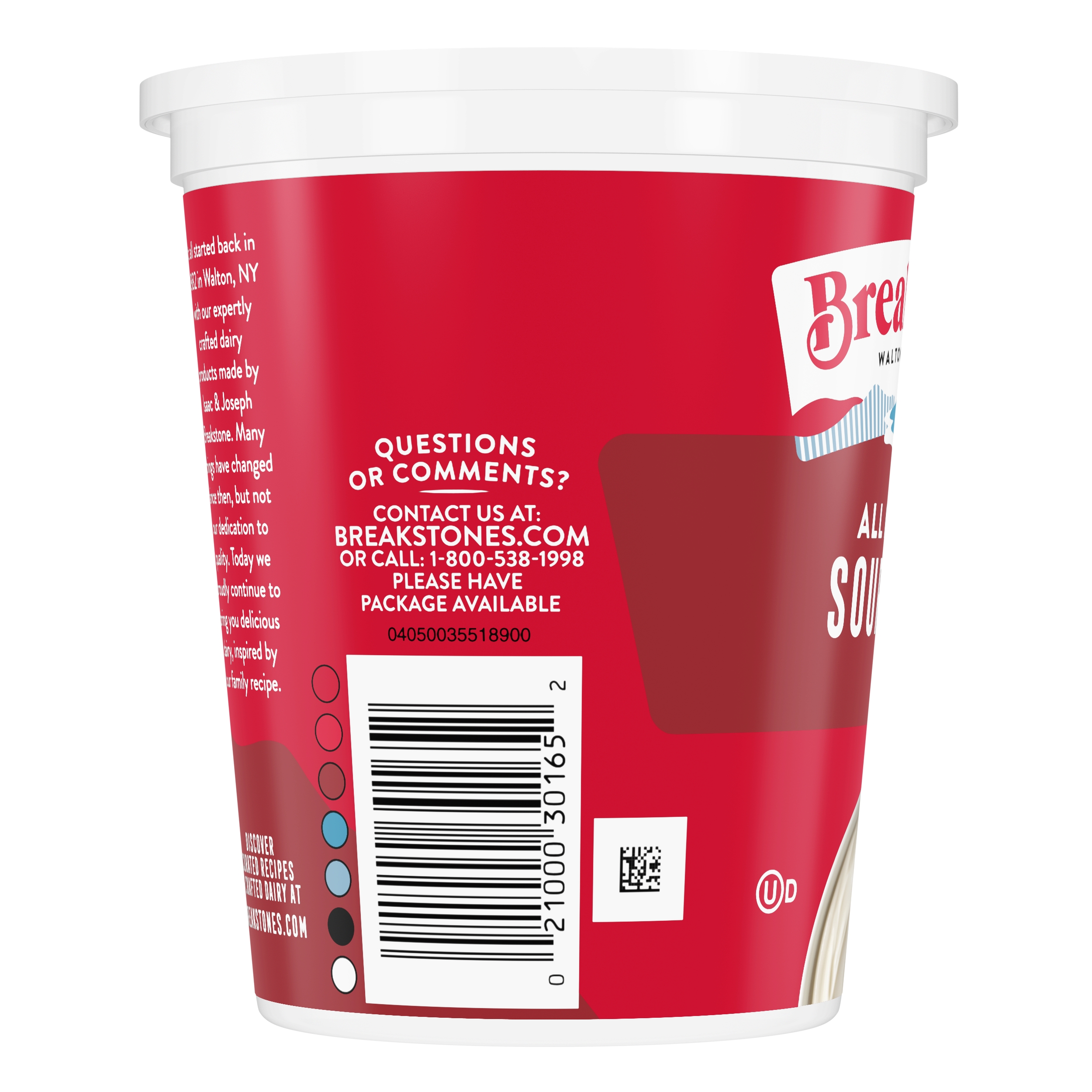 | Marketing Message | Breakstone’s All Natural Sour Cream is delicious, creamy, and versatile. Explore cooking options using Breakstone’s sour cream for a french onion dip or sauces. Or, use it for condiments in a variety of dishes like a loaded baked potato. With over 140 years of heritage, Breakstone’s pays tribute to cultured dairy by bringing delicious high-quality dairy to your home. |