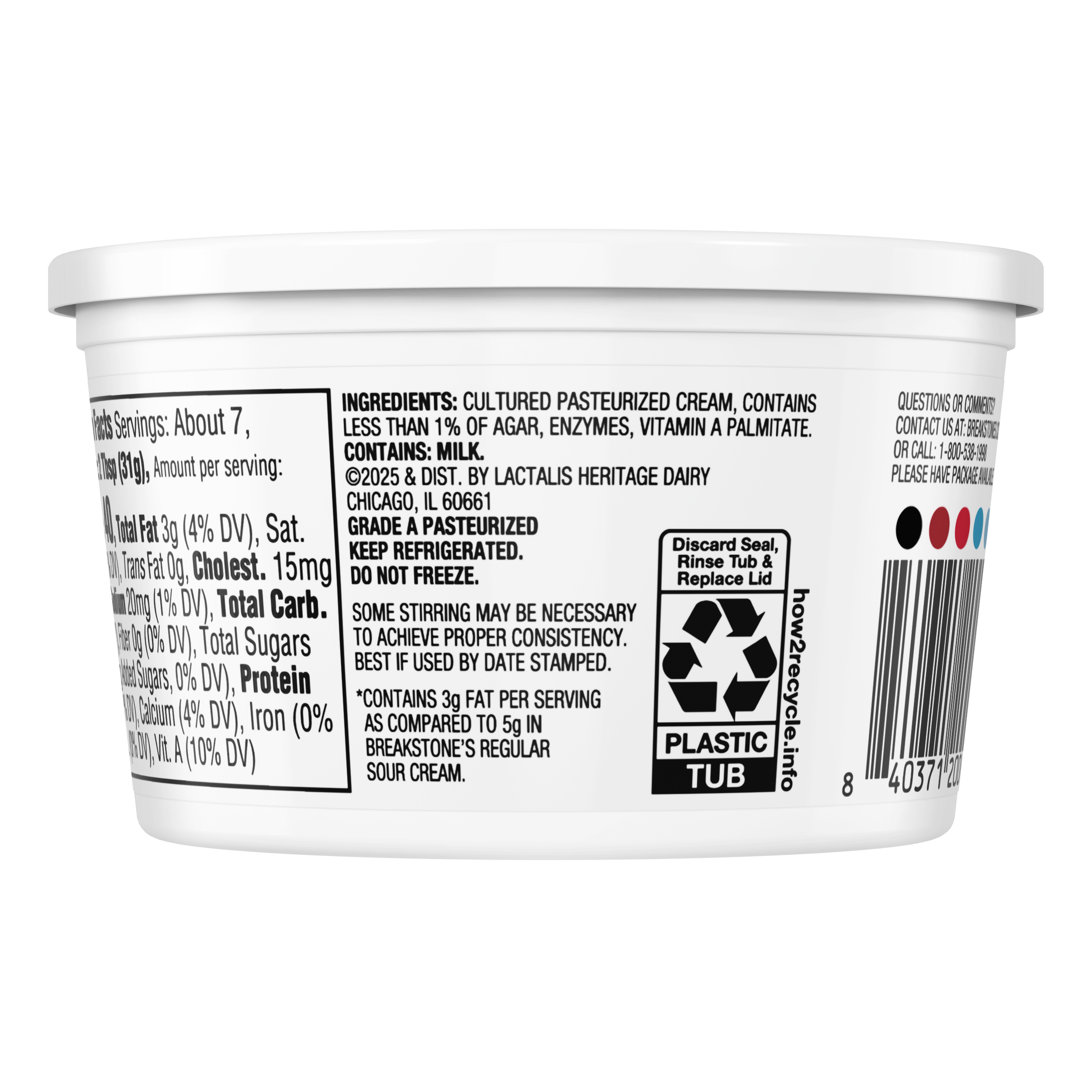 | Marketing Message | Breakstone’s Reduced Fat Sour Cream is delicious, creamy, and versatile. Explore cooking options using Breakstone’s sour cream for a french onion dip, sauces and salad dressing. Or, use it for condiments in a variety of dishes like tacos or a baked potato. With over 140 years of heritage, Breakstone’s pays tribute to cultured dairy by bringing delicious high-quality dairy to your home. |