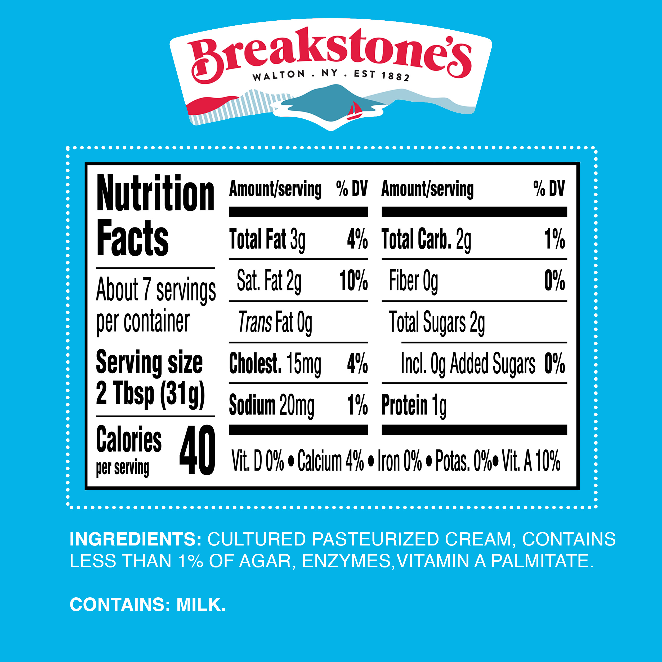 | Feature Bullet 5 | Breakstone’s is a heritage brand established in 1882 in Walton NY known for delicious dairy products |