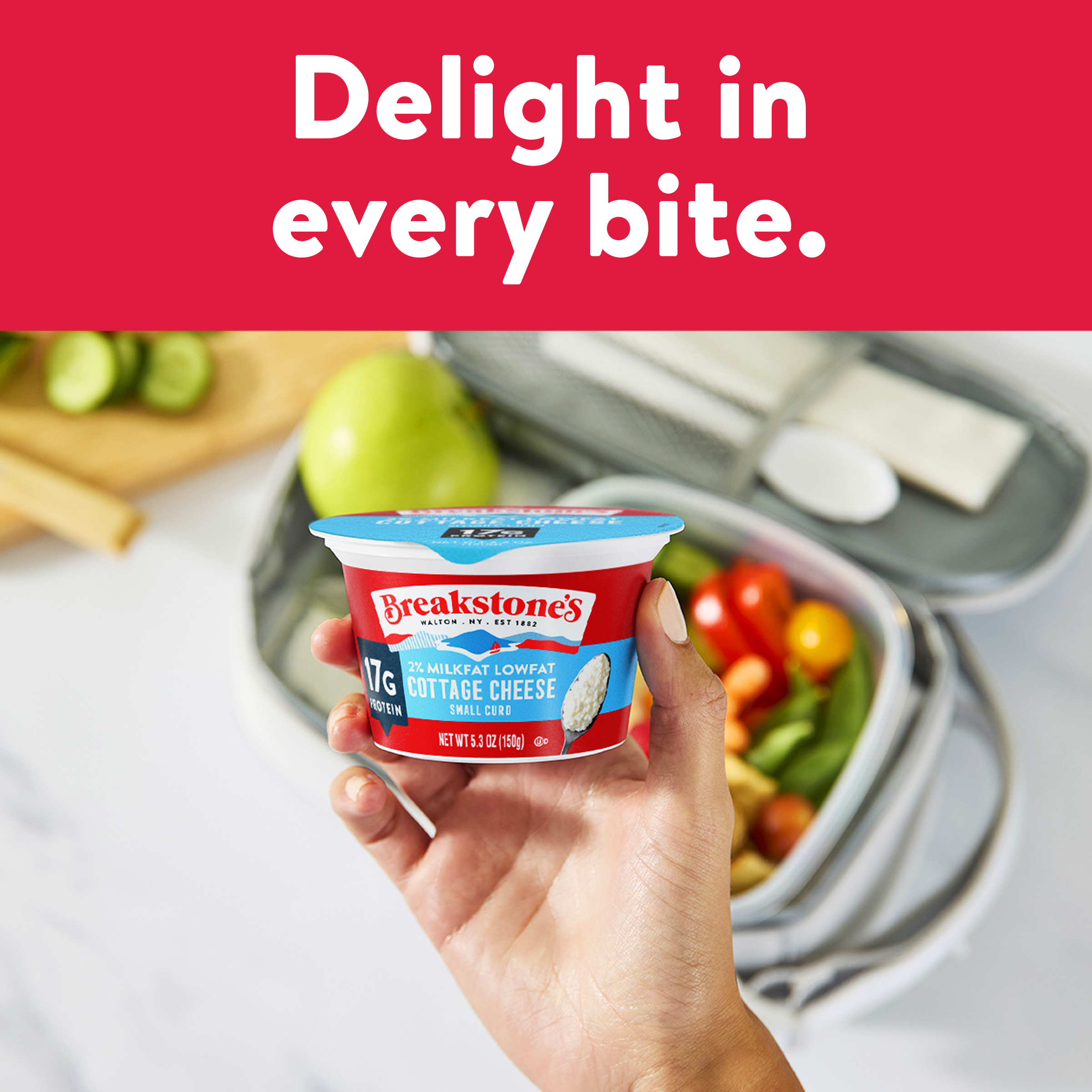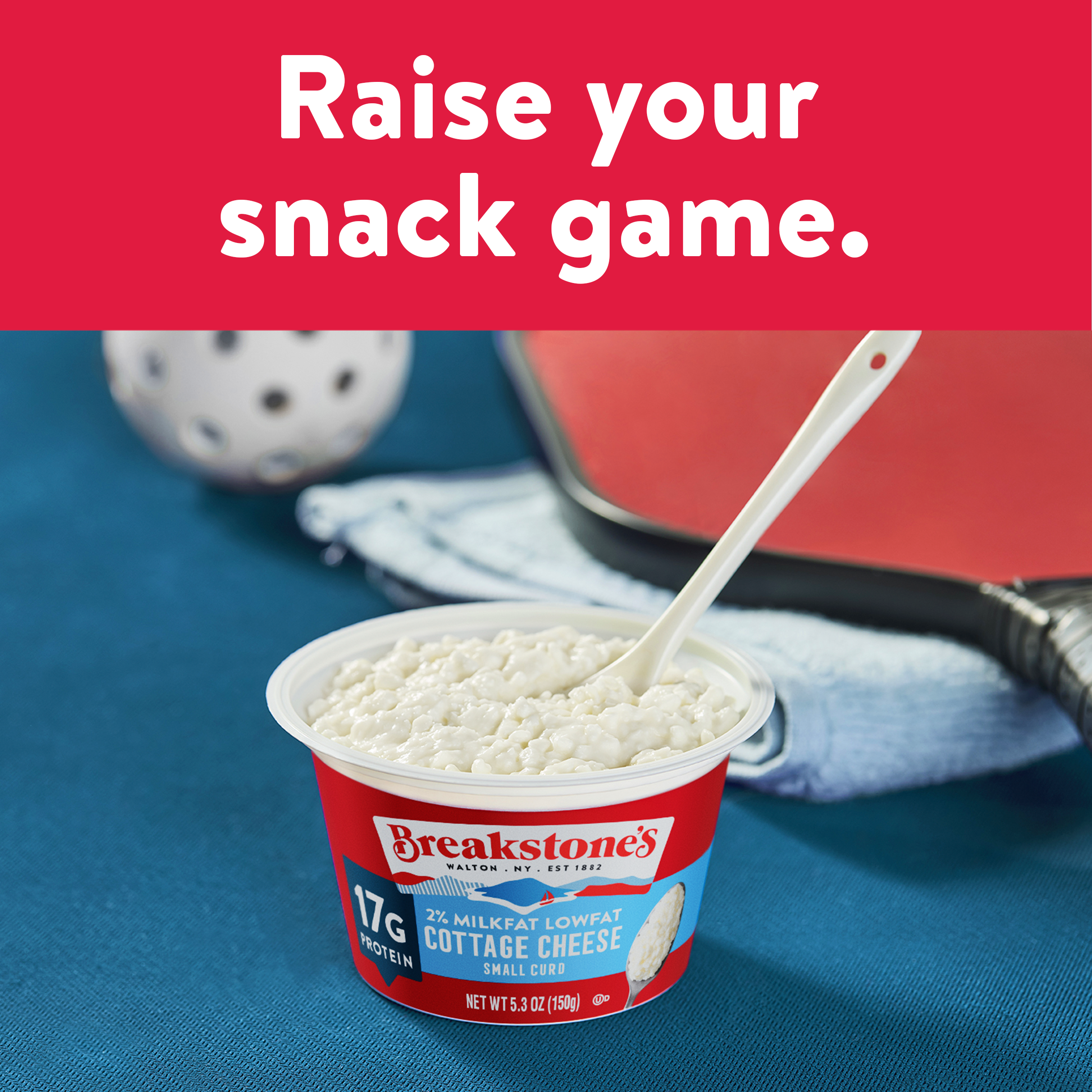 | Marketing Message | Breakstone’s Single Serve Low Fat, small curd Cottage Cheese with 2% Milkfat is delicious, creamy, and packed with protein. Enjoyed as a protein snack for breakfast, lunch, or as a work out snack, Breakstone’s cottage cheese cups are extremely versatile. With over 140 years of heritage, Breakstone’s pays tribute to cultured dairy by bringing delicious high-quality dairy to your home. |