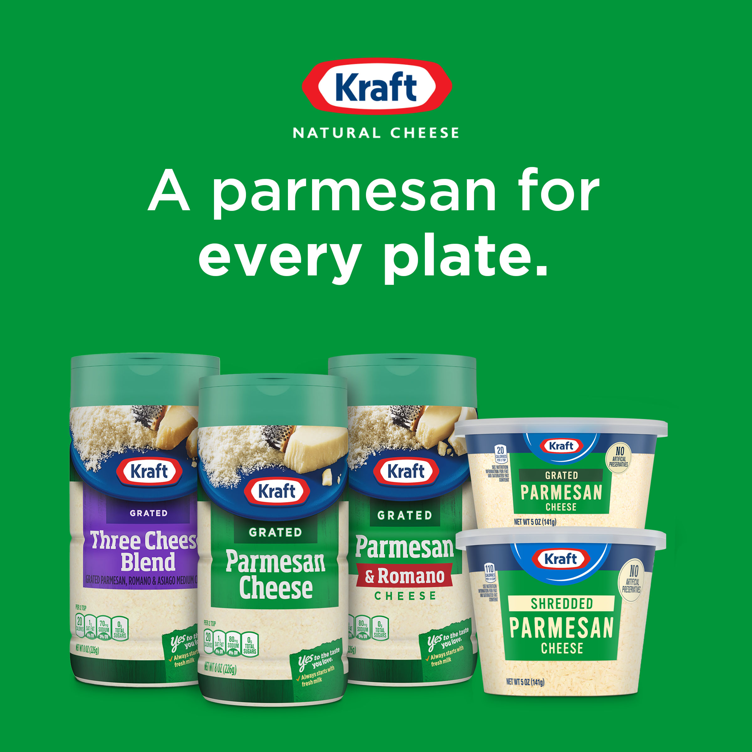 | Feature Bullet 2 | Kraft Grated Parmesan Cheese is made with premium quality milk |