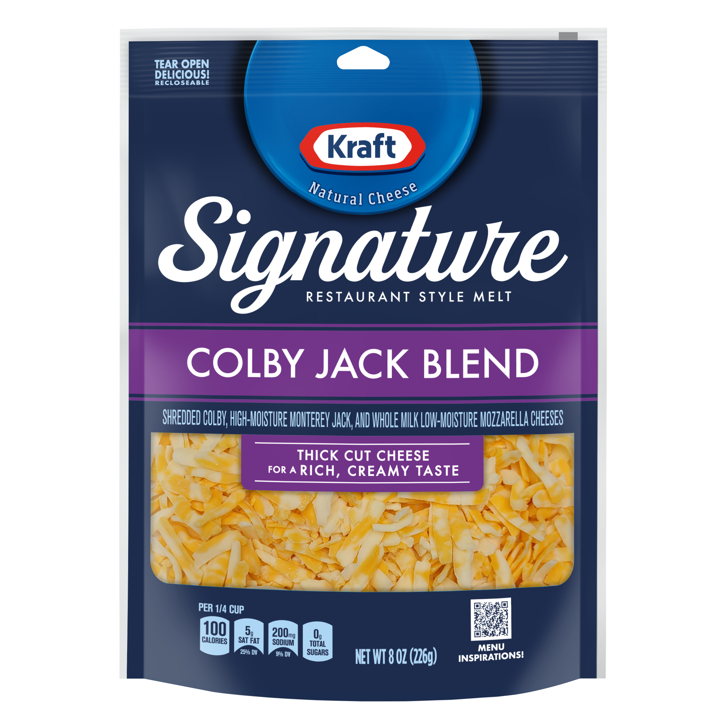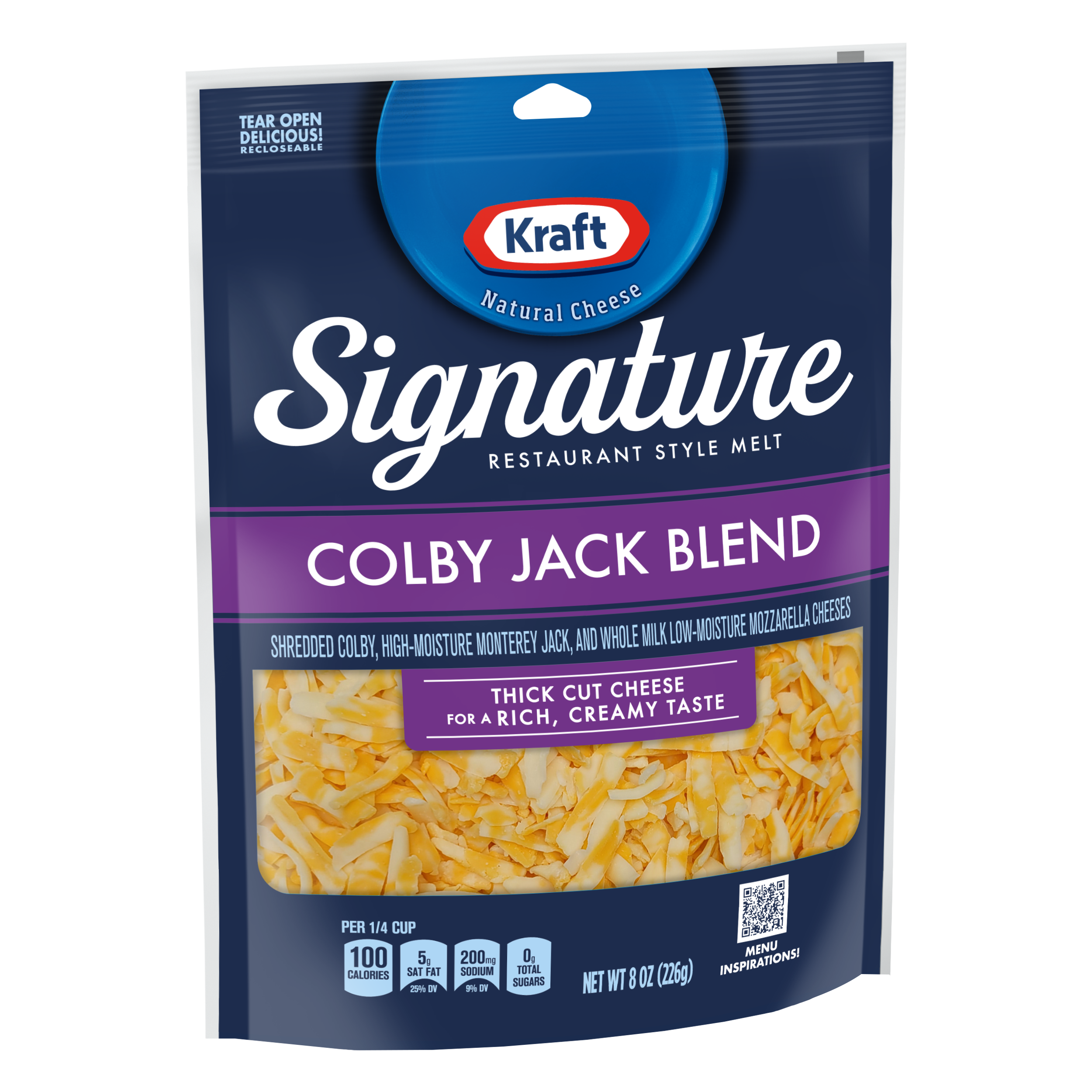 | Displayed Product Name (Short Title) | Kraft Signature Thick Shreds Colby Blend Cheese 8 oz Bag |