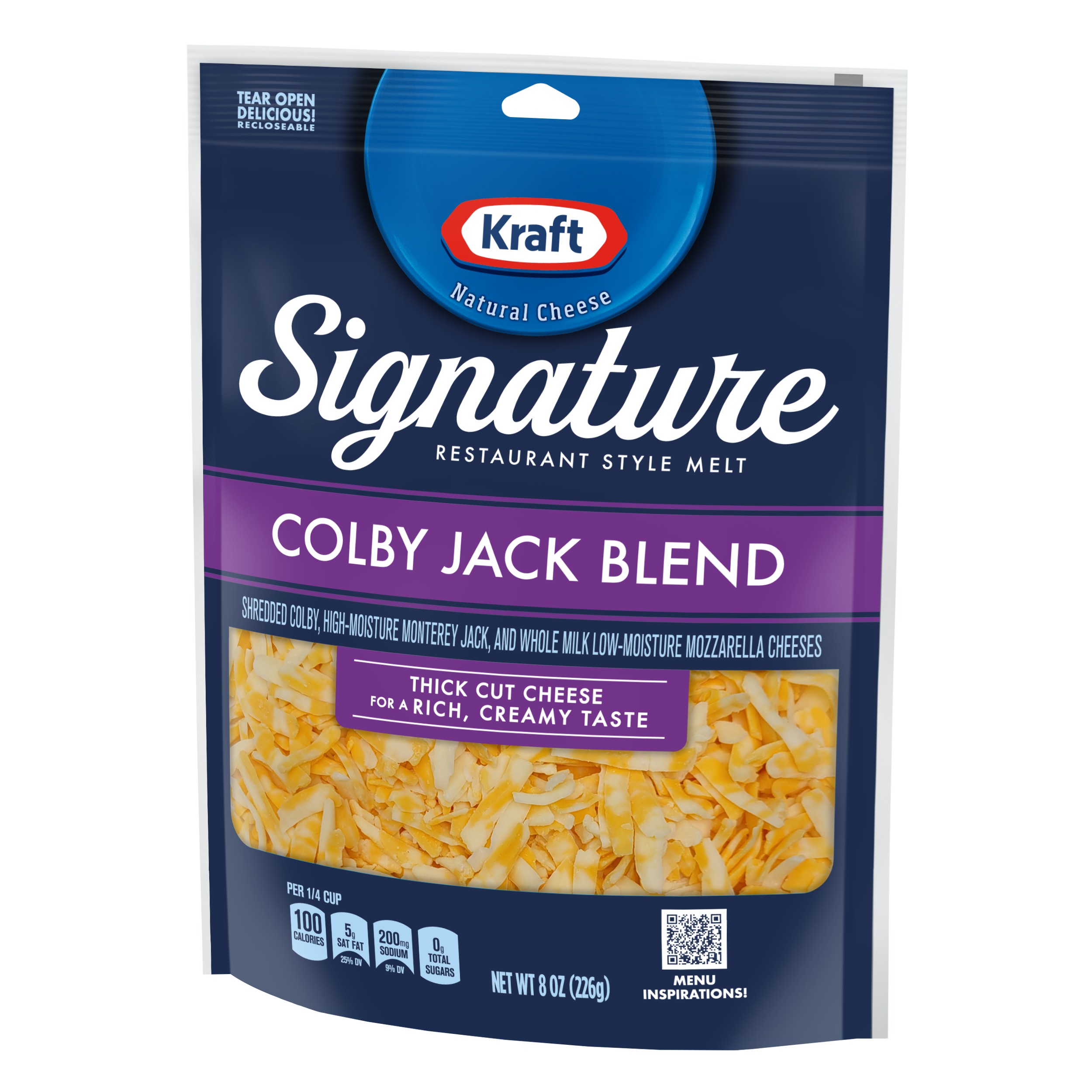 | Long Product Description | It’s never been easier to create restaurant-quality meals in your home with new Kraft Signature Colby Blend. The secret behind Kraft Signature shreds is a delicious, restaurant style cheese blended with a thicker cut of your favorite Kraft Natural Cheese. When you dine in together with Kraft Signature Colby Blend, you get amazing melt, exceptional coverage, and rich, creamy flavor that puts the “wow” in all your cheesy dishes without the extra effort! Since 1904, the Kraft brand has been trusted and adored by cheese lovers across the country. And new Kraft Signature shreds are the latest innovation that people can't wait to get their hands on. The flavorful combination of cheeses delivers a meltin-your mouth taste experience that elevates your cherished Colby dishes to the peak of flavor. And you won't believe the stretch! No matter what your family is craving, Kraft Signature Colby Blend brings out the yum in every one of your recipes—from warm and creamy baked macaroni and cheese to cheesy bursts of melty deliciousness in Colby-stuffed burgers. You can top your sizzling skillet dishes with the richness of Kraft Signature Colby Blend or give traditional pizza cheese a culinary twist when you feature this shredded cheese in your prized pie recipes. Kraft Signature shreds bring an extra burst of flavor to all your most popular meals with such perfect coverage and magnificent melt, you’ll think they were made in a restaurant! Now, you can create memorable and satisfying restaurant-style meals in your home—with no reservations. Whether you’re making cheesy breakfast pizzas, hearty potato casseroles, rich pasta dishes, or sweet-and-savory Colby crostatas, there’s a Kraft Signature Colby Blend recipe to please everyone’s palate. With Kraft Signature shreds, you’ll get five-star ratings for creating the ultimate in melty, mouthwatering dishes that keep them coming back for more. Look for all three varieties of Kraft Signature shreds at your favorite grocery stores. There’s never been a simpler way to take your dishes to the next level! |