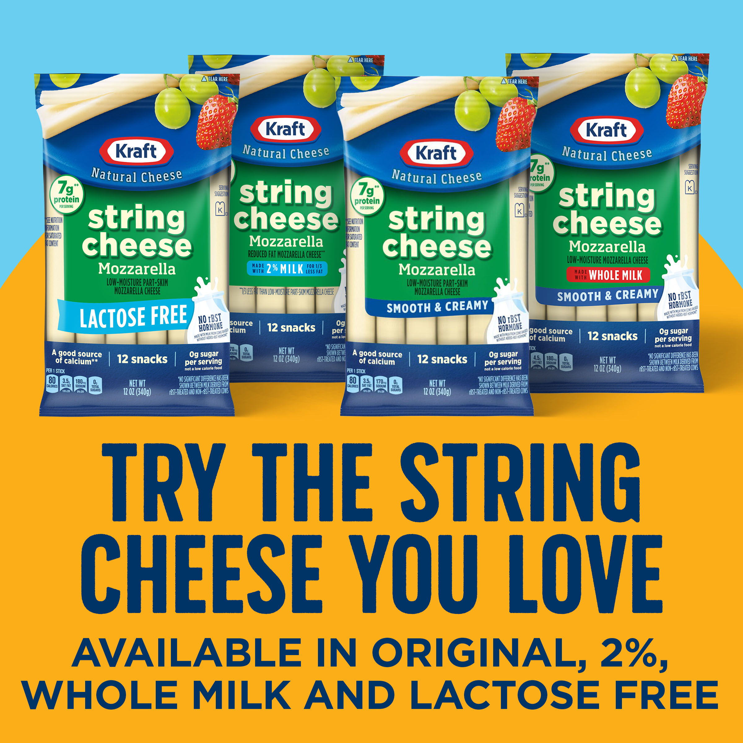 | Feature Bullet 1 | One 12 ct pack of Kraft Natural Mozzarella String Cheese Sticks |
