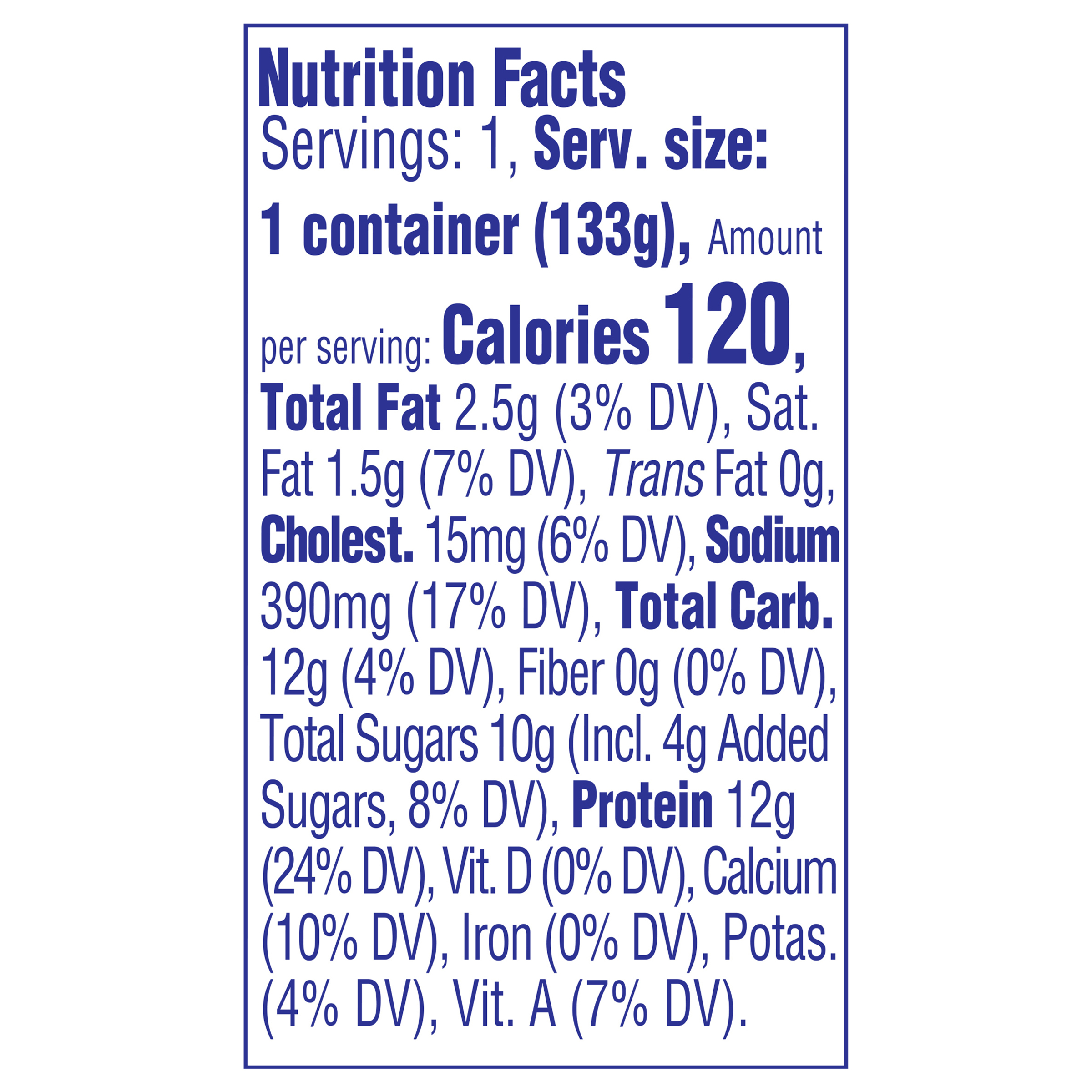 Salsify Product Id 00049900000321 Trade Item Unit Descriptor (Product Type) (VV) Ea -- Each UPC 10 4990000032 UPC 11 (computed) 49900000321 zComputed_UPC 049900000321 UPC 13 0004990000032 Displayed Product Name Knudsen Blueberry Low Fat Cottage Doubles 4.7 oz Cup Displayed Product Name - Long Knudsen Cottage Doubles Low Fat Cottage Cheese & Blueberry Topping 2% Milkfat, 4.7 oz Cup Long Product Description Knudsen Cottage Doubles 2% Milkfat Low Fat Cottage Cheese & Blueberry Topping is delicious, creamy, and packed with protein. Knudsen cottage cheese is consistently delicious. Its rich taste and creamy texture have been delighting families for generations. Each serving of Knudsen 2% Milkfat Low Fat Cottage Cheese & Blueberry Topping has 12g of protein and 120 calories, making it an excellent source of protein. Top your cottage cheese with blueberry for a delicious, fruity flavor that compliments the cottage cheese. These cottage cheese cups are easy to take on the go, providing a convenient snack that can be enjoyed on its own, after school or a workout, or as a side dish for lunch. No matter the occasion, Knudsen Cottage Doubles can make your day a little easier thanks to the variety of uses it has. Available in a 4.7 oz cup, Knudsen 2% Milkfat Low Fat Cottage Cheese & Blueberry Topping can be stored in the fridge. Generation after generation, Knudsen proudly continues the tradition of dairy expertise to offer you consistently delicious ingredients for memorable mealtimes. Marketing Message Knudsen Cottage Doubles 2% Milkfat Low Fat Cottage Cheese & Blueberry Topping is creamy and delicious. These cottage cheese cups are easy to take on the go, providing a snack that can be enjoyed on its own or as a side dish for lunch. Generation after generation, Knudsen proudly continues the tradition of dairy expertise to offer you consistently delicious ingredients for memorable mealtimes. Feature Bullet 1 One 4.7 oz cup of Knudsen Cottage Doubles 2% Milkfat Low Fat Cottage Cheese & Blueberry Topping Feature Bullet 2 Cottage cheese curds mixed with blueberry for a delicious, fruity flavored dairy snack Feature Bullet 3 Rich in protein, each serving of Knudsen 2% Milkfat Low Fat Cottage Cheese & Blueberry Topping has 12g protein and 120 calories Feature Bullet 4 Enjoy these low fat cottage cheese snacks for breakfast, on the go, in your lunch box, or after a workout as a quick snack Feature Bullet 5 Since 1919, Knudsen proudly continues the tradition of dairy expertise to offer you consistently delicious ingredients for memorable mealtimes Depth 3.732 Depth UOM IN Height 2.13 Height UOM IN Width 3.732 Width UOM IN Gross Weight 5.136 Gross Weight UOM OZ Net Weight 4.704 Net Weight UOM OZ Net Content 1 4.7 Net Content 1 UOM Ounce Net Content 2 UOM Gram (g) Volume 0.017 Volume UOM FTQ Maximum Temperature 45.00 Maximum Temperature UOM FAH -- Degree Fahrenheit Minimum Temperature 35.00 Minimum Temperature UOM FAH -- Degree Fahrenheit Min Product Lifespan from Production (Days) 70 Count Per Pack 1 Flavor Blueberry Brand Knudsen Displayed Product Name Knudsen Blueberry Low Fat Cottage Doubles 4.7 oz Cup Division LHD Format Cottage Doubles Status Existing UPC 049900000321 GTIN (Case) 10049900000328 Size (Individual Units) 4.7 SAP Item Name 4.7Z KNUD CTG CHS DBL BLU BRY 12 Servings Per Package 1 Number of Selling Units per Case 1 Consumer Storage Instructions Keep Refrigerated Ingredient Statement Ingredients: Lowfat Cottage Cheese (Cultured Pasteurized Grade A Skim Milk And Cream, Tapioca Starc, Salt, Vitamin A Palmitate), Blueberry Topping (Water, Blueberries, Sugar, Modified Food Starch, Natural Flavor, Citric Acid, Potassium Sorbate [Preservati GMO Free true Kosher Yes Guaranteed Shelf Life (Days) 40 Salsify Product Id 00049900000321