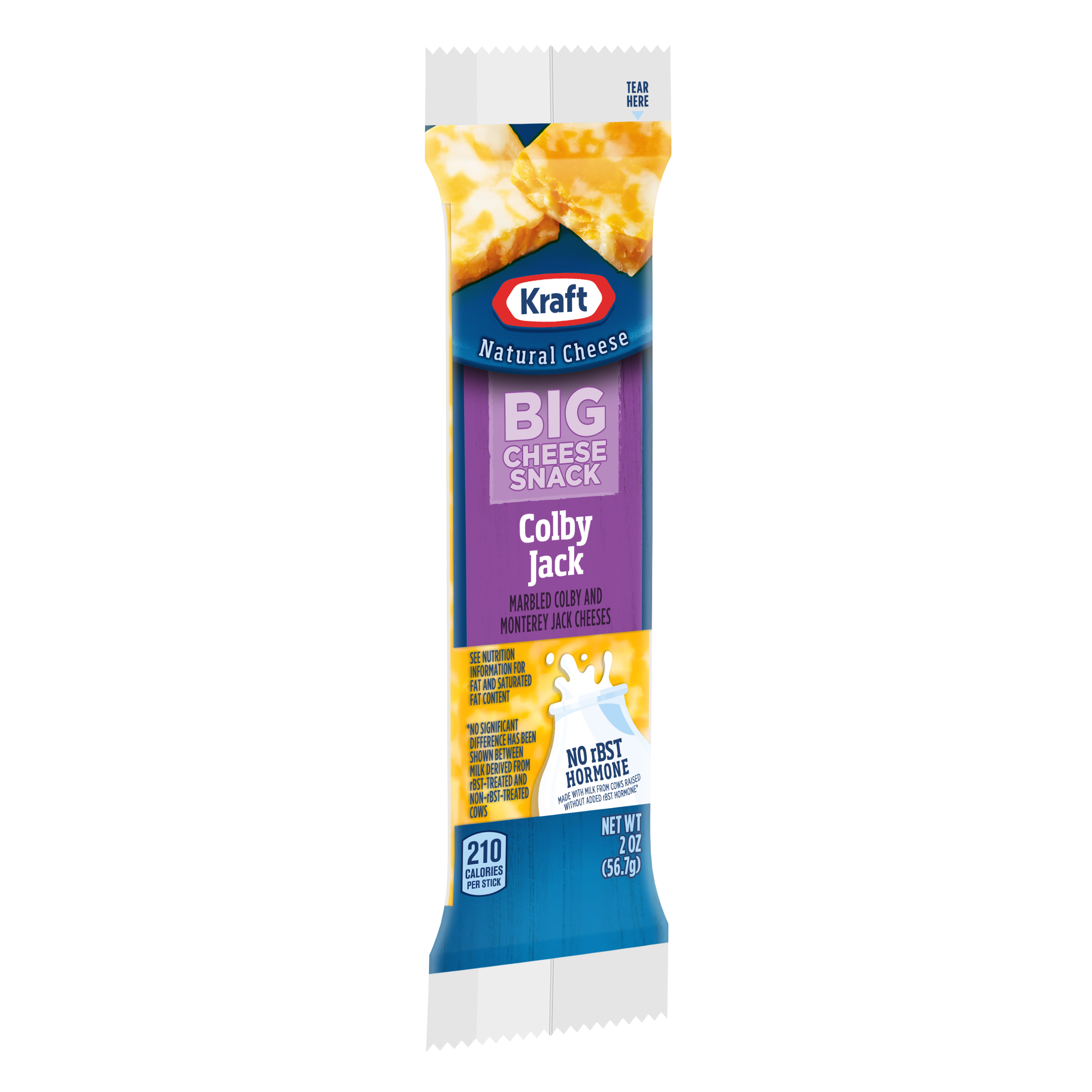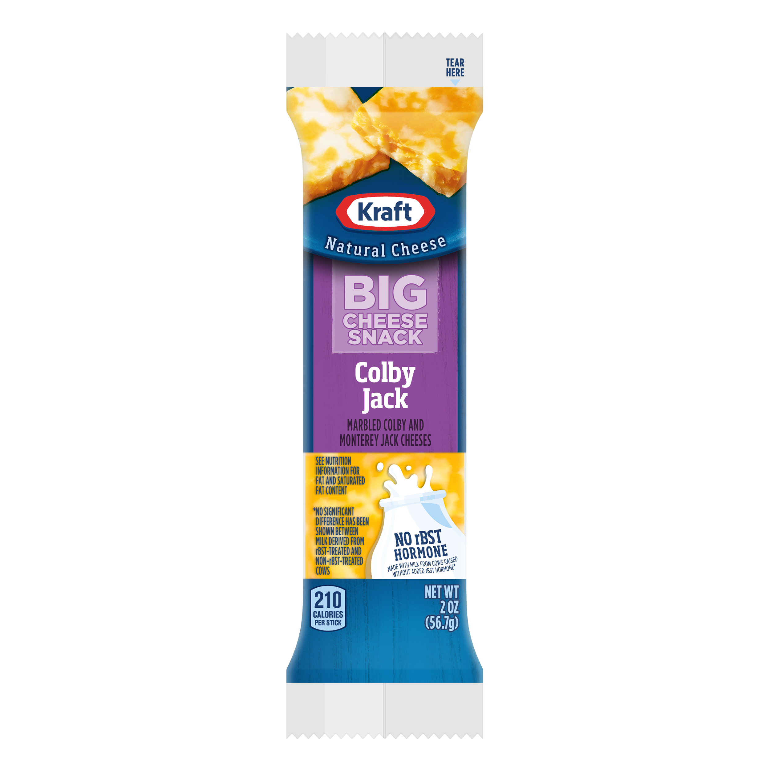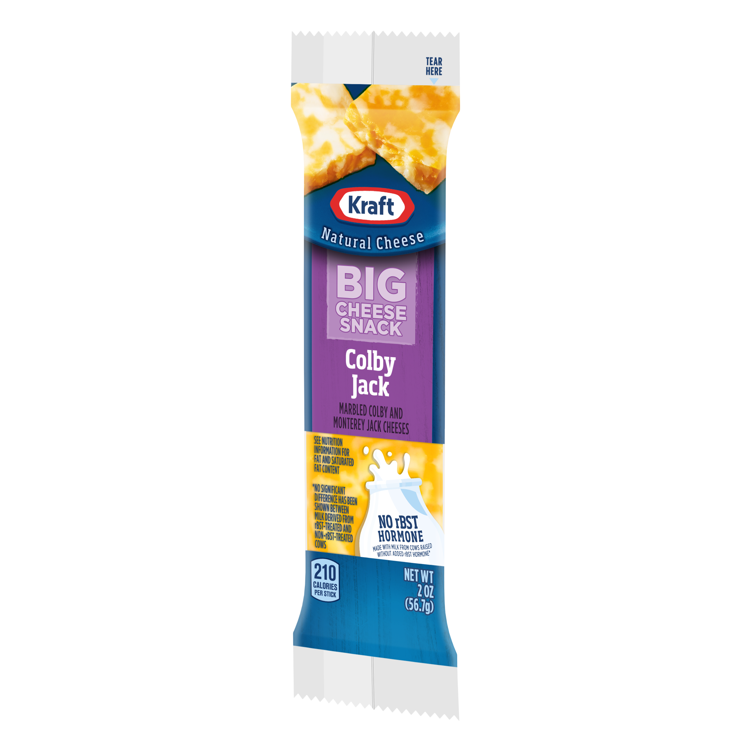 - This delicious 2z Kraft Colby & Monterey Jack BIG Cheese Snack is prepared with quality ingredients that are delicious. This cheese snack has a flavorful taste the whole family will enjoy and helps to satisfy your hunger between meals. Popular with adults and children alike, this cheese snack is a perfect grab and go snack.