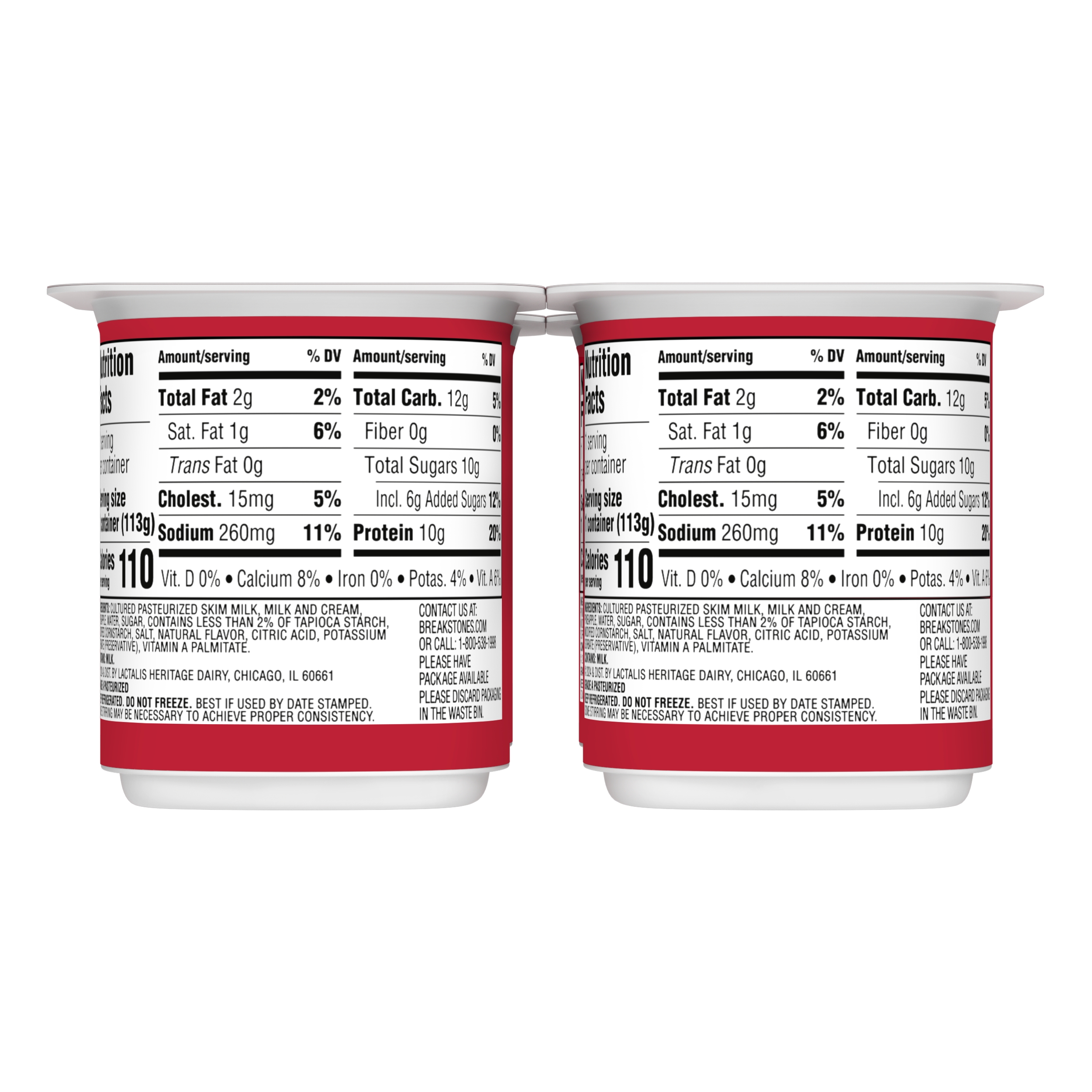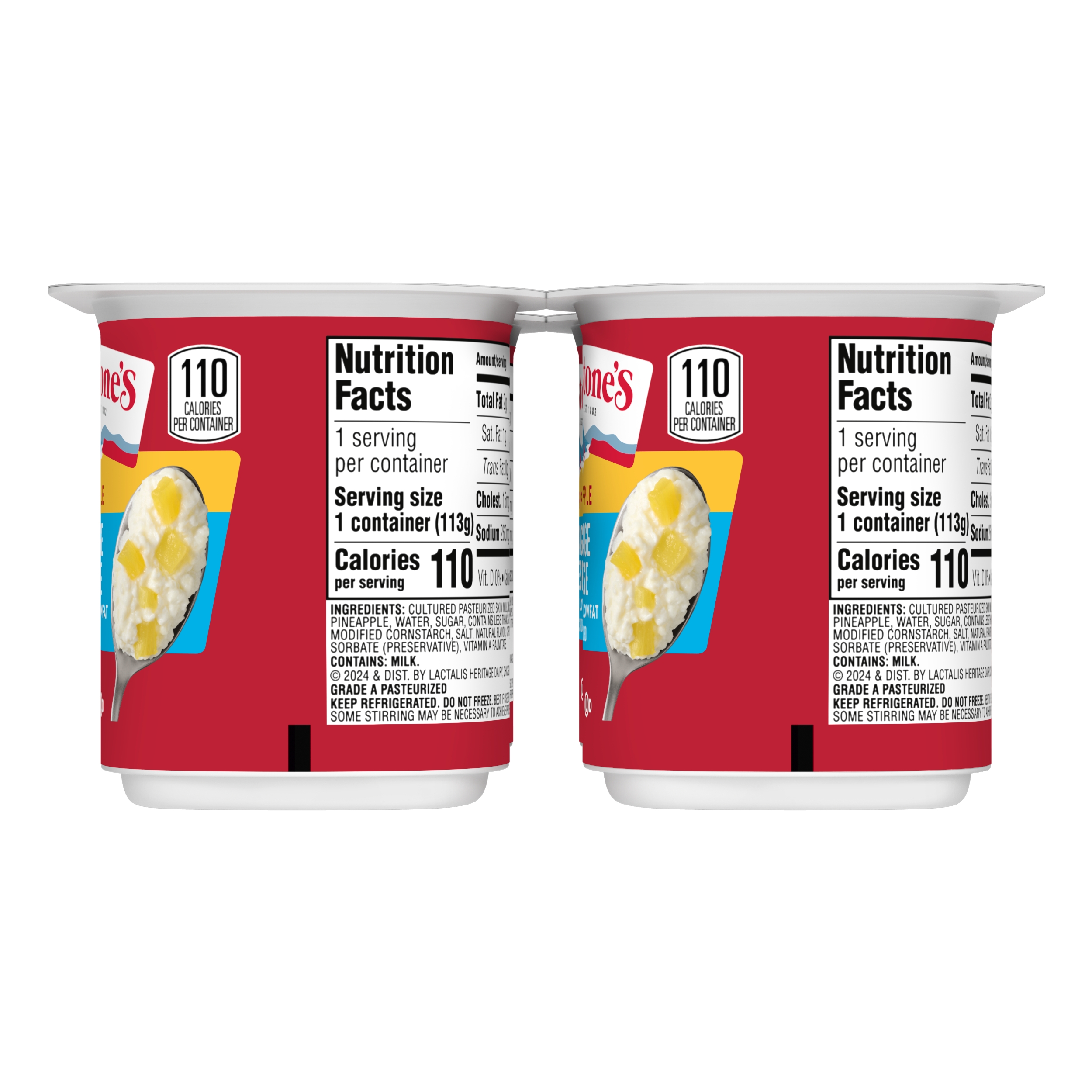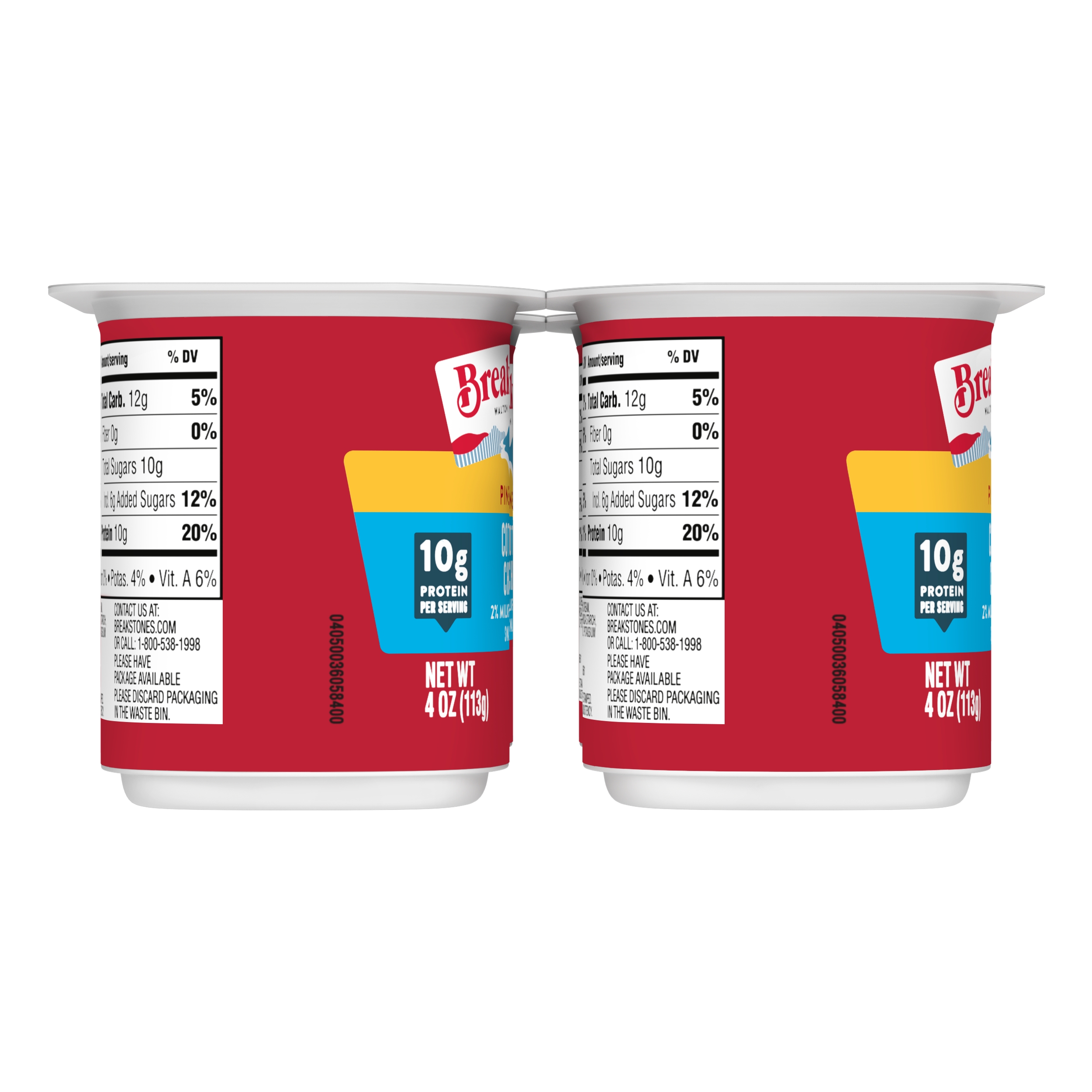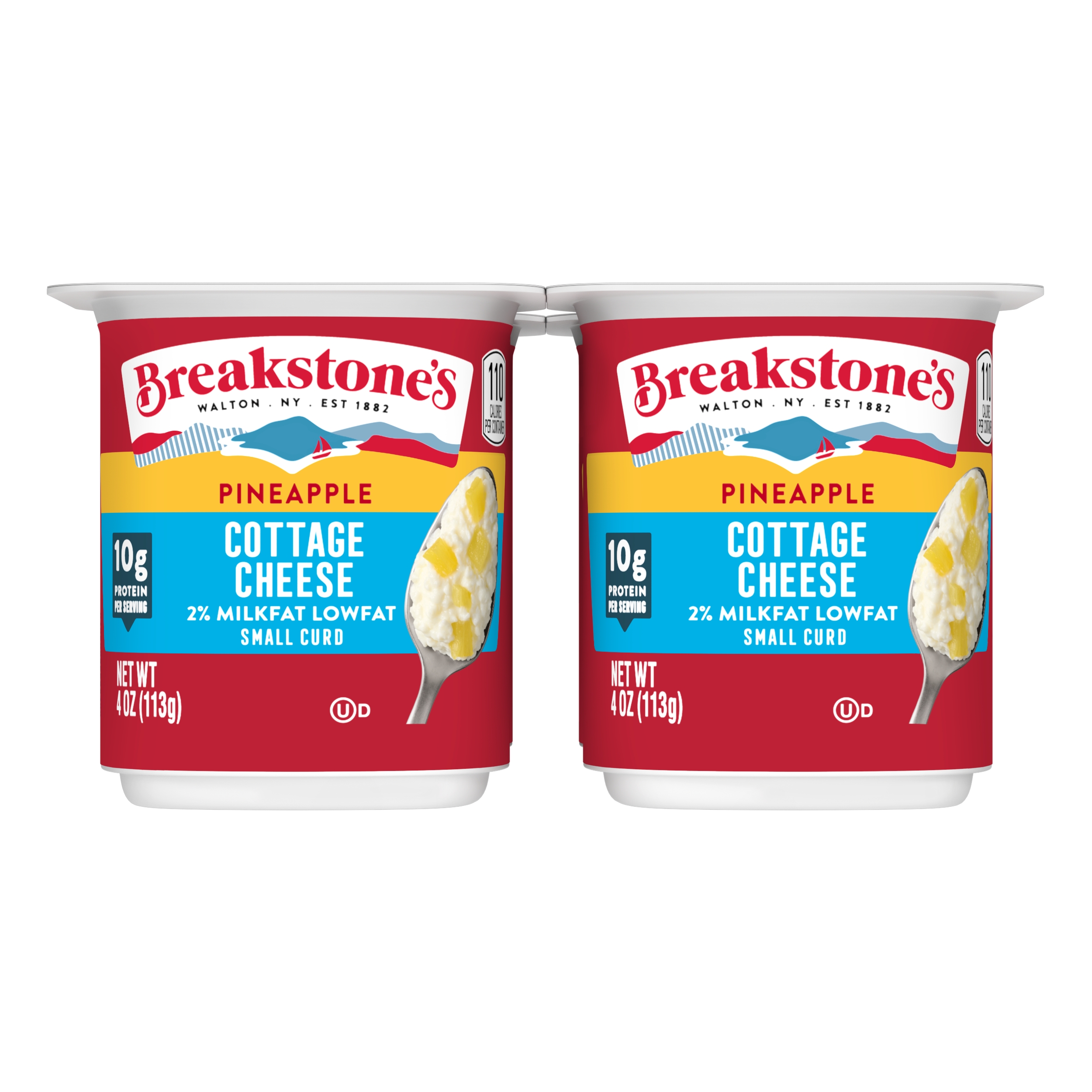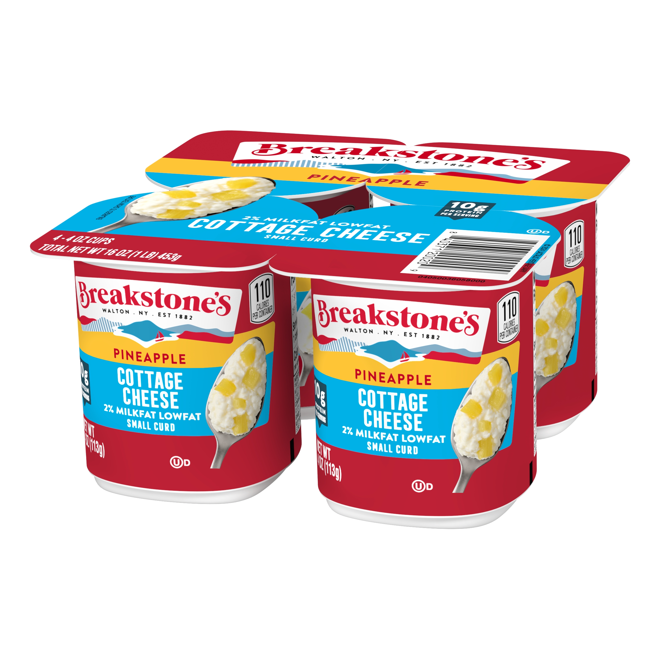 | Marketing Message | Breakstone’s Small Curd Cottage Cheese with Pineapple and 2% Milkfat is delicious, creamy. These lowfat cottage cheese cups are easy to take on the go, providing a convenient snack that can enjoyed on its own or as a side dish for lunch. With over 140 years of heritage, Breakstone’s pays tribute to cultured dairy by bringing delicious high-quality dairy to your home. |