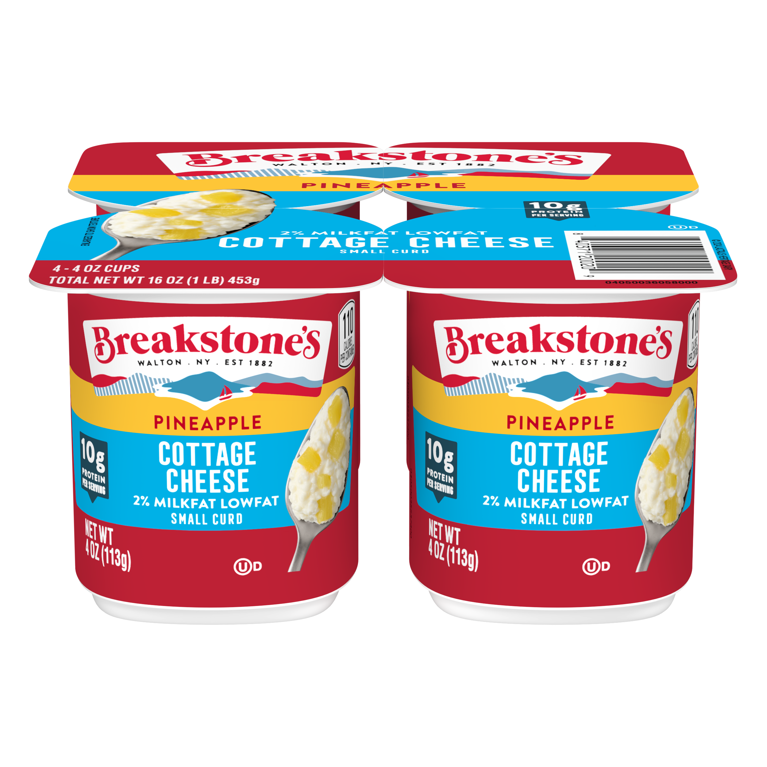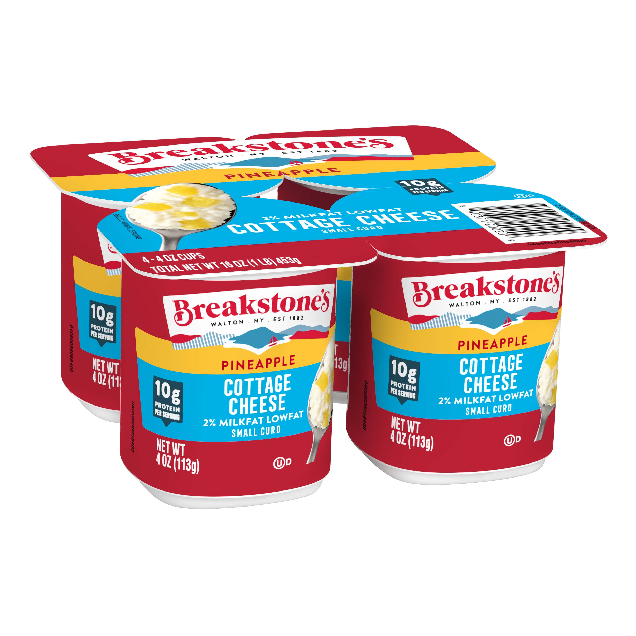 | Displayed Product Name (Short Title) | Breakstone's Lowfat Small Curd Cottage Cheese with Pineapple and 2% Milkfat, 4 oz Cup, 4 Ct |