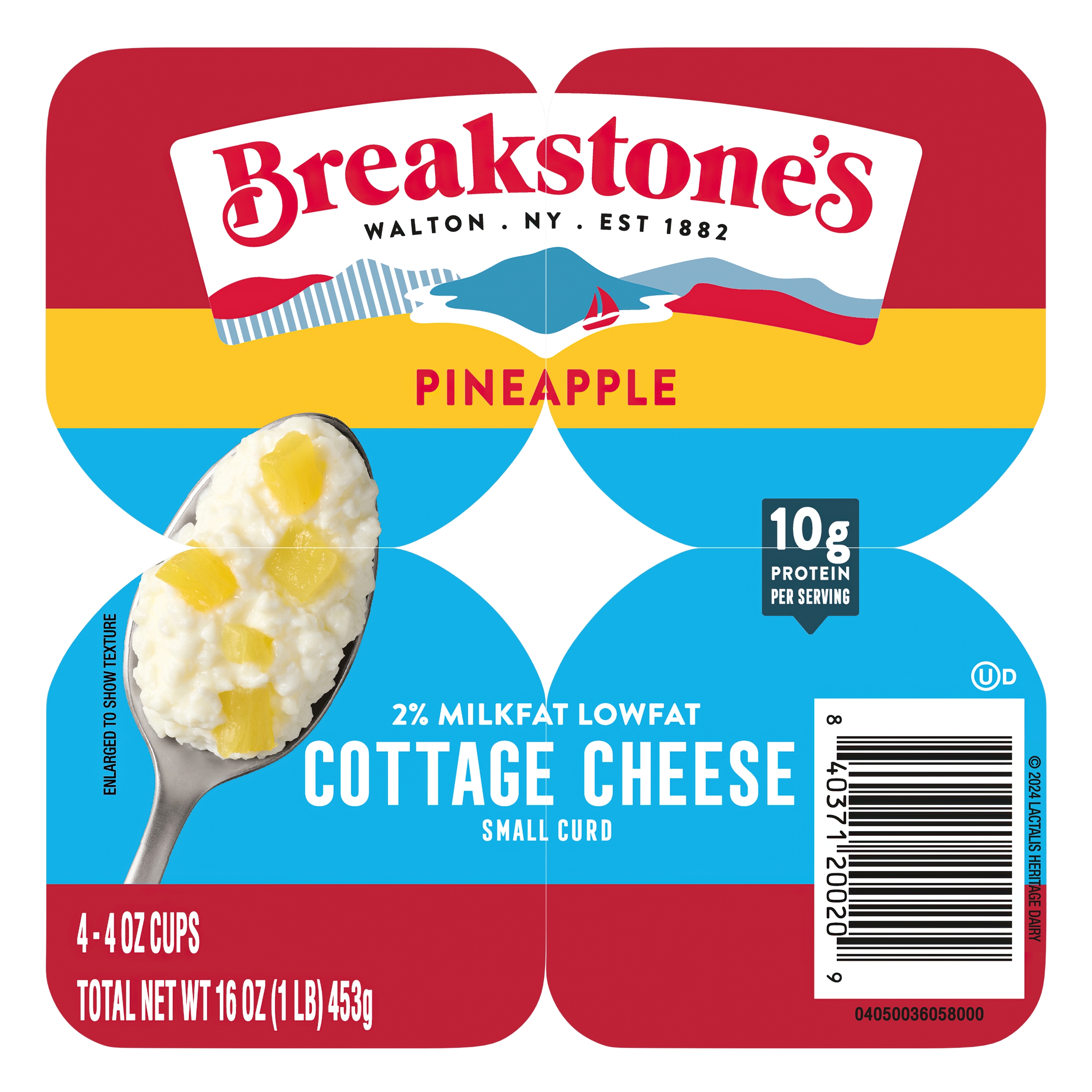 | Displayed Product Name (Long Title) | Breakstone's Lowfat Small Curd Cottage Cheese with Pineapple and 2% Milkfat, 4 oz Cup, 4 Ct |