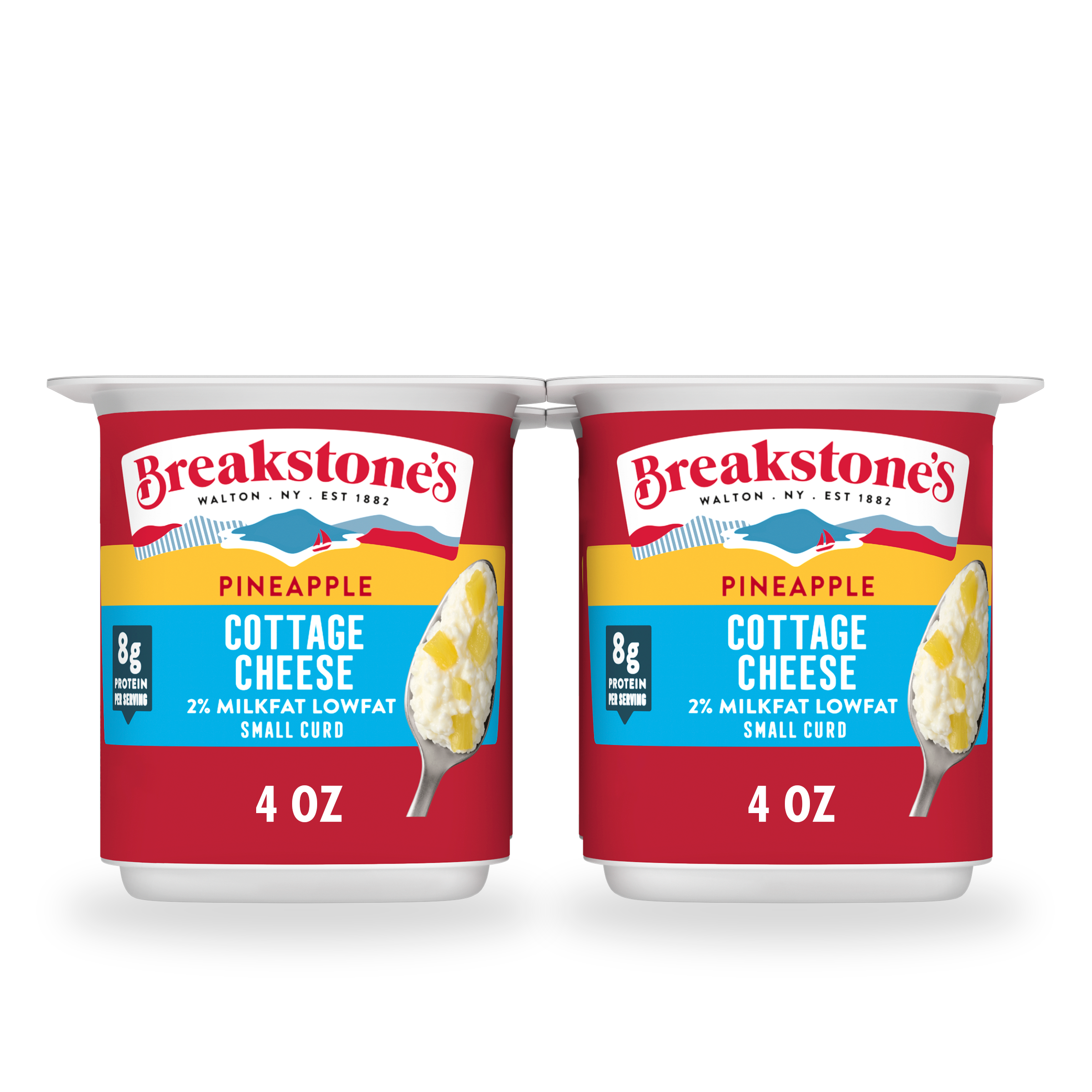 | Long Product Description | Breakstone's Small Curd Cottage Cheese with Pineapple and 2% Milkfat is delicious, creamy. Since it’s origin in 1882 in Walton New York, each cup of Breakstone’s cottage cheese is a celebration of craftsmanship and expertise evident in hand cut curds wrapped in a rich dressing for a fresh and delectable dairy experience, with pineapple for delicious fruity flavor. Each serving of Breakstone's Lowfat Cottage Cheese with Pineapple cups has 8g of protein and only 100 calories, making it a better choice for your snacks. This pack features snack cups that are easy to take on the go, providing a convenient snack that can enjoyed on its own, as a side dish for lunch, or as a snack after school or a workout. No matter the occasion, Breakstone's cottage cheese cups can make your day a little easier thanks to the variety of uses it has in your day to day. Available in a 4.7oz cup, Breakstone’s Lowfat Small Curd Cottage Cheese with Pineapple can be stored in the fridge. With over 140 years of heritage, Breakstone’s pays tribute to cultured dairy by bringing delicious high-quality dairy to your home. |