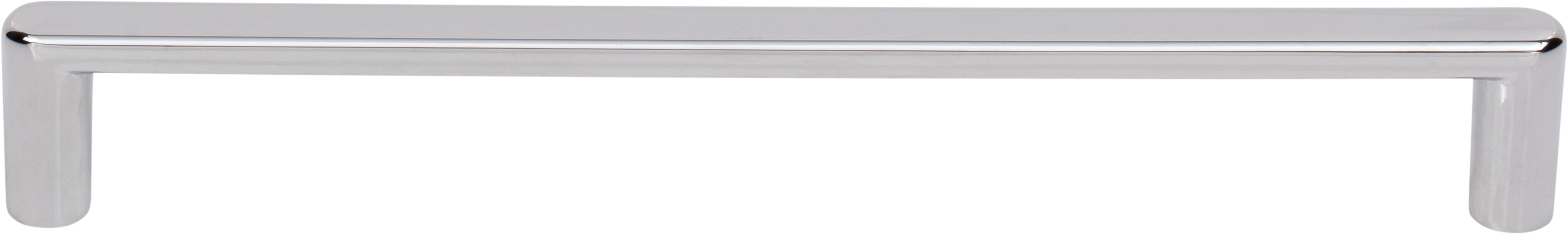 Finish Polished Chrome Product Description 8" Overall Length Cabinet Pull. Holes are 192 mm center-to-center. Item Center to Center 192 mm Item Overall Length 8" Item Width 7/16" Item Projection 1-1/8" Clearance 7/8"