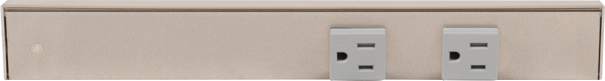 Finish Satin Nickel Feature 1 Angled design provides easy access to outlets and tucks up under cabinet to disappear at eye level Feature 2 Very compact 1-1/2" profile Feature 3 UL listed fixtures featuring 20-amp tamper-resistant single receptacles that meet code in most markets Feature 4 Standard lengths fit standard cabinet widths for easy ordering Feature 5 Assembled in USA Feature 6 Ships assembled and ready to install, mounting hardware included Feature 7 Durable aluminum profile with a quality powder-coated finish is durable, scratch-resistant, rust-resistant Item Overall Length 12" Item Width 1-11/16" Item Height 1-1/2"