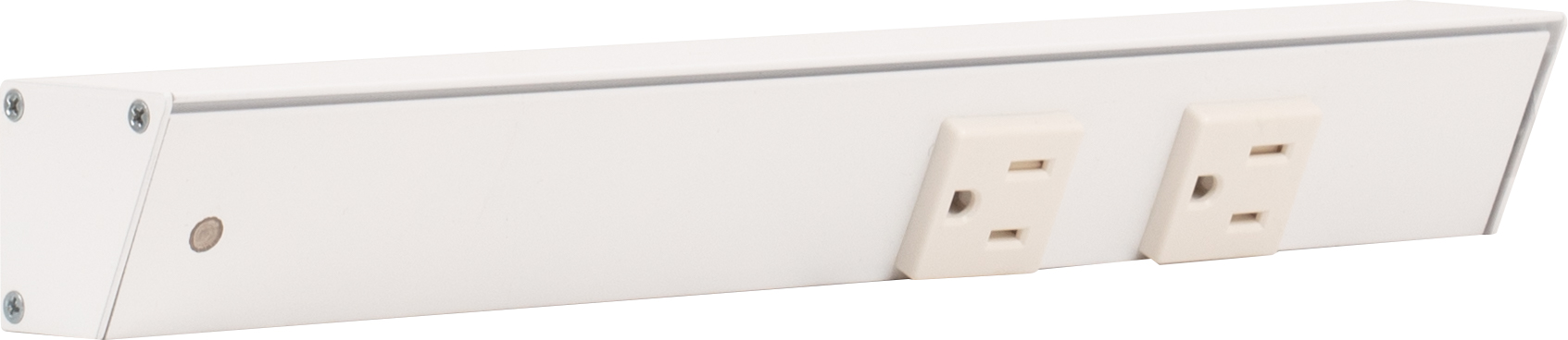 Finish White Feature 1 Angled design provides easy access to outlets and tucks up under cabinet to disappear at eye level Feature 2 Very compact 1-1/2" profile Feature 3 UL listed fixtures featuring 20-amp tamper-resistant single receptacles that meet code in most markets Feature 4 Standard lengths fit standard cabinet widths for easy ordering Feature 5 Assembled in USA Feature 6 Ships assembled and ready to install, mounting hardware included Feature 7 Durable aluminum profile with a quality powder-coated finish is durable, scratch-resistant, rust-resistant Item Overall Length 12" Item Width 1-11/16" Item Height 1-1/2"