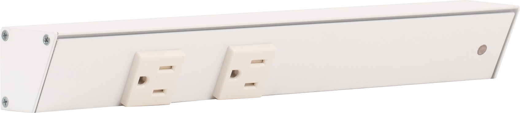 Finish White Feature 1 Angled design provides easy access to outlets and tucks up under cabinet to disappear at eye level Feature 2 Very compact 1-1/2" profile Feature 3 UL listed fixtures featuring 20-amp tamper-resistant single receptacles that meet code in most markets Feature 4 Standard lengths fit standard cabinet widths for easy ordering Feature 5 Assembled in USA Feature 6 Ships assembled and ready to install, mounting hardware included Feature 7 Durable aluminum profile with a quality powder-coated finish is durable, scratch-resistant, rust-resistant Item Overall Length 12" Item Width 1-11/16" Item Height 1-1/2"