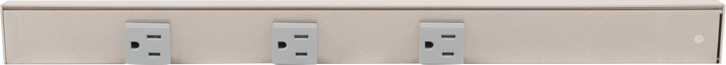 Finish Satin Nickel Feature 1 Angled design provides easy access to outlets and tucks up under cabinet to disappear at eye level Feature 2 Very compact 1-1/2" profile Feature 3 UL listed fixtures featuring 20-amp tamper-resistant single receptacles that meet code in most markets Feature 4 Standard lengths fit standard cabinet widths for easy ordering Feature 5 Assembled in USA Feature 6 Ships assembled and ready to install, mounting hardware included Feature 7 Durable aluminum profile with a quality powder-coated finish is durable, scratch-resistant, rust-resistant Item Overall Length 18" Item Width 1-11/16" Item Height 1-1/2"