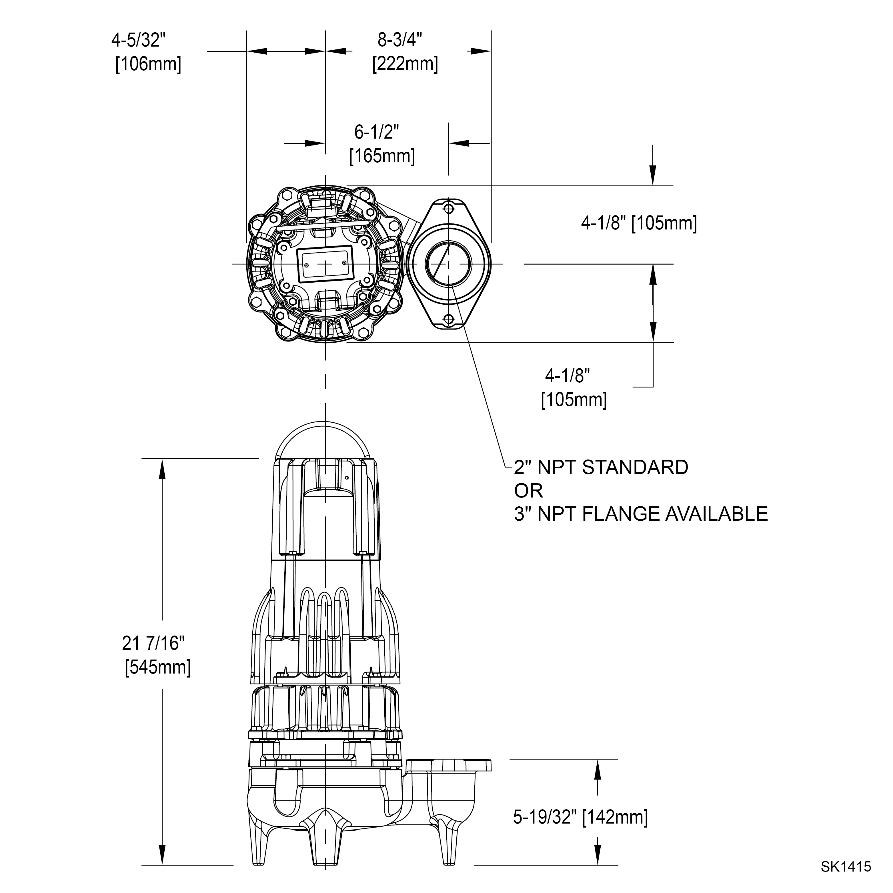 | Features and Benefits 3 | Corrosion resistant cast iron vortex impeller to allow free passage of 2" spherical solids which prevents clogging and increases reliability |
