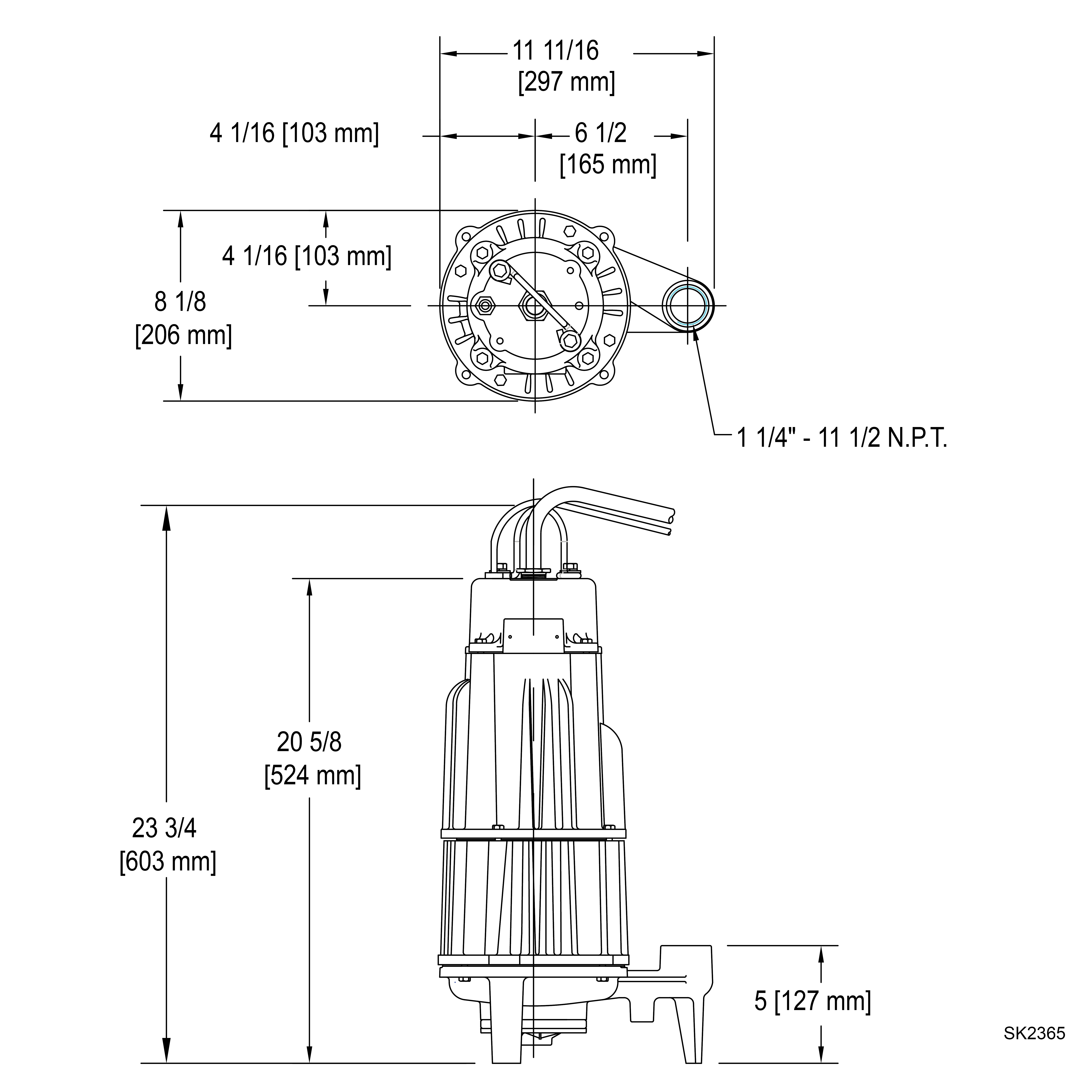 | Woocom - Description | The Shark Series® Model G841 Sewage Grinder Pump is designed to pump raw sewage in a sewage application. Solids are cut into a slurry using the industry proven "scissor like" Tri-Slice® cutter technology. This includes a rotating cutter cutting against the stationary cutter plate reducing solids down to 1/8". The 460 Volt, 2 HP, Model 841 utilizes a vortex impeller.
