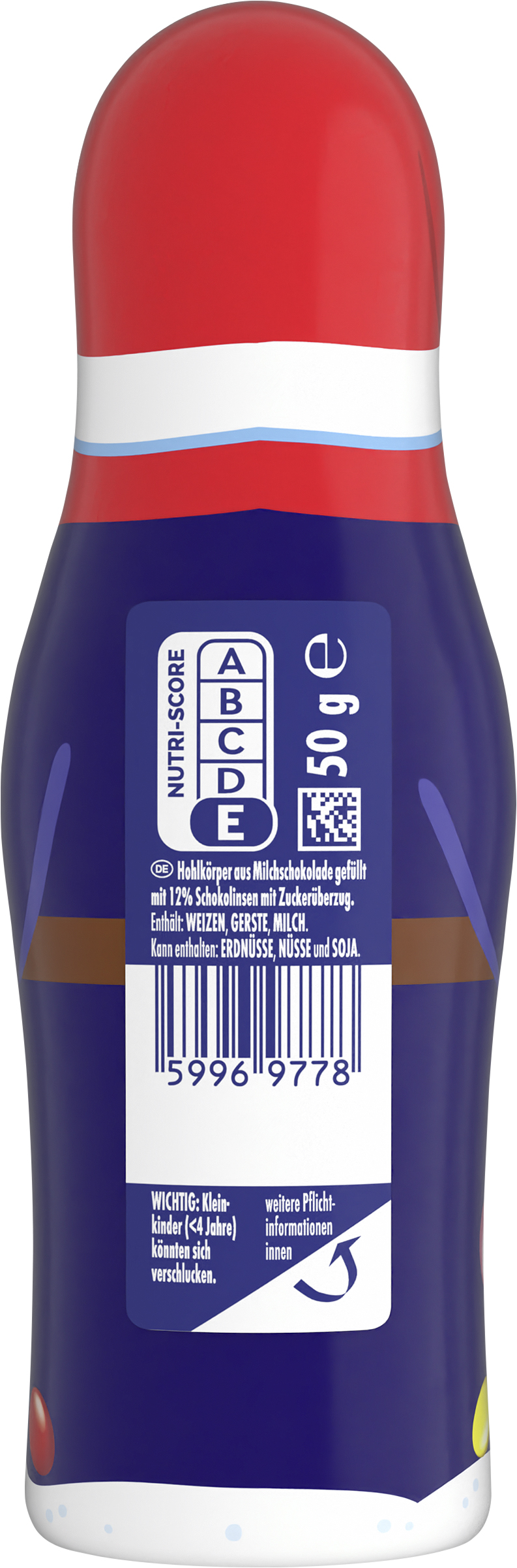 EAN 00000059969778 Material Number 12587048 Marke NESTLE Product Name NESTLE SMARTIES Weihnachtsmann 50g Weihnachten Net Content 50.000 Net Content UoM GRM Net Weight 50 Net Weight UoM GRM Artikel Höhe 126.000 Artikel Höhe UoM MMT Artikel Breite 42.000 Artikel Breite UoM MMT Artikel Länge 32.000 Artikel Länge UoM MMT Schlagwörter bunt, chocolate, christmas, dragees, geschenk, kleinigkeit, kollegen, nestle, schokofiguren, schokoladennikolaus, schoko-nikoläuse, smartis, snacks, süßigkeiten, süsses, weihnachten, weihnachtsgeschenke, weihnachtsmänner, weihnachtsschoki, wichteln, milchschokolade Bezeichnung Hohlkörper aus Milchschokolade gefüllt mit 12% Schokolinsen mit Zuckerüberzug. Beschreibung Der SMARTIES® Schoko-Weihnachtsmann aus zartschmelzender Vollmilchschokolade ist mit vielen bunten mini SMARTIES gefüllt und sorgt so für einen lustigen Rasselspaß bei Jung und Alt. Mit seiner Größe und seinem bunten Design ist er ein echter Hingucker und sorgt für einen richtigen Wow-Effekt beim Verschenken. • Rasselspaß für Jung und Alt • Mit zartschmelzender Vollmilchschokolade und mit SMARTIES® mini gefüllt • Ideal als Geschenk zum Nikolaustag oder als Mitbringsel Bei der Herstellung unserer Schokolade legen wir großen Wert auf Nachhaltigkeit. Daher beziehen wir unseren Kakao ausschließlich von Rainforest Alliance-zertifizierten Farmen. So können Sie nicht nur köstliche Schokolade genießen, sondern auch einen Beitrag zum Schutz unserer Umwelt leisten. Lassen Sie es Rasseln! Bringen sie lebendige Vielfalt in die Weihnachtszeit mit den verschiedenen Designs in SMARTIES® Farben. Die Santa-Figur gefüllt mit Schokolinsen eignet sich perfekt für den Nikolausstiefel oder als kleines Mitbringsel in der Adventszeit. Probieren Sie den Rasselspaß und machen Sie Ihren Liebsten und sich selbst eine Freude. Zutaten Zutaten: Zucker, MAGERMILCHPULVER, Kakaobutter*, Kakaomasse*, pflanzliche Fette (Palm, Shea), BUTTERREINFETT, Emulgator (Lecithine), Glukosesirup, WEIZENMEHL, MOLKENERZEUGNIS, Stärke, Farbstoff (Betenrot, Carotin, Kurkumin), Aroma, Spirulinakonzentrat, Überzugsmittel (Carnaubawachs, Bienenwachs weiß), Pflanzenkonzentrate (Färberdistel, Rettich), GERSTENMALZEXTRAKT. Kann enthalten: ERDNÜSSE, NÜSSE und SOJA. *Rainforest Alliance-zertifiziert.