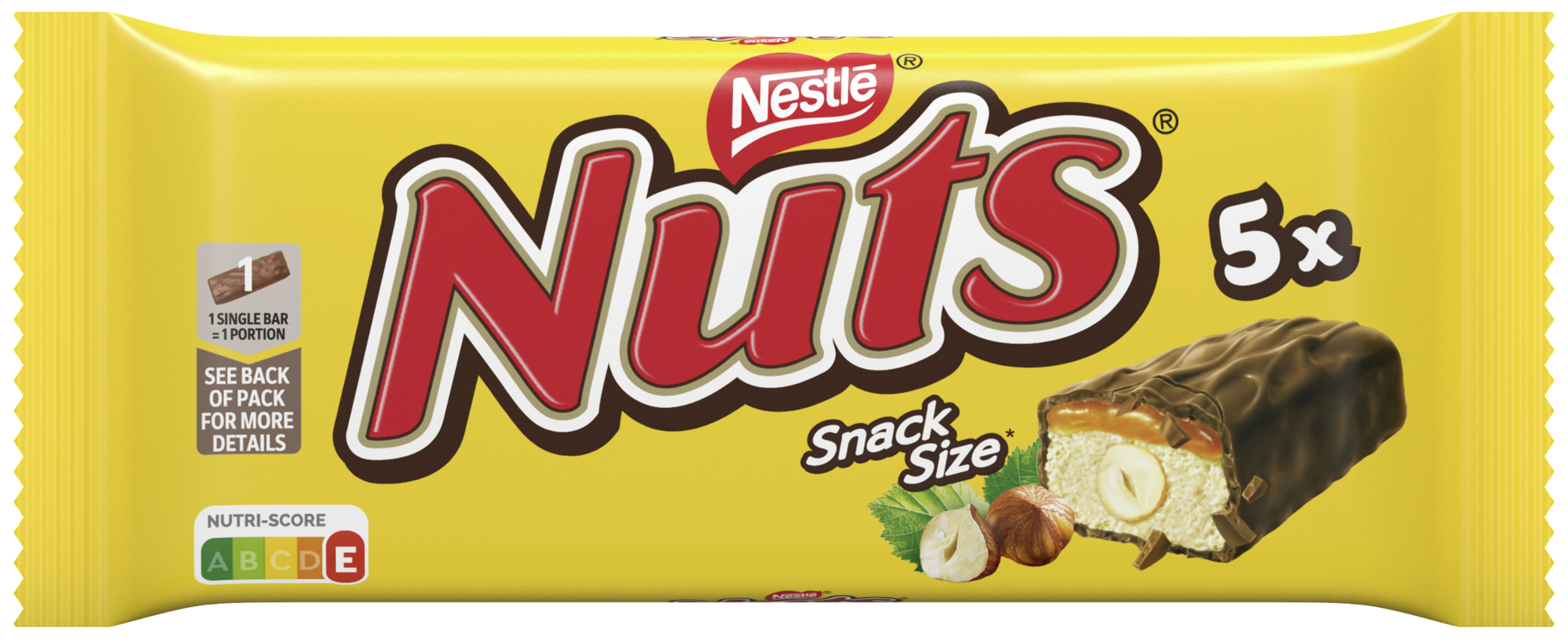 myTime Assortment Yes myTime Article Number 4502038910 myTime Product Title Nestlé Nuts EAN 08593893769687 Material Number 12630318 Marke NESTLE Product Name NESTLE NUTS 5er Multipack (5x30g) Net Content Statement 5x30g Net Content 150.000 Net Content UoM GRM Net Weight 150 Net Weight UoM GRM Artikel Höhe 80.000 Artikel Höhe UoM MMT Artikel Breite 150.000 Artikel Breite UoM MMT Artikel Länge 22.000 Artikel Länge UoM MMT Schlagwörter nut bar, riegel ,schokoriegrl ,schokolade mit haselnuss ,caramel ,schokoriegel ,mixed ,schoko-riegel ,karamell ,schokolade ,haselnuss ,kinderriegel ,geschenk ,schonolade ,süsigkeiten ,süßigkeit-en ,suessigkeiten ,shocolade ,süssigkeiten ,vollmilch ,multipack Bezeichnung Kakaohaltige Fettglasur (30%) mit einer Füllung mit Karamell (20,4%) und ganzen Haselnüssen (11,2%). Beschreibung NESTLÉ NUTS Multipack Haselnuss Riegel Unter einer feinen Hülle mit Kakao trifft bei NESTLÉ NUTS eine cremige Karamellfüllung auf sorgfältig geröstete, ganze Haselnüsse – das sorgt für den typischen, intensiven Nussgeschmack. Das Besondere: Für NUTS werden nur ausgewählte Haselnüsse verwendet – das macht jeden Riegel einzigartig knackig. • Riegel mit cremiger Karamellfüllung und knackigen, ganzen Haselnüssen • Im Multipack Format praktisch verpackt • Der unverwechselbar nussige Riegel perfekt zum Teilen mit Freunden, Familie oder Kollegen • mit Rainforest-Alliance-zertifiziertem Kakao hergestellt Der unvergleichliche Mix von NESTLÉ NUTS wird erst durch die zarte Karamellfüllung, knackige Nüsse und den feinen Überzug mit Kakao perfekt – ein Genuss für alle Nussliebhaber! Zutaten Zutaten: Zucker, Glukosesirup, pflanzliche Fette (Palm, Shea), geröstete ganze HASELNÜSSE (11,2%), Wasser, gezuckerte KONDENSMAGERMILCH (MAGERMILCH, Zucker), VOLLMILCHPULVER, Glukose-Fruktose-Sirup, SÜSSMOLKENPULVER, Kakaomasse* (2,6%), MOLKENPULVERERZEUGNIS, getrocknetes HÜHNEREIEIWEISS, Emulgator (Lecithine).