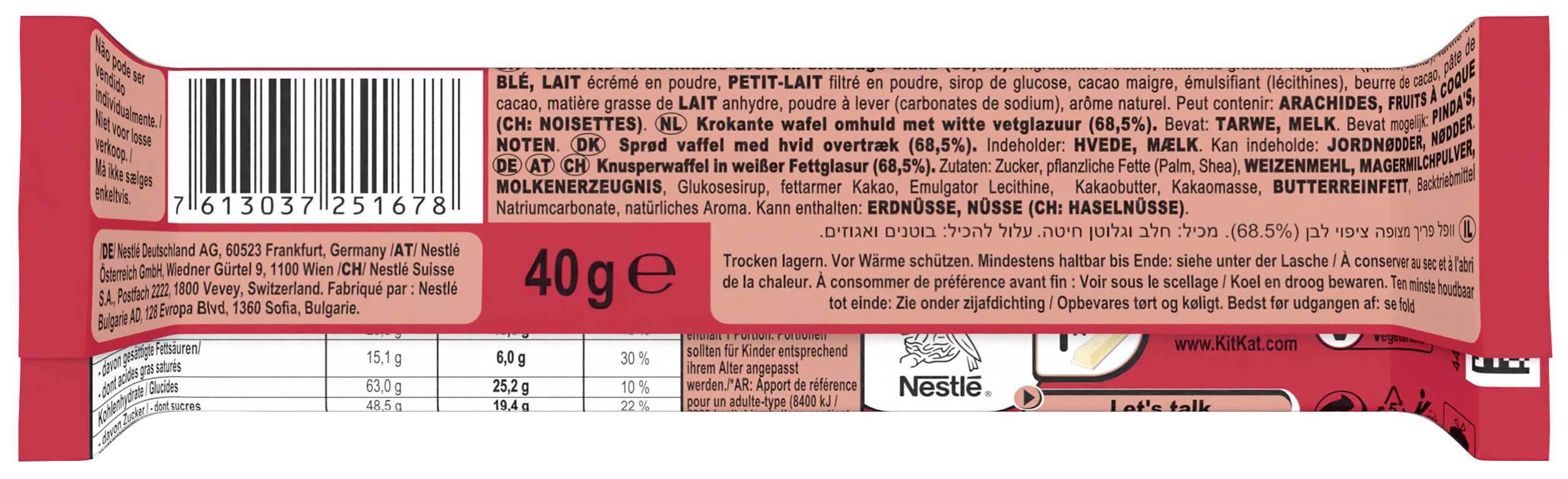 | SKU Description (SAP) | KITKAT CHUNKY White 24x40g N1DE |